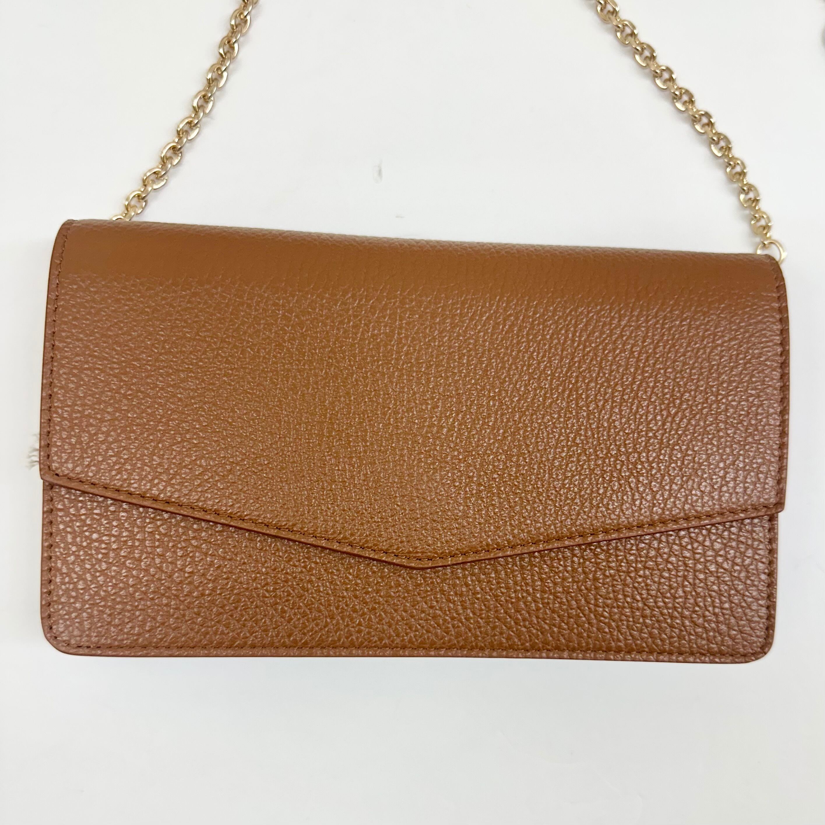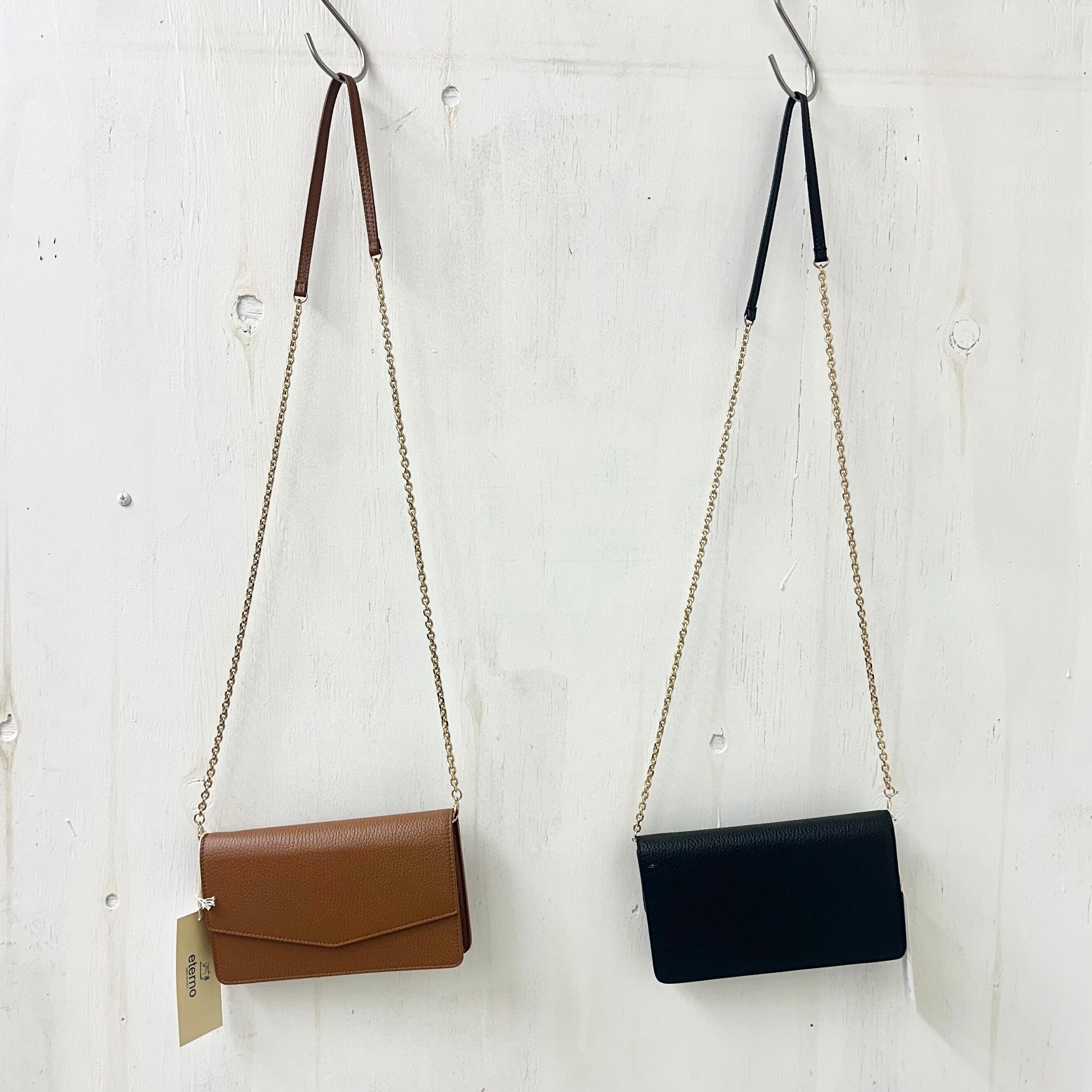 【eterno】シボ革 2WAY ショルダー ウォレット&モバイル BAG「ゴールド チェーン」/ CUOIO(キャメルブラウン) made in ITALY
