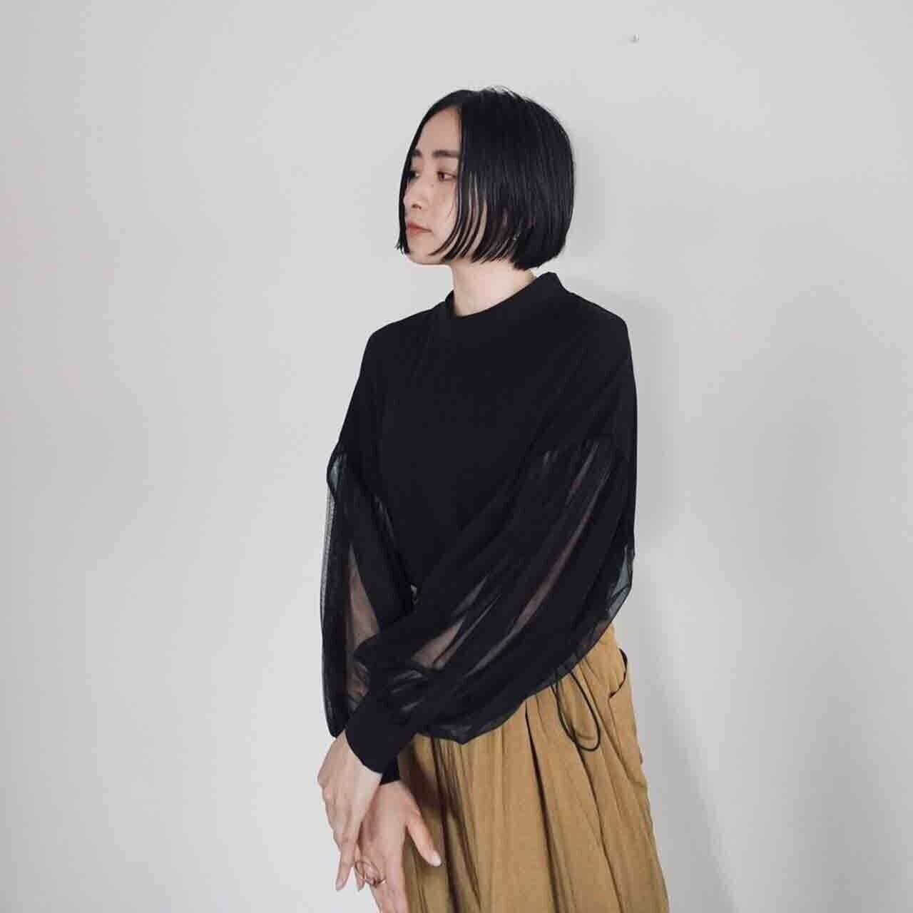 【RILATO/ リラート】ミドル ネック チュール ボリューム袖 プルオーバー