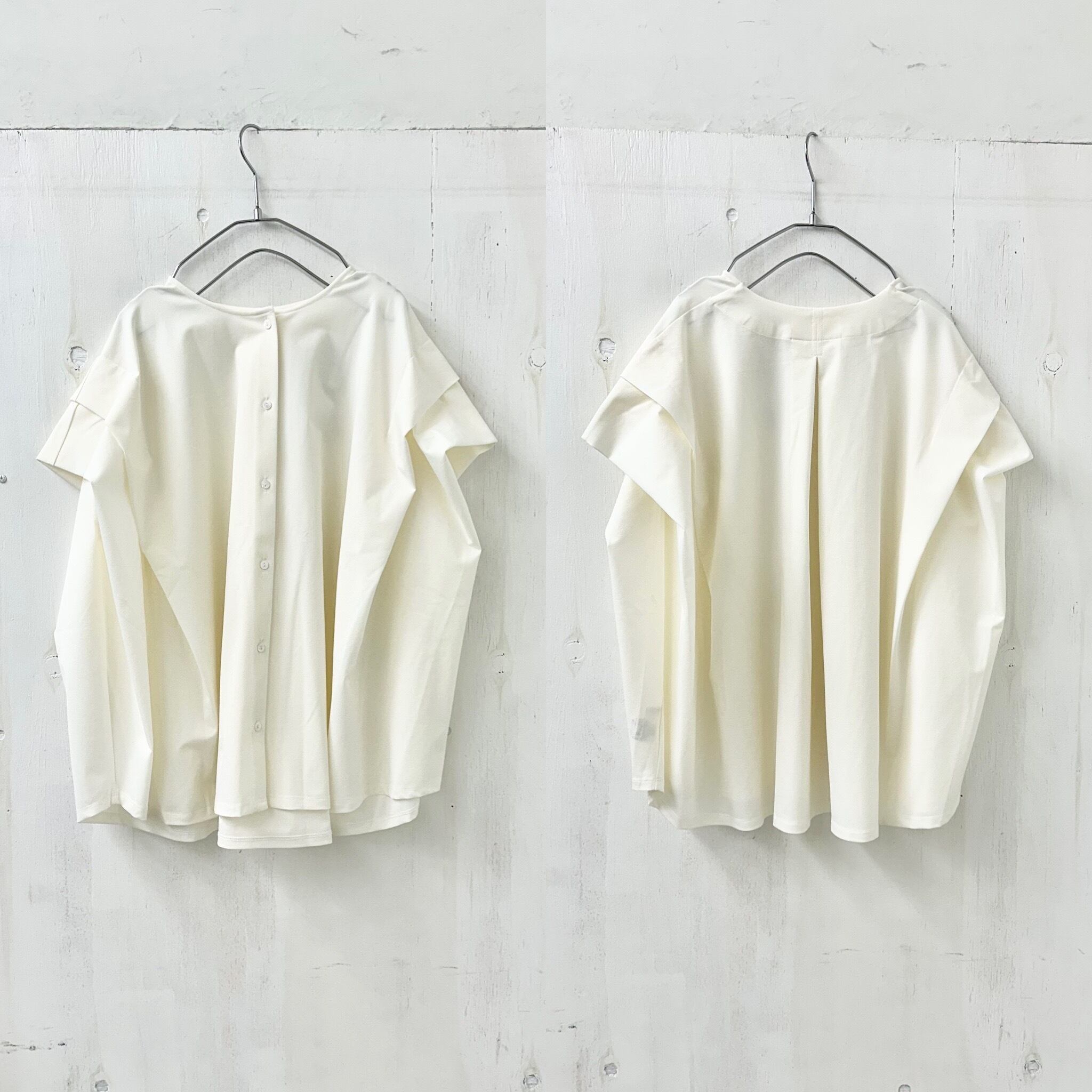 360度どの方向にも抜群のストレッチ性を誇るオリジナル素材に、ツボクサエキスに含まれる美容有効成分【CICA】を配合した開発素材です。素材に加えショルダータックのデザインがコレ一枚でキマる上品で女子可愛いブラウスです