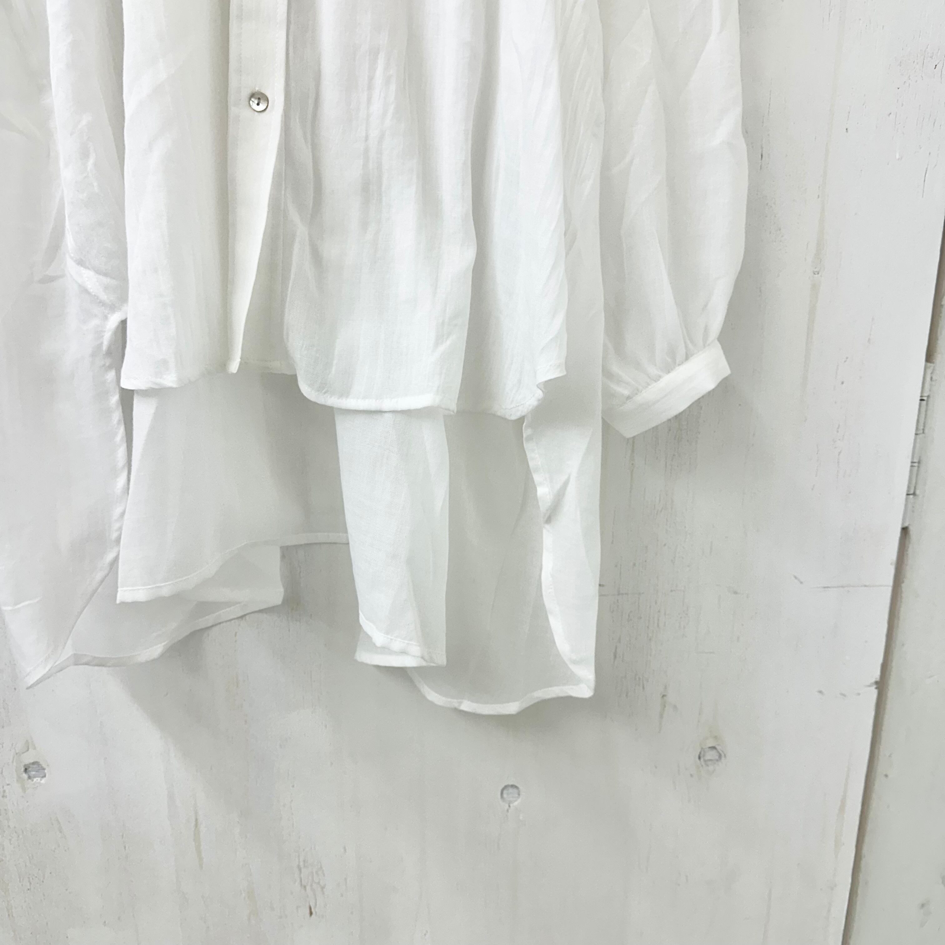 使いやすい白ブラウスは必須アイテムですので押さえて間違いナシの一着。