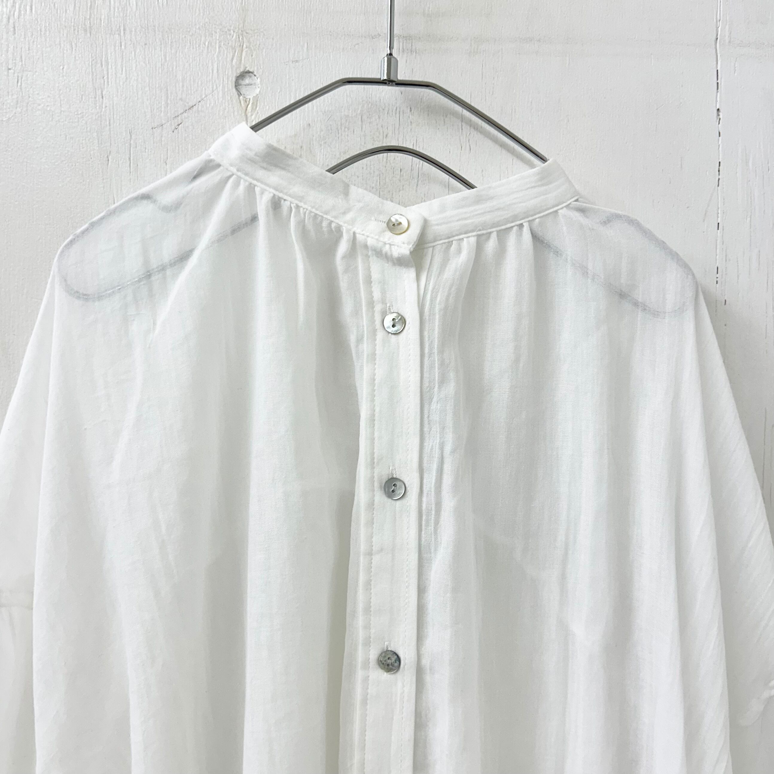 TCガーゼの透明感、エアリーで軽い雰囲気が可愛いギャザーブラウス。