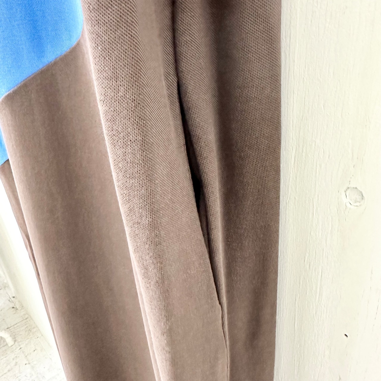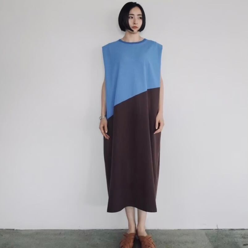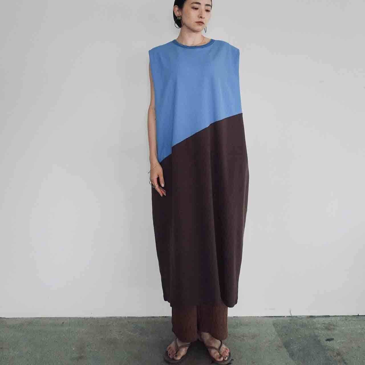 こちらはさっぱりと着心地の良い「鹿の子」素材のバイアス配色切替されたワンピース。