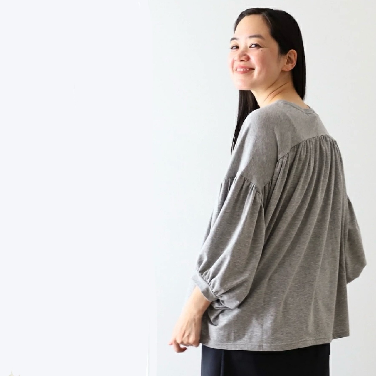 【harmonie / アルモニ】ギャザー バルーン スリーブ スーピマ ベア天竺 プルオーバー