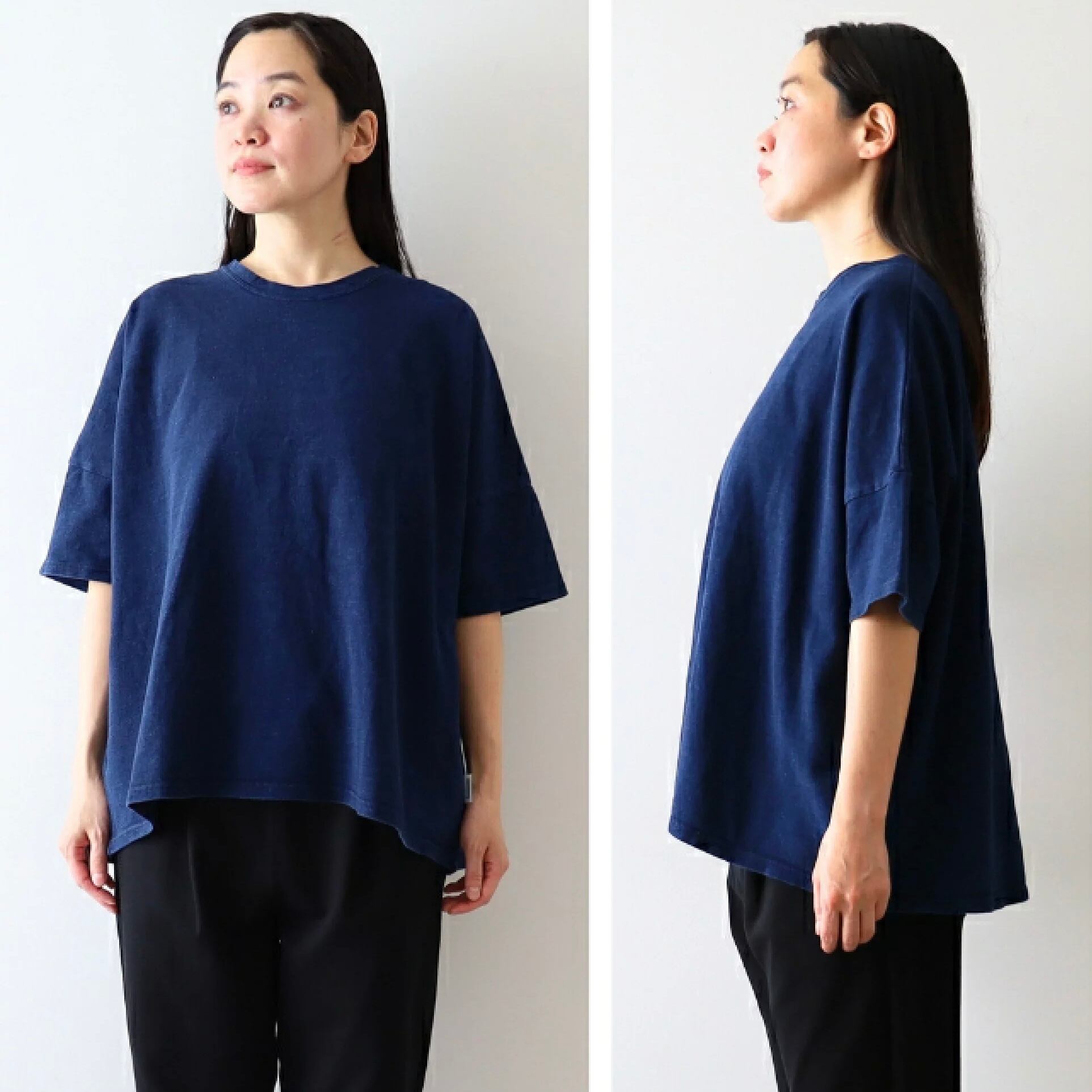 【harmonie / アルモニ】インディゴ 鹿の子 リラックス BIG TEE
