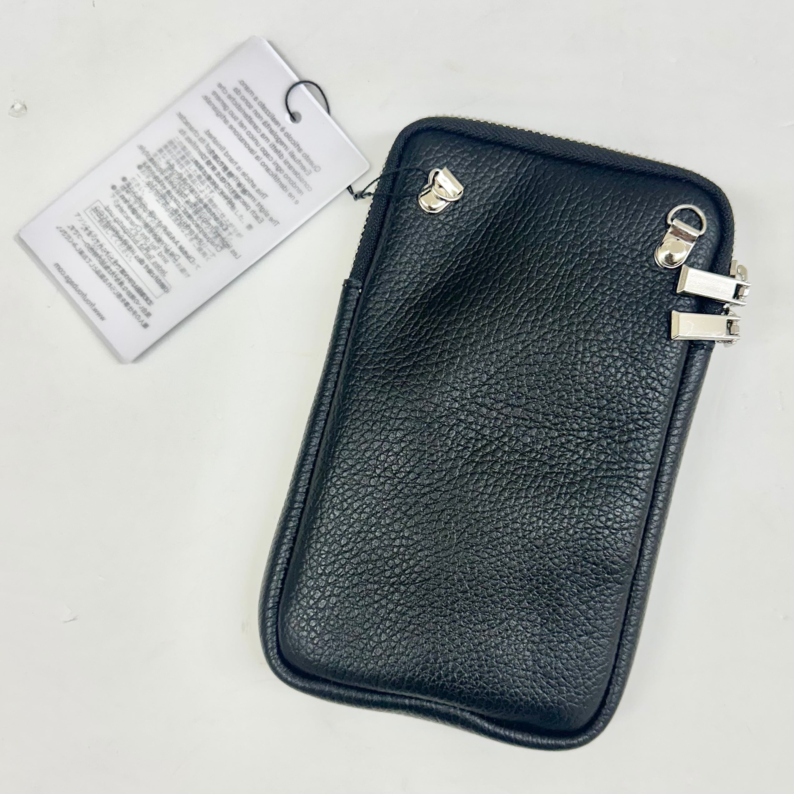 ドラーロレザーの牛革で作られた 柔らかい質感の、携帯ケース、NERO(ブラック)。