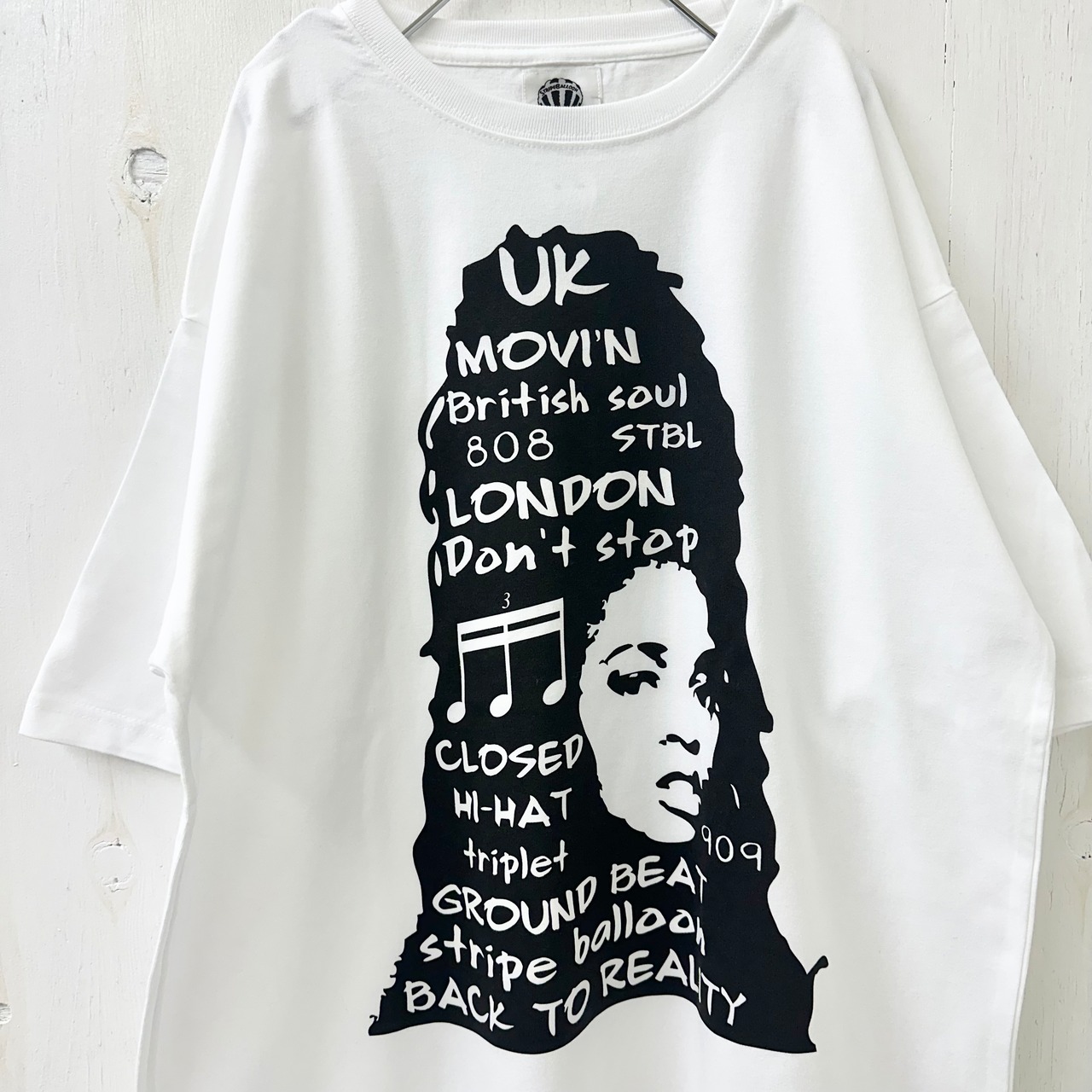 【STRIPE BALLOON】5.6oz BIG TEE 『GROUND BEAT』ホワイト X ブラック染込み