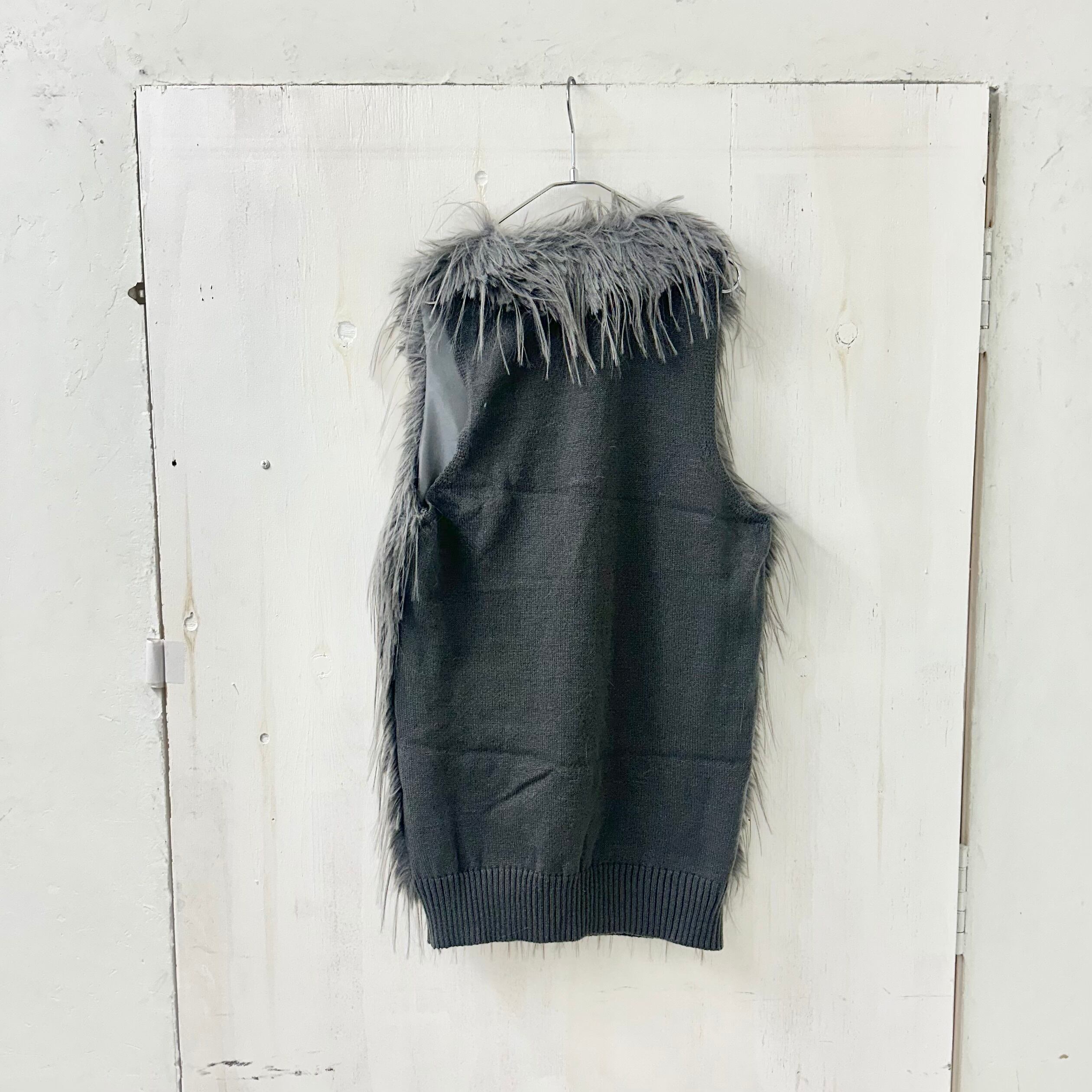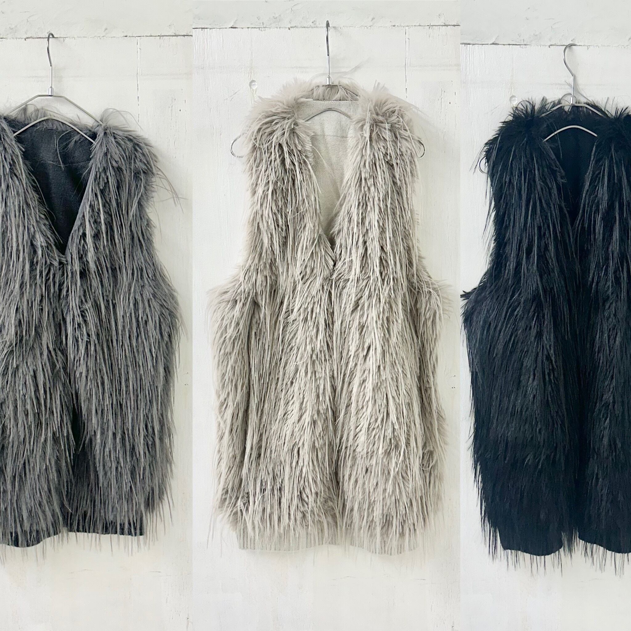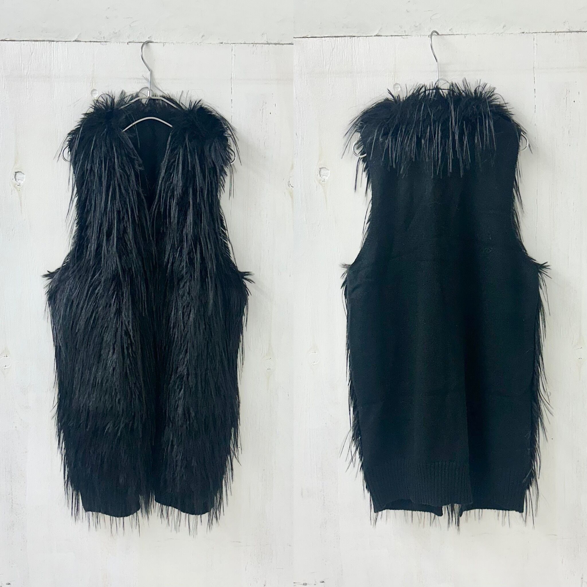 Aヤーン x フェイク シャギー ファー ロング ベスト / 464-24201