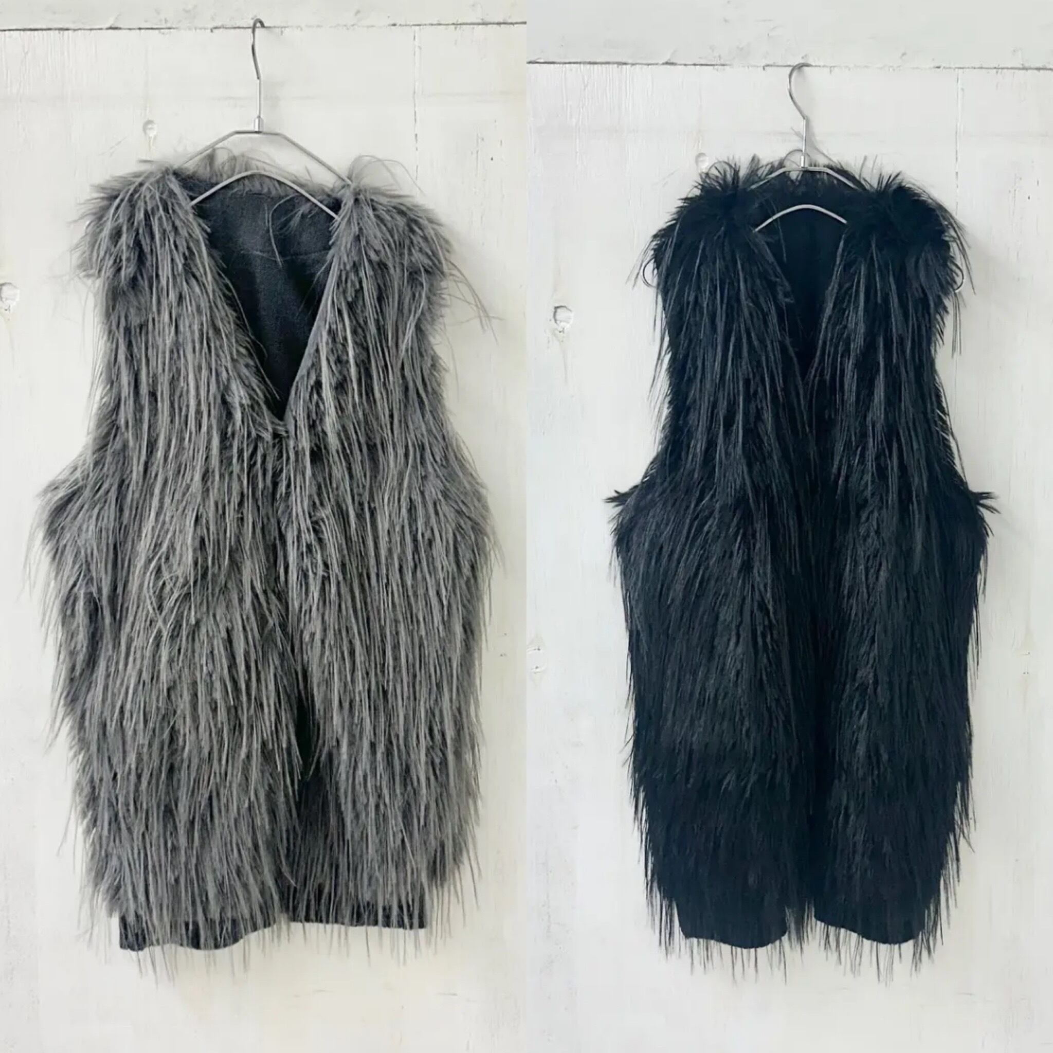 Aヤーン x フェイク シャギー ファー ロング ベスト