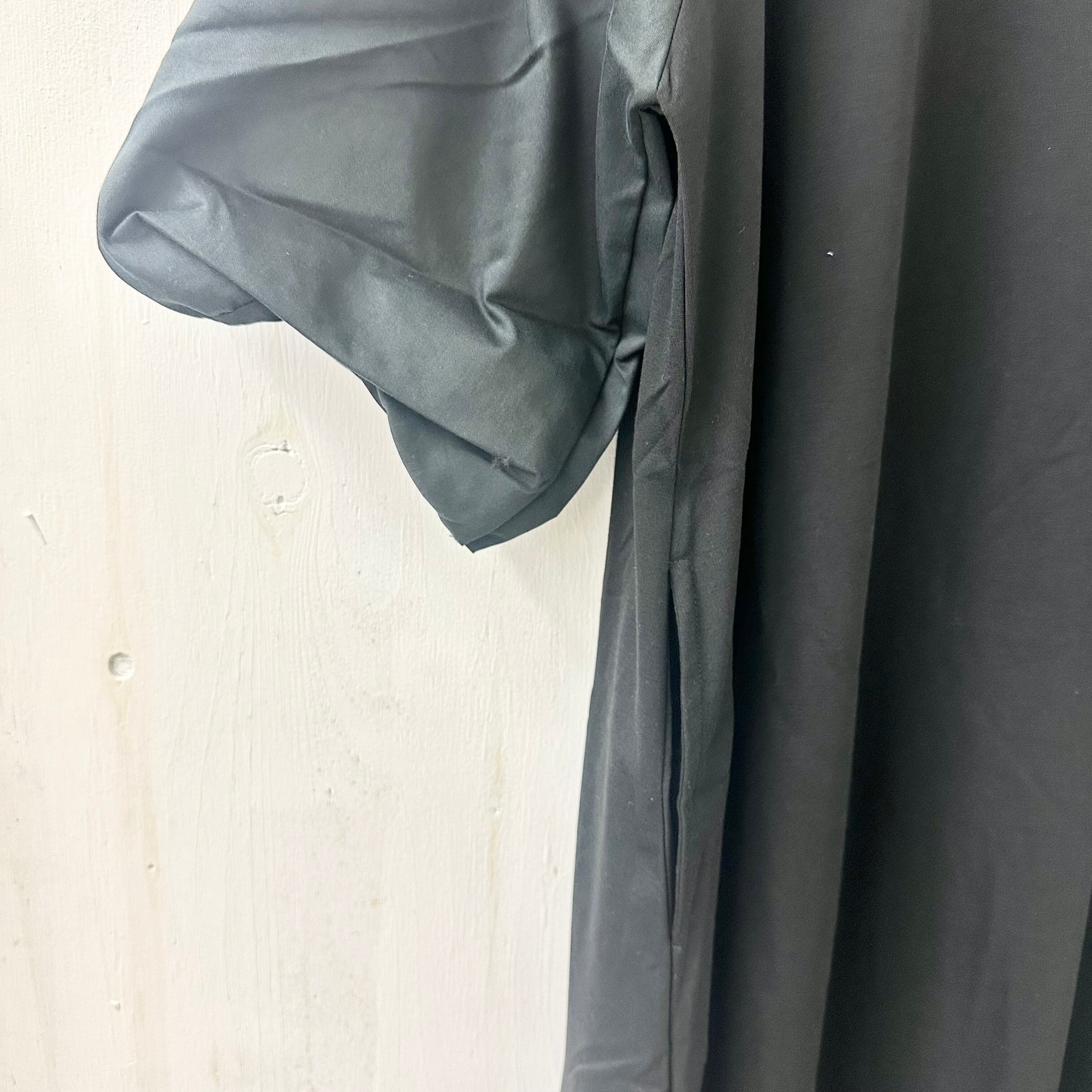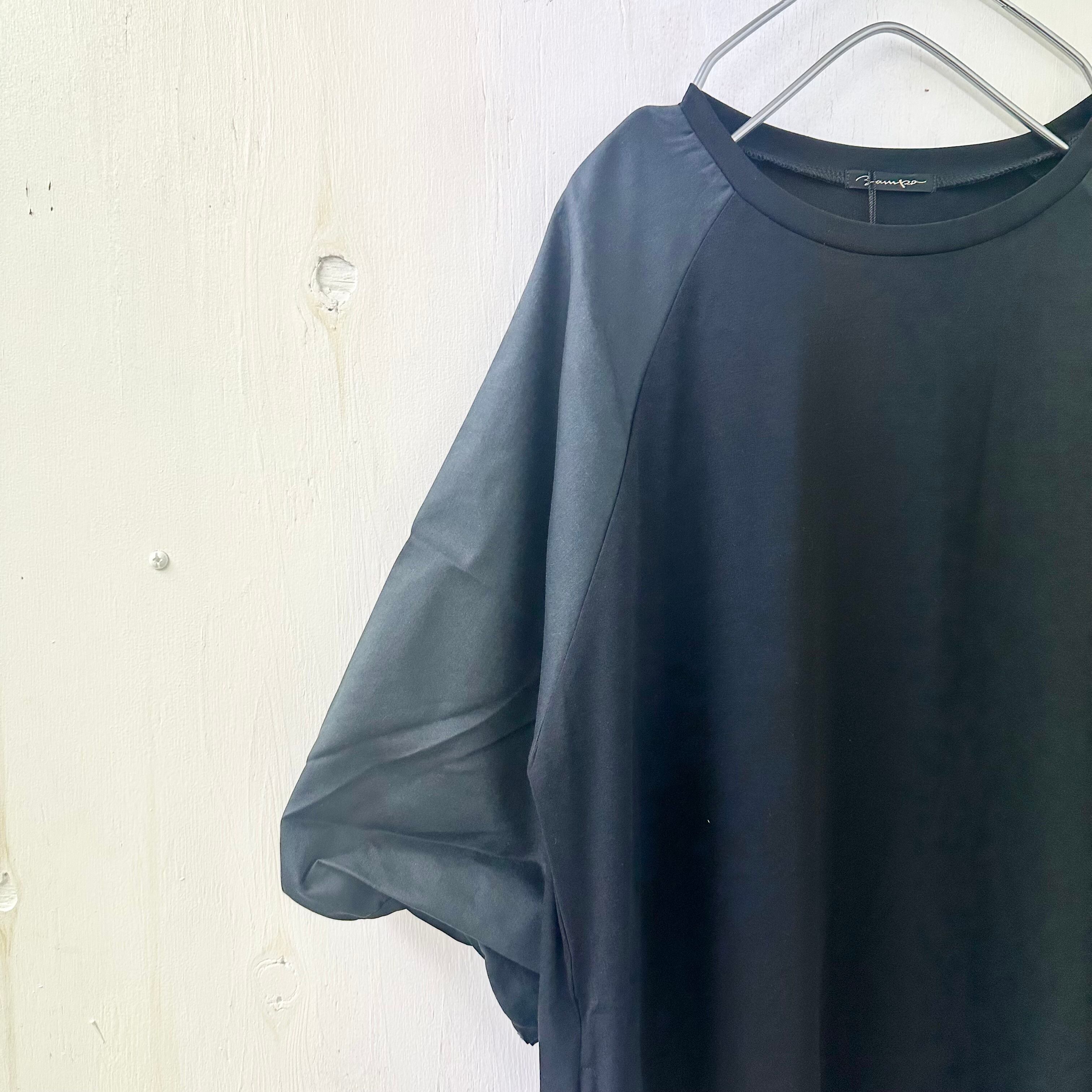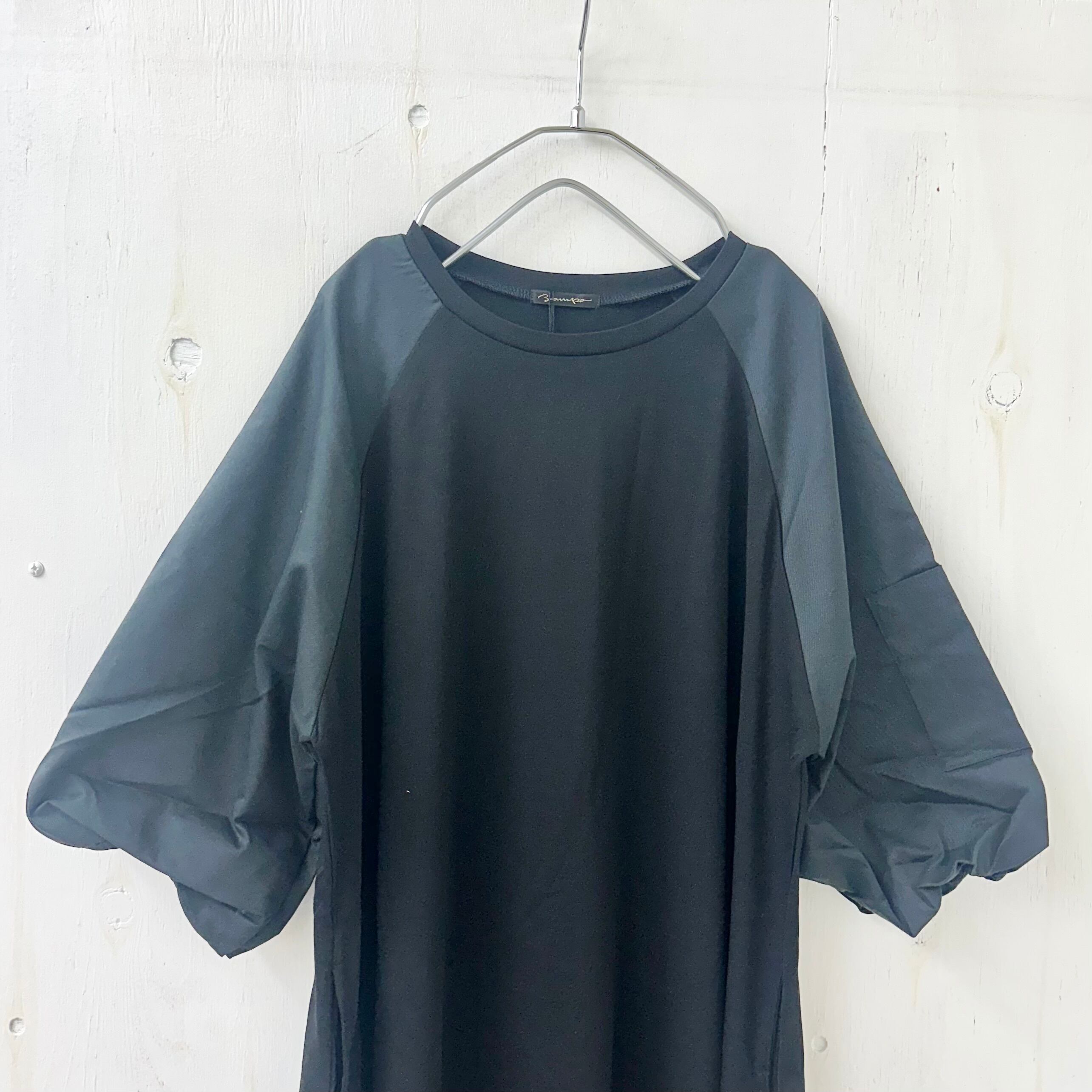 ストレッチ スムース 素材切替 ボリューム袖 ラグラン スリーブ ワンピース