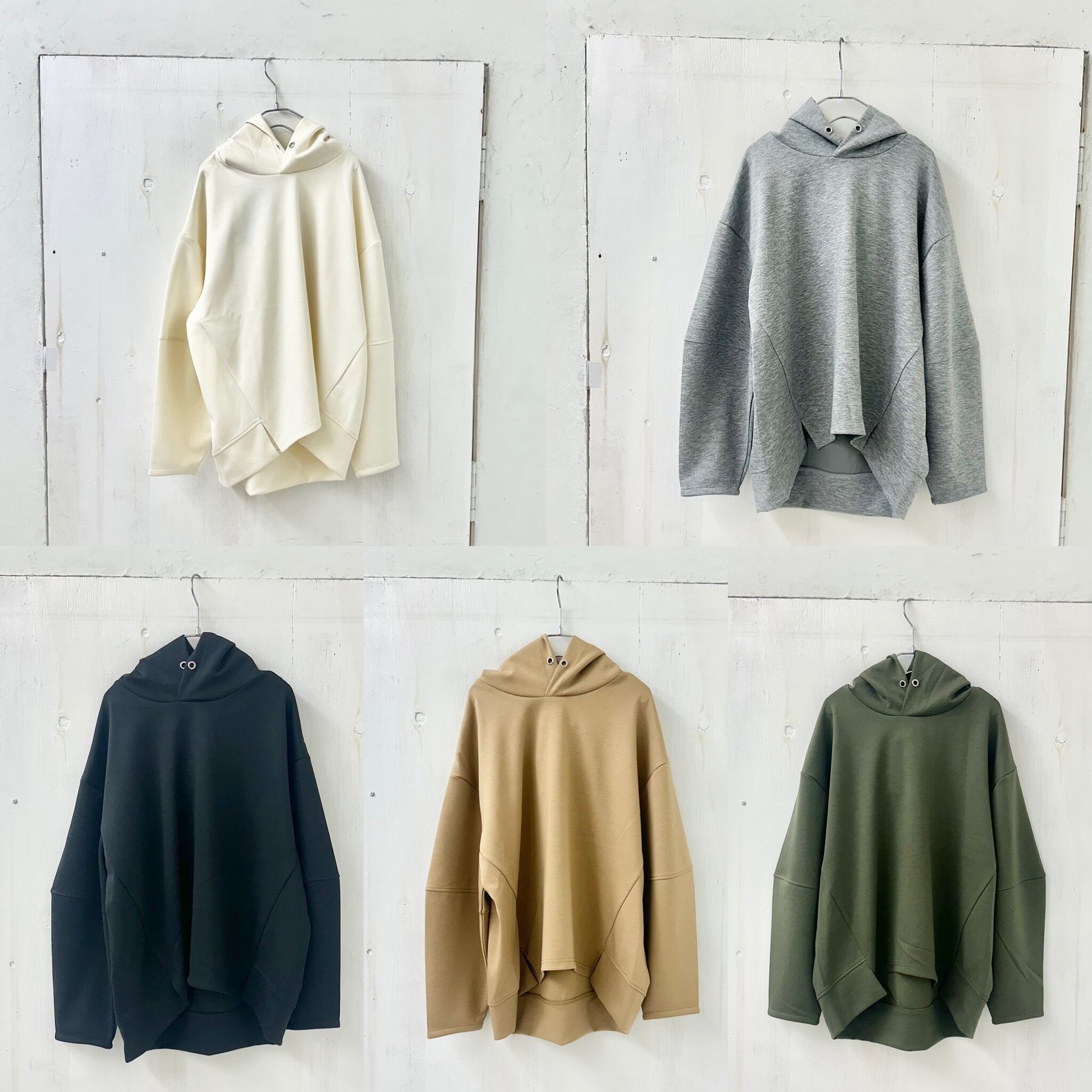 ゆったり目のプルオーバー パーカーにタイトなIラインのロング スカートが可愛い。