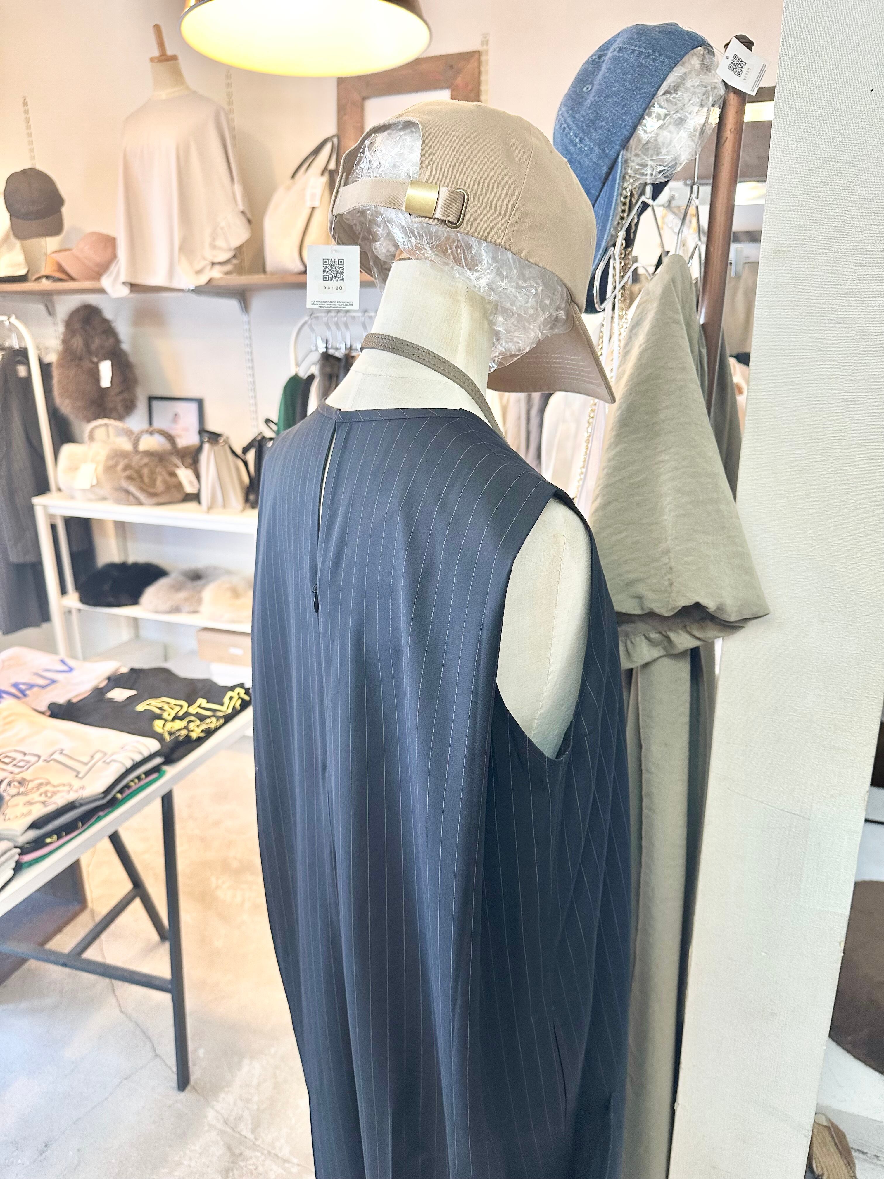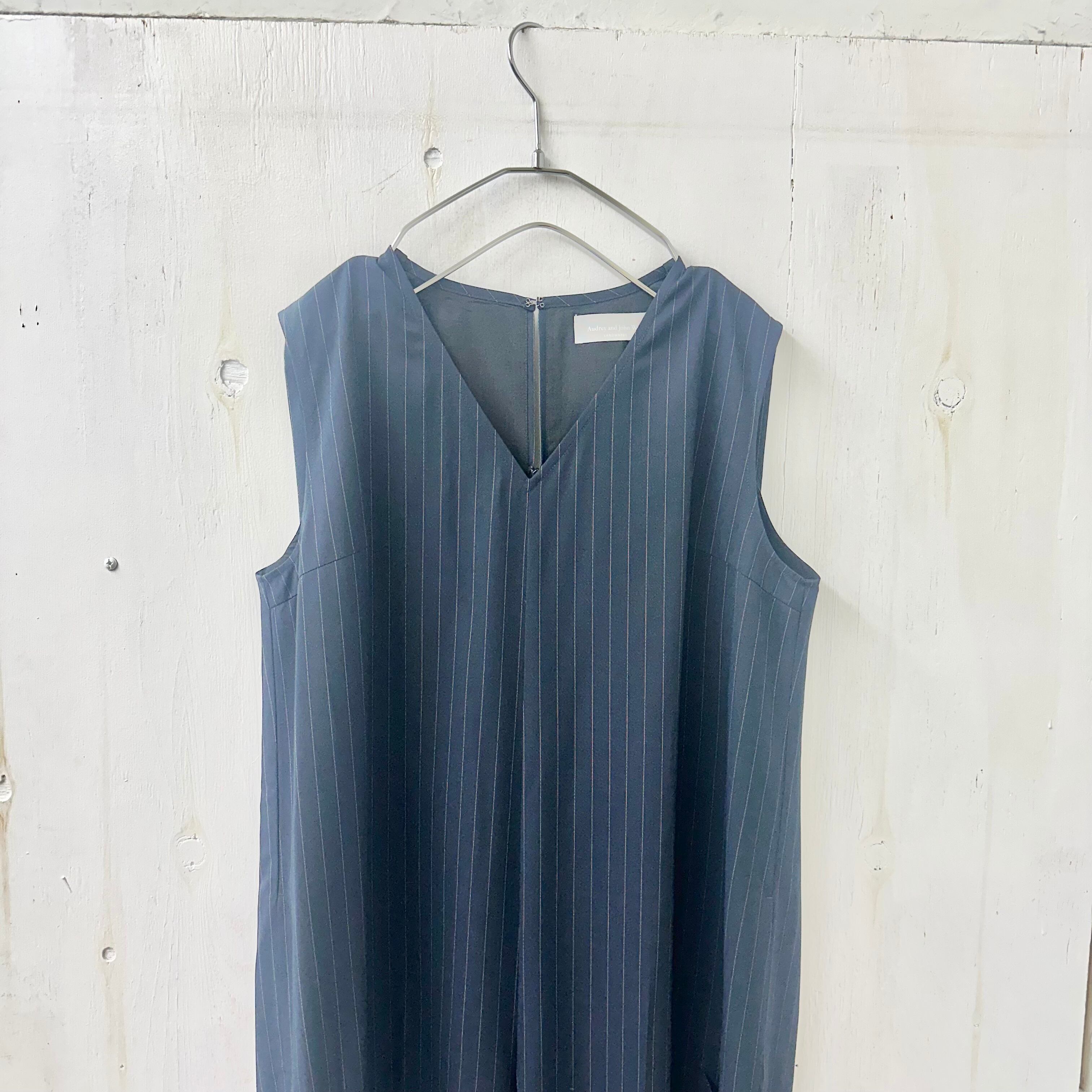 【Audrey and John Wad】T/R ストライプ サイド ポケット付 サロペット