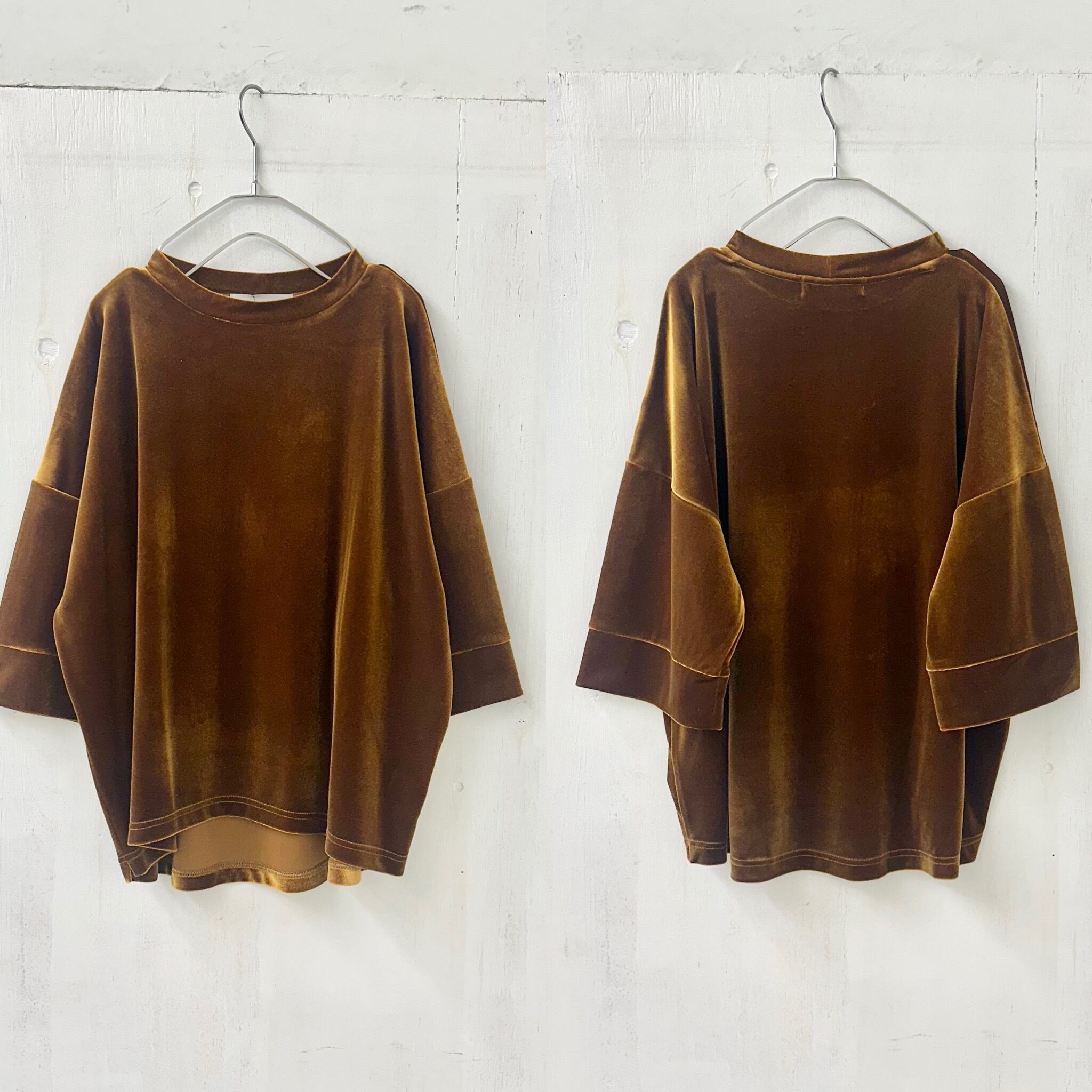 【Audrey and John Wad】ポリエステル ベロア ワイド シルエット 5分袖 カットソー