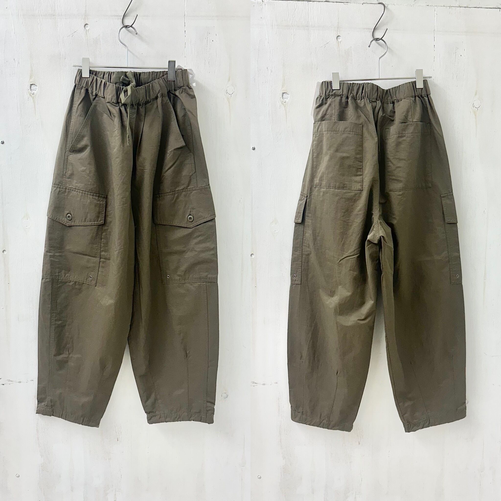 ほんのりシャリ感のあるコットンナイロン素材の緩いシルエットのカーゴパンツ。