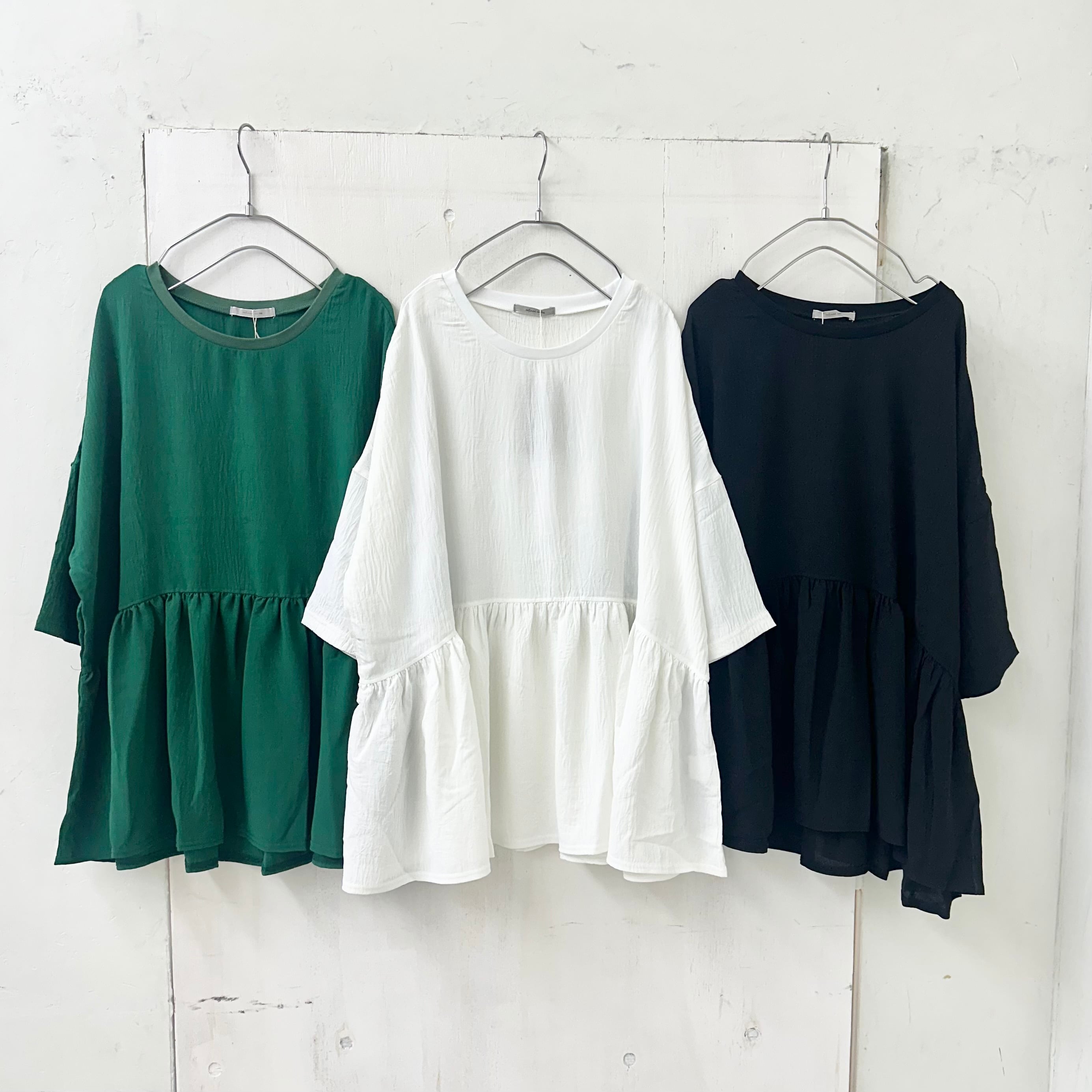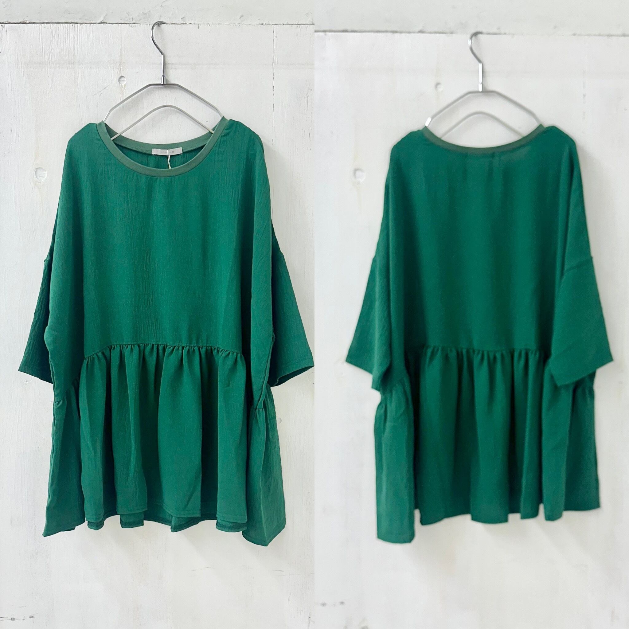 緩い袖感に裾のギャザー切替が可愛い。