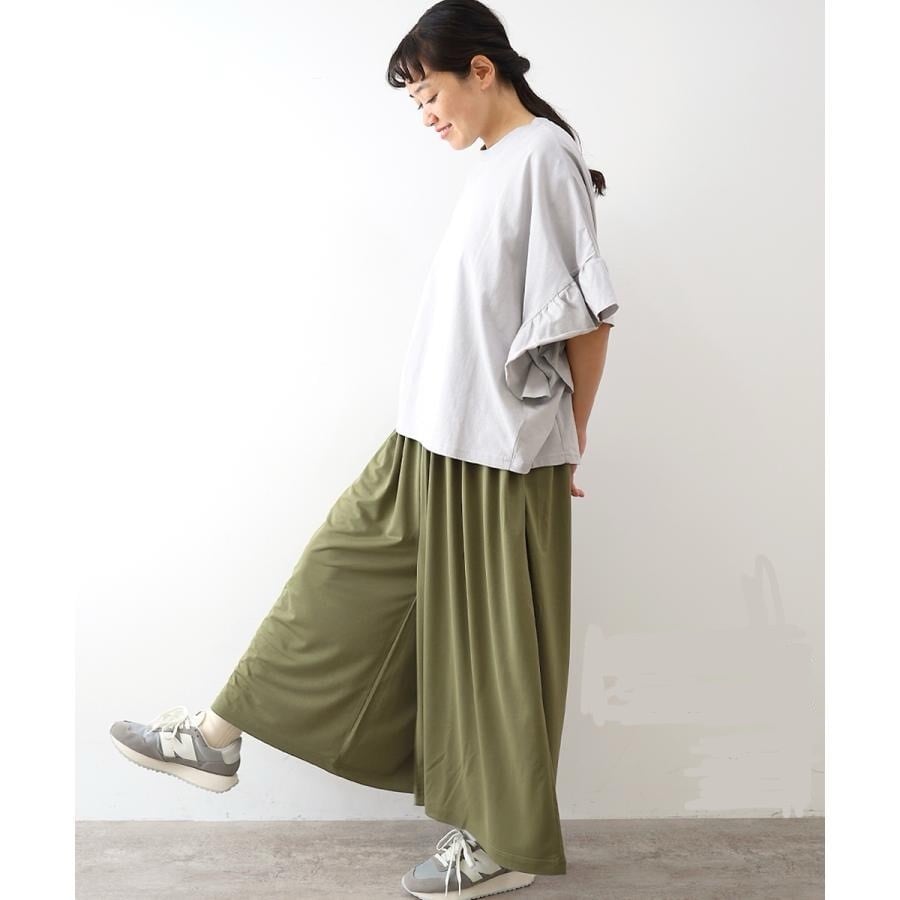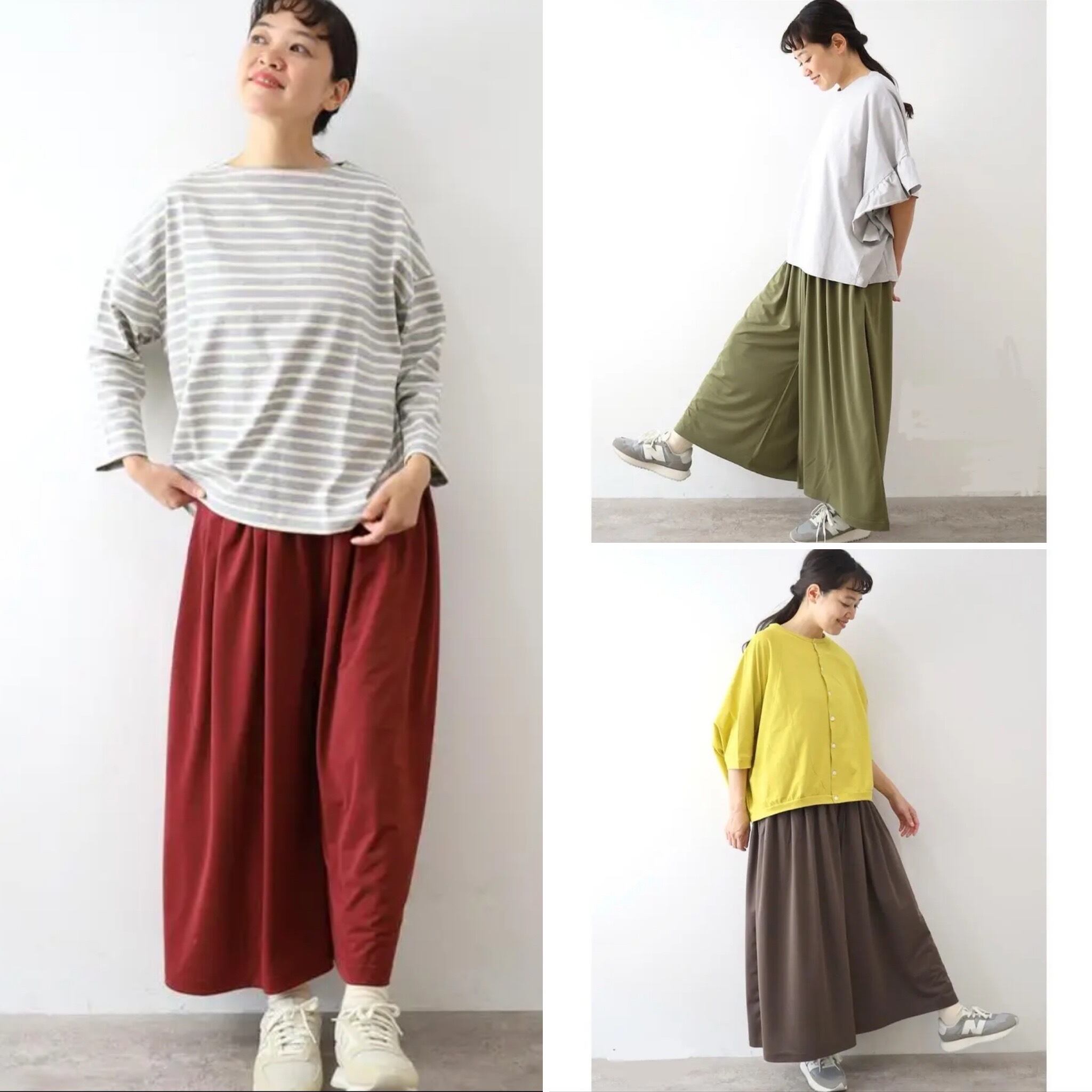 人気のギャザーワイド パンツシリーズが新素材で登場。