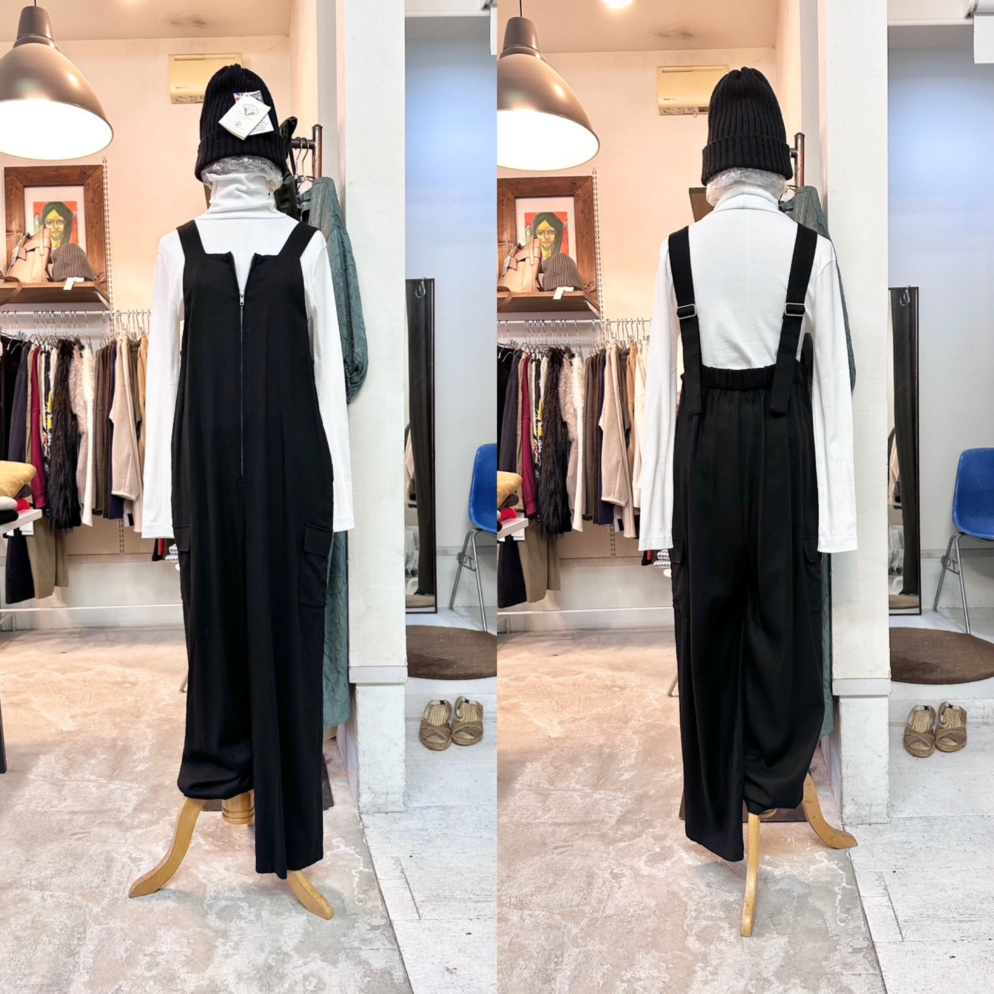 【micalle micalle】レーヨン リネン ツイル フロント ジップ サロペット パンツ