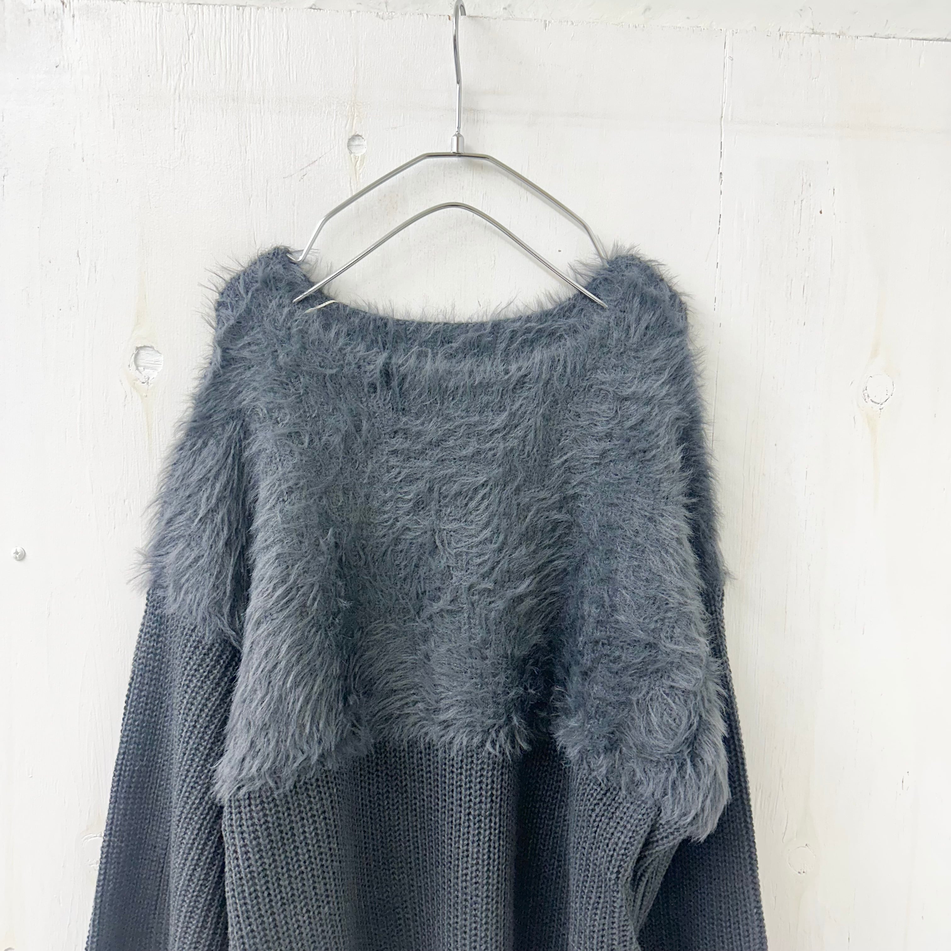 6Gの片畔とファーの切替がもこもこ可愛いプルオーバーニット。