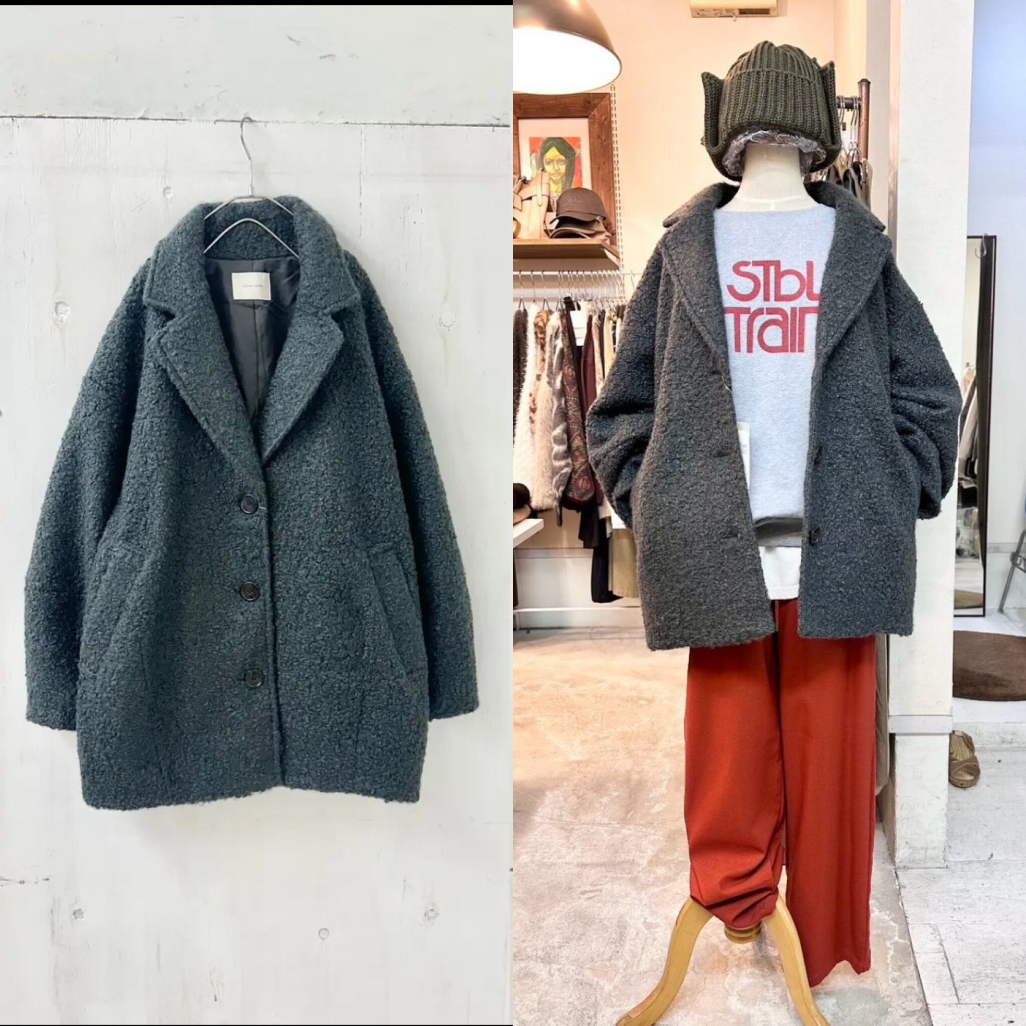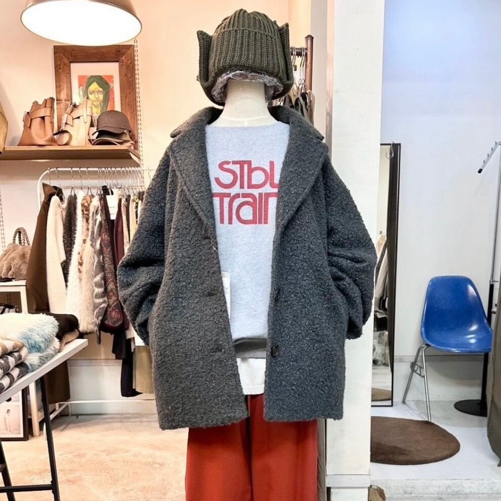 フェイク リング ウールの質感がもこもこ可愛いテーラード コート