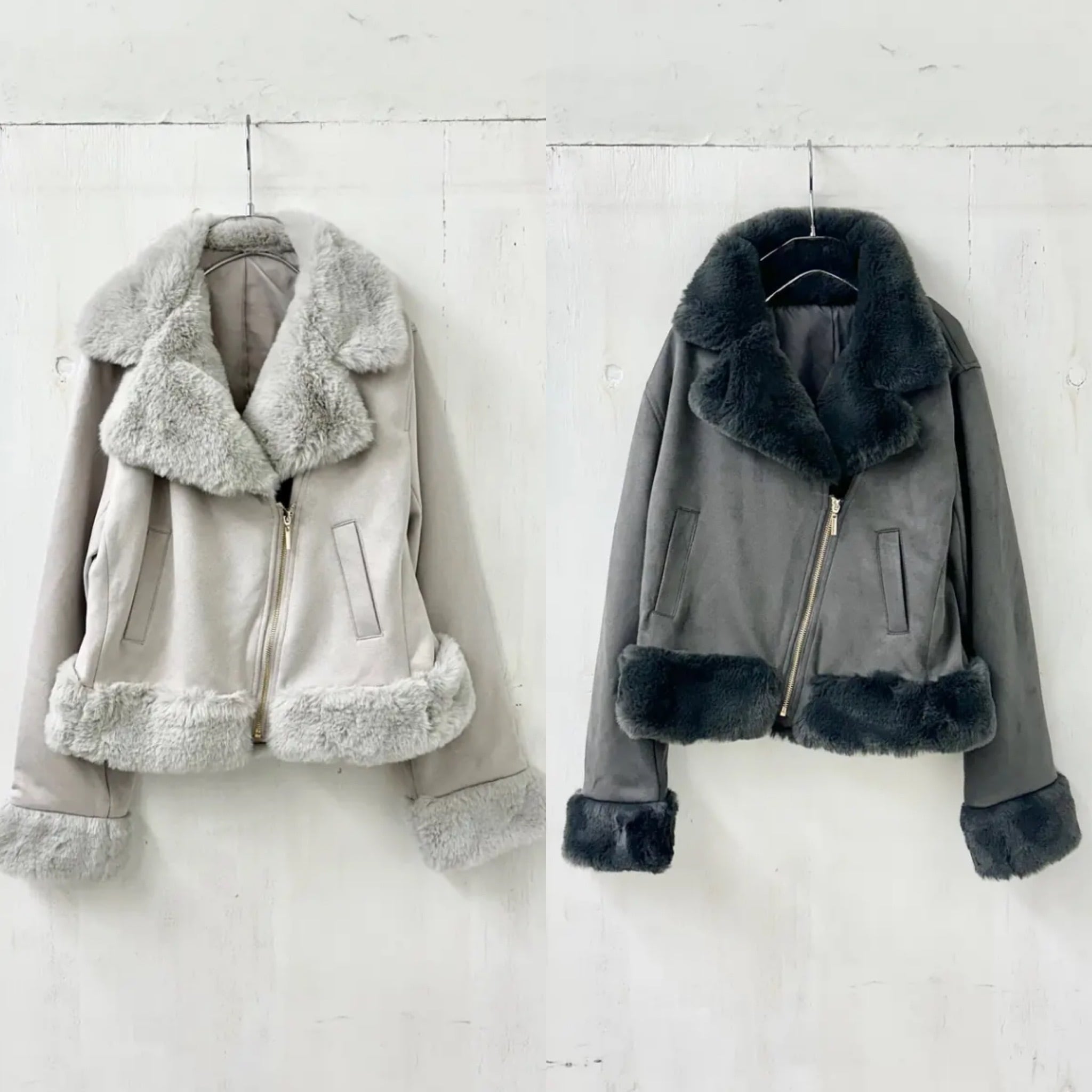 エコ ファーのボリューム感が可愛いショート ライダース。