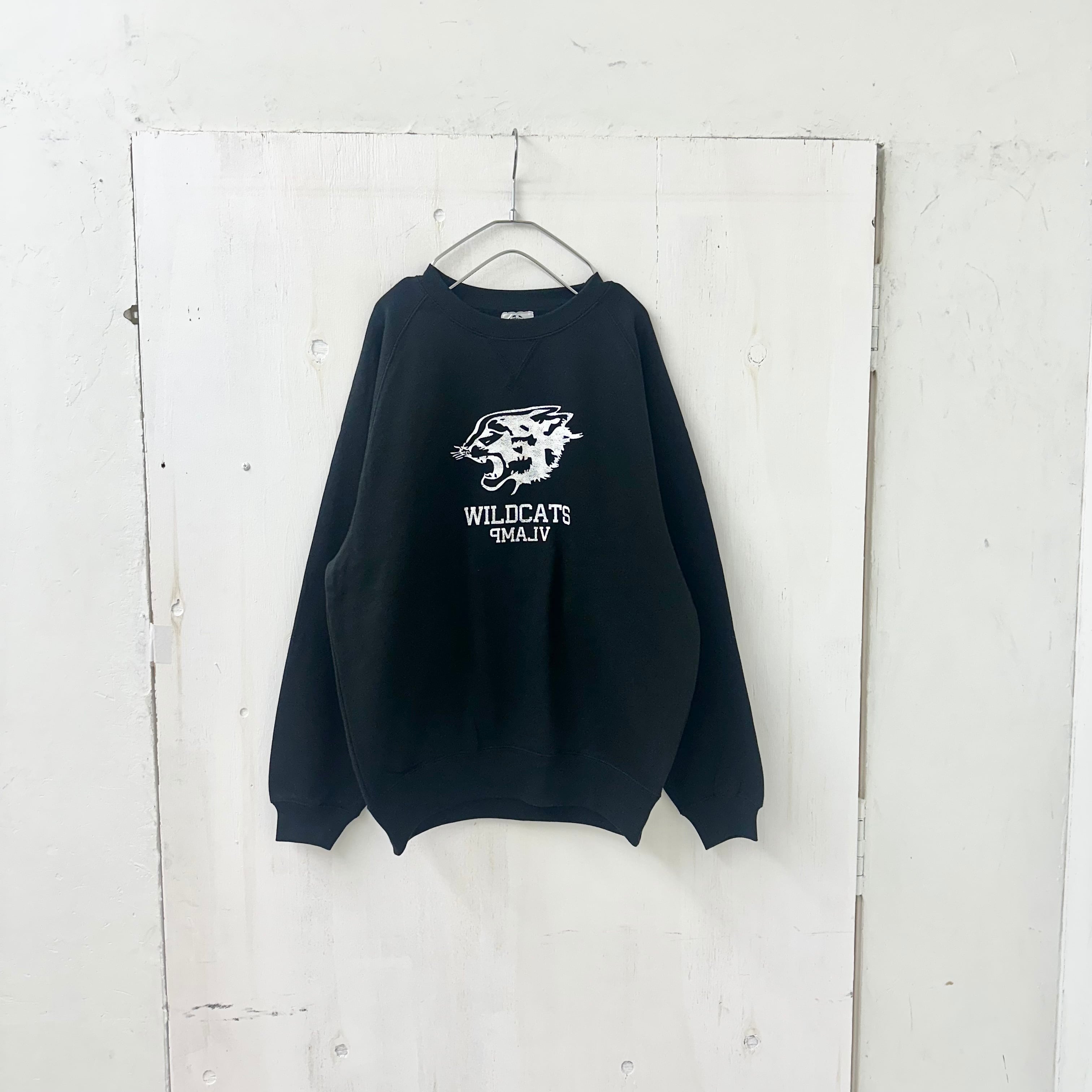 【STRIPE BALLOON】裏パイル 10oz メンズ ラグラントレーナー「WILD CATS」ブラックxホワイト