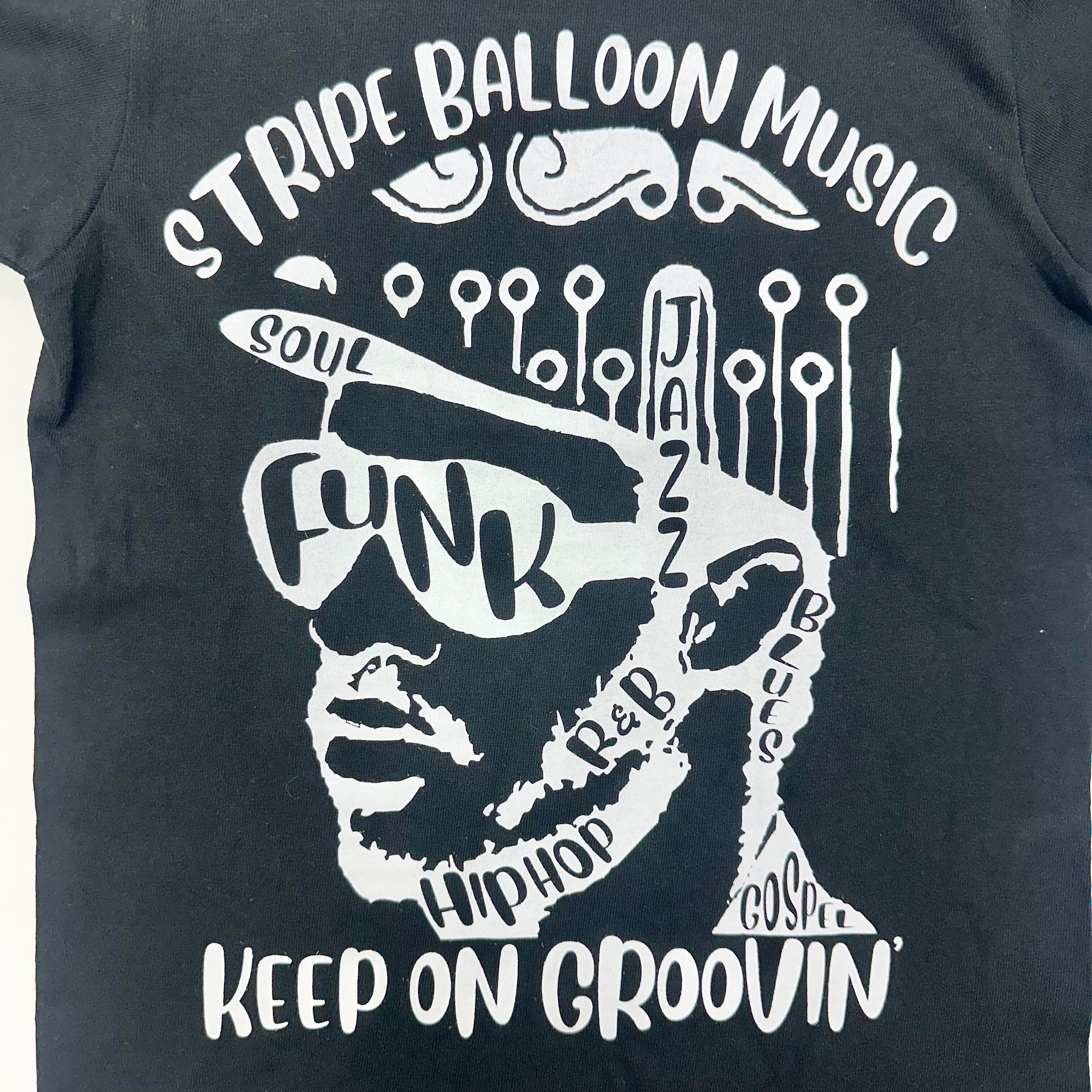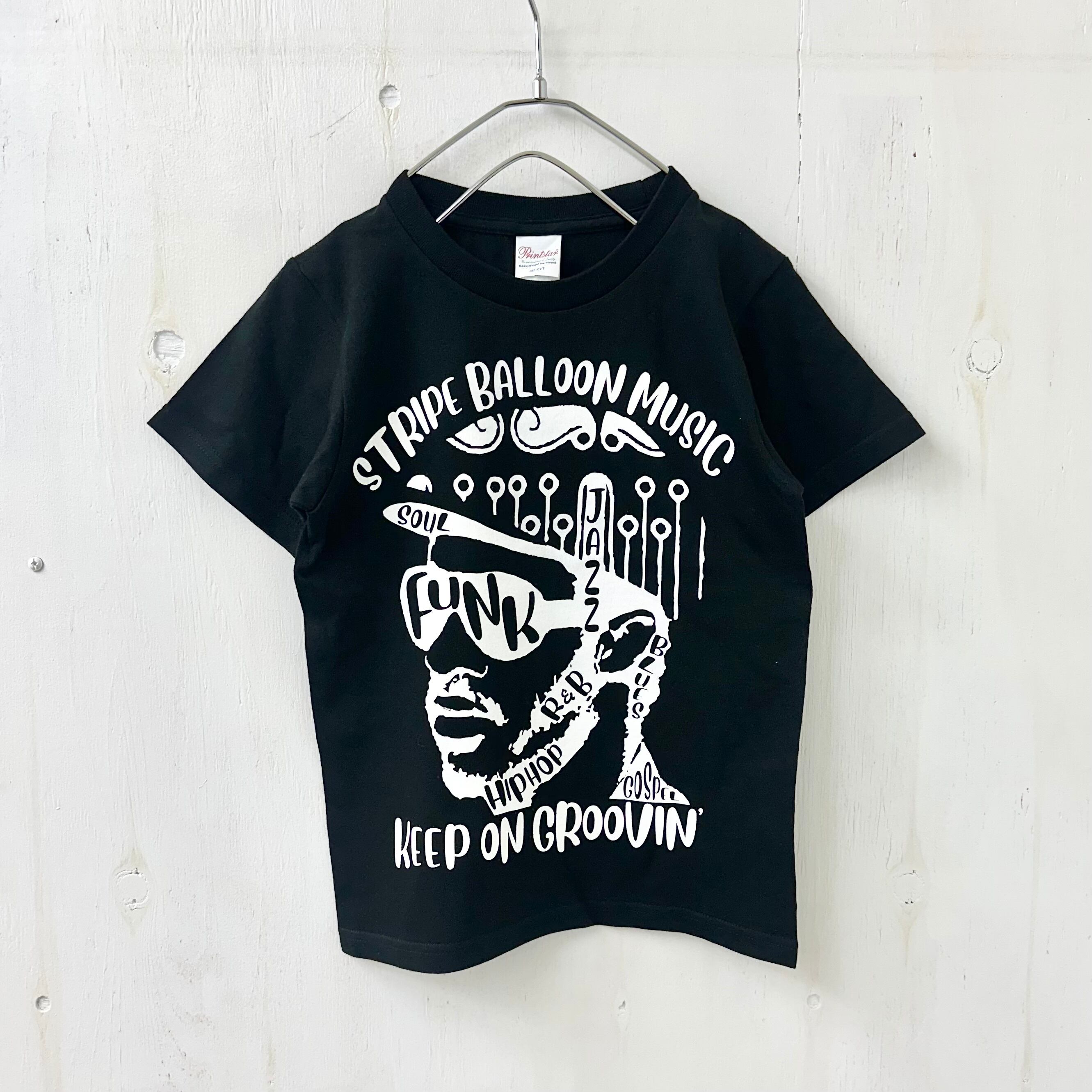 【STRIPE BALLOON】5.6oz 半袖 KIDS TEE 『KEEP ON GROOVIN』ブラックXホワイト