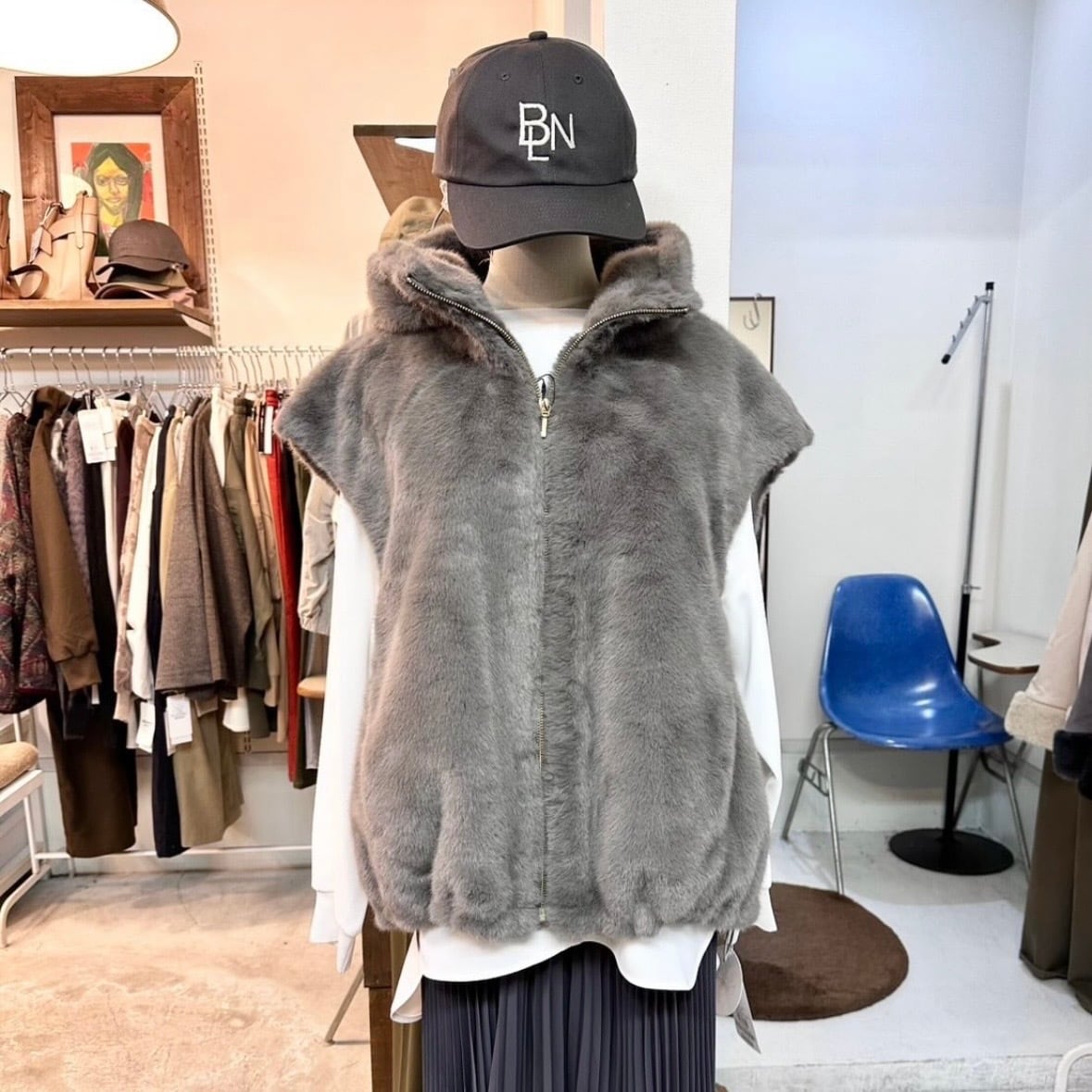 ミンク ライクなフェイク ファーが質感の良いベスト。