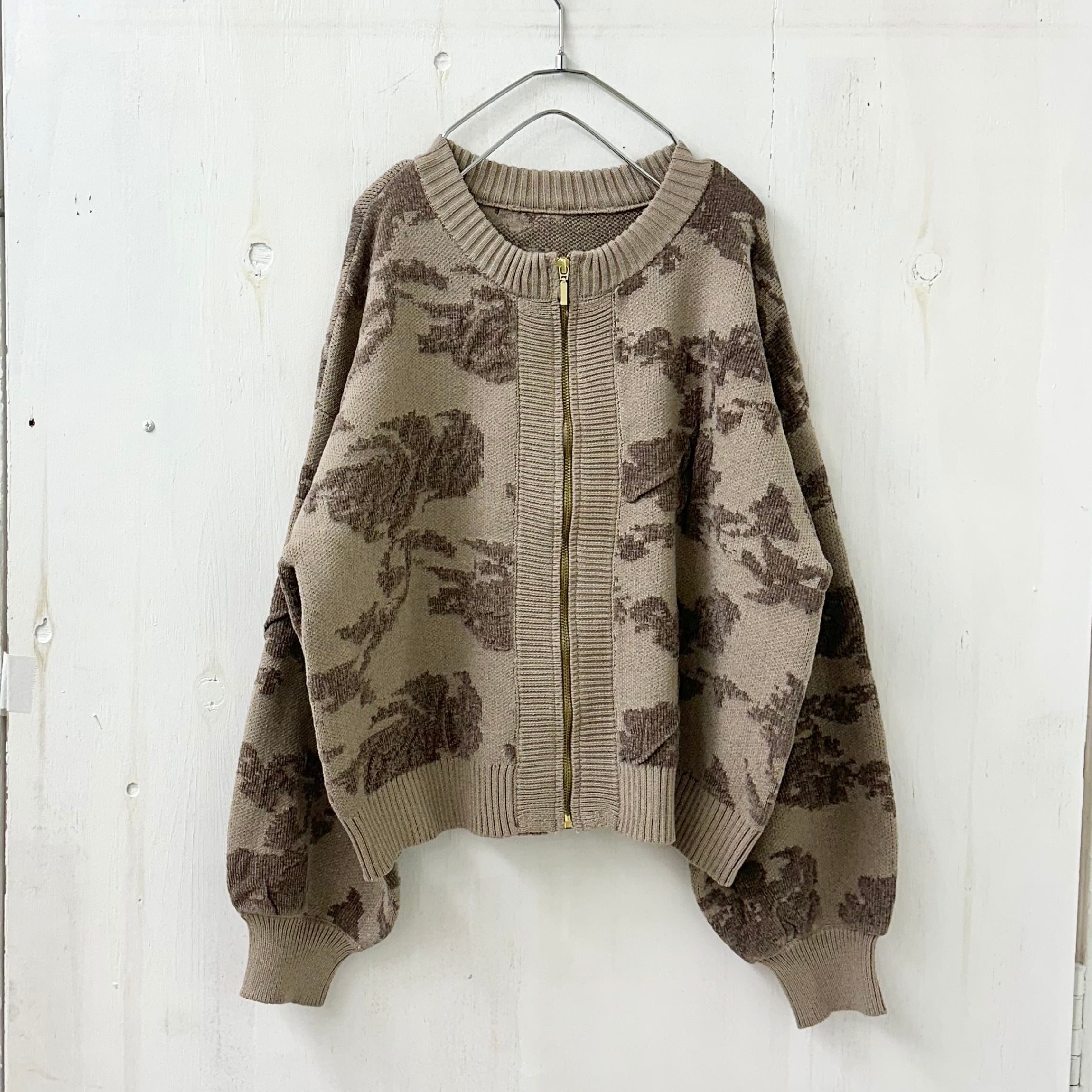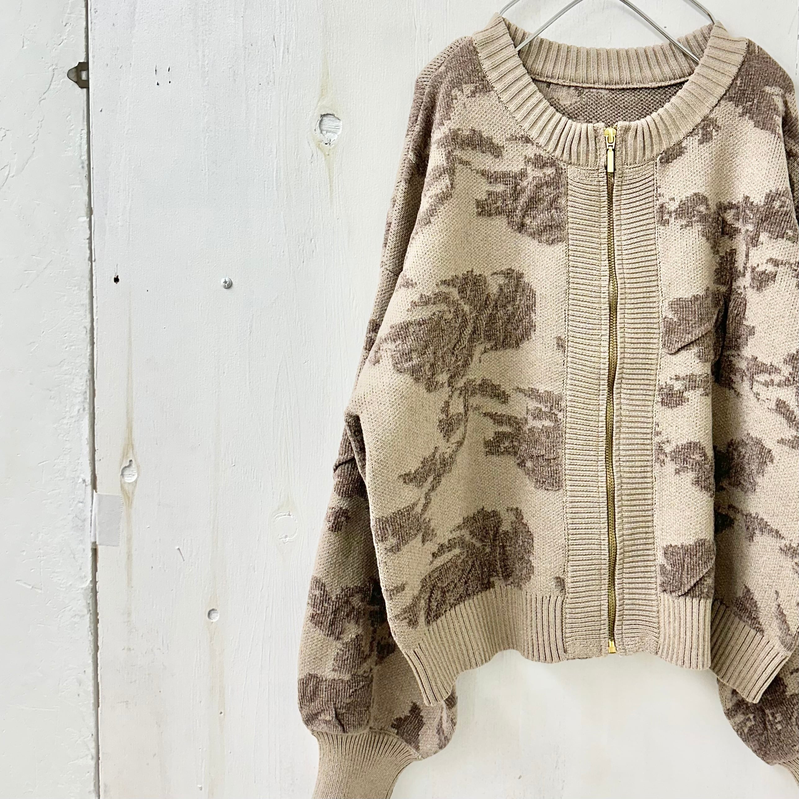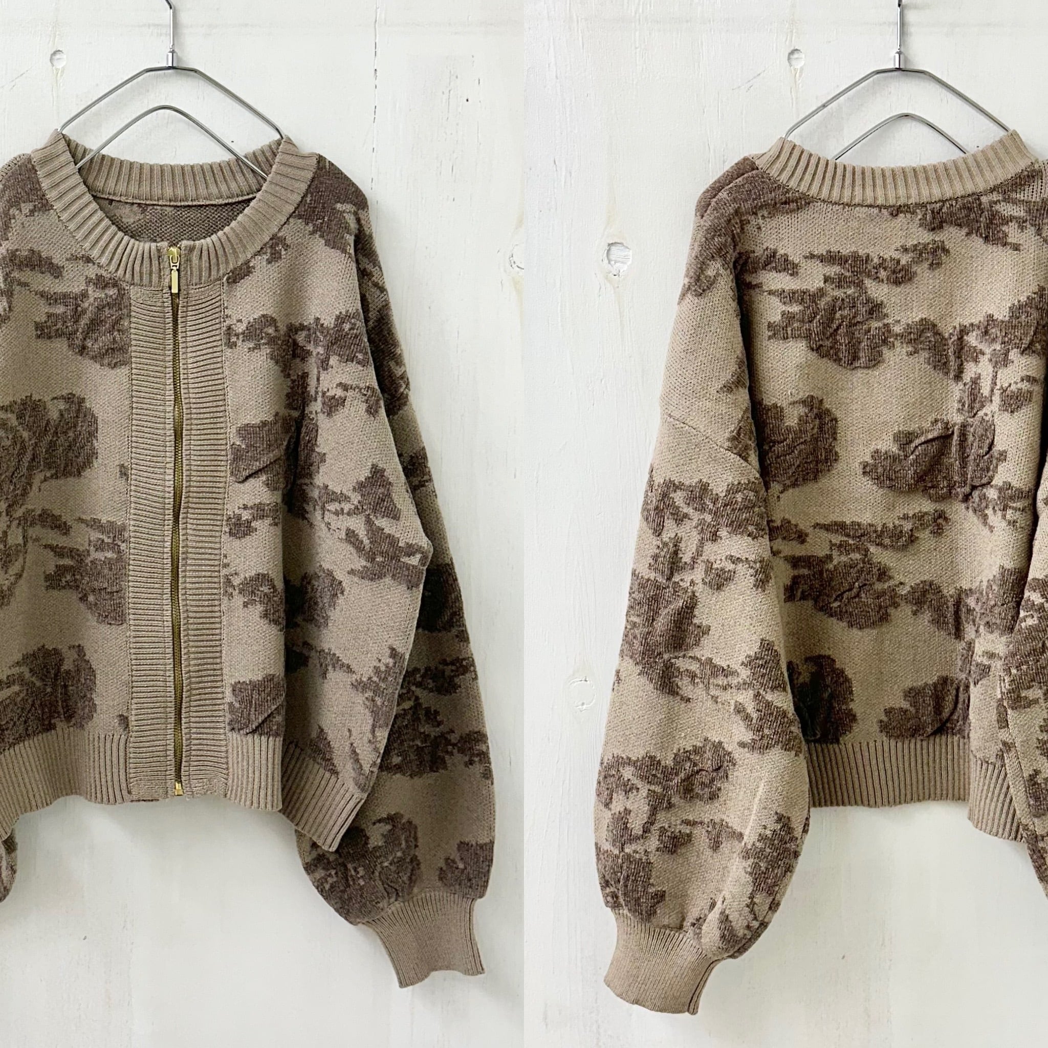 フラワー柄 モール ジャガード ZIP カーディガン / 733-34450