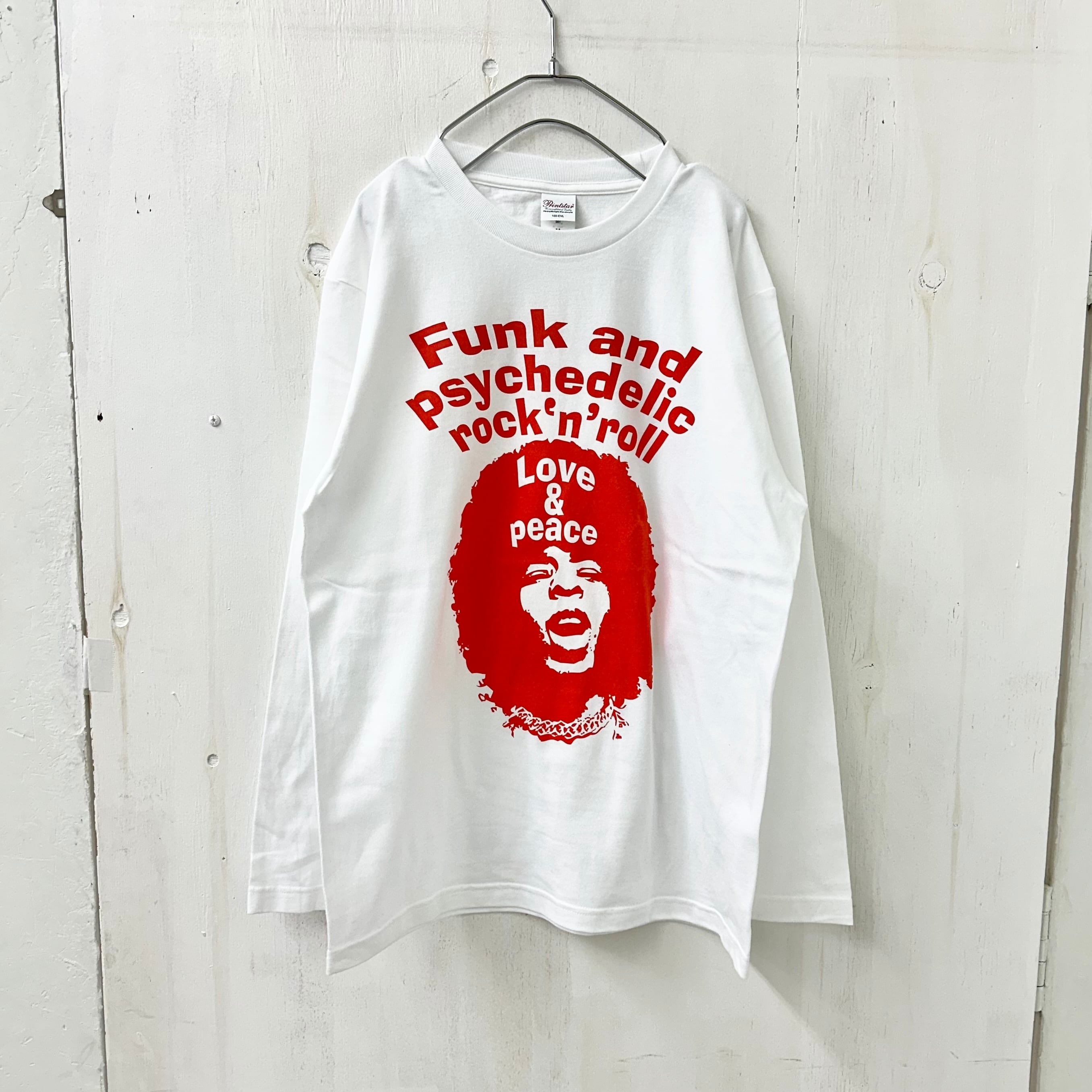 【STRIPE BALLOON】5.6oz 長袖 TEE『FUNK&PSYCHEDELIC』ホワイトXバーミリオン