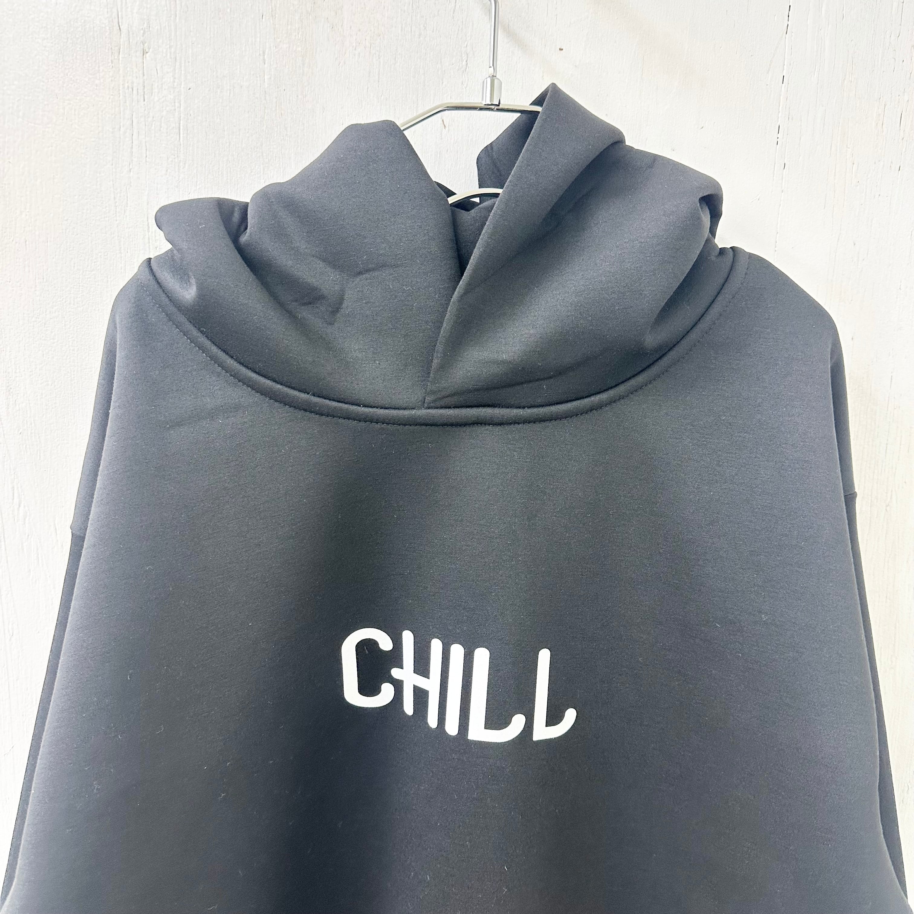 【STRIPE BALLOON】9.4oz T/R ダンボールニット プルオーバー パーカー「CHILL」ブラックXホワイト