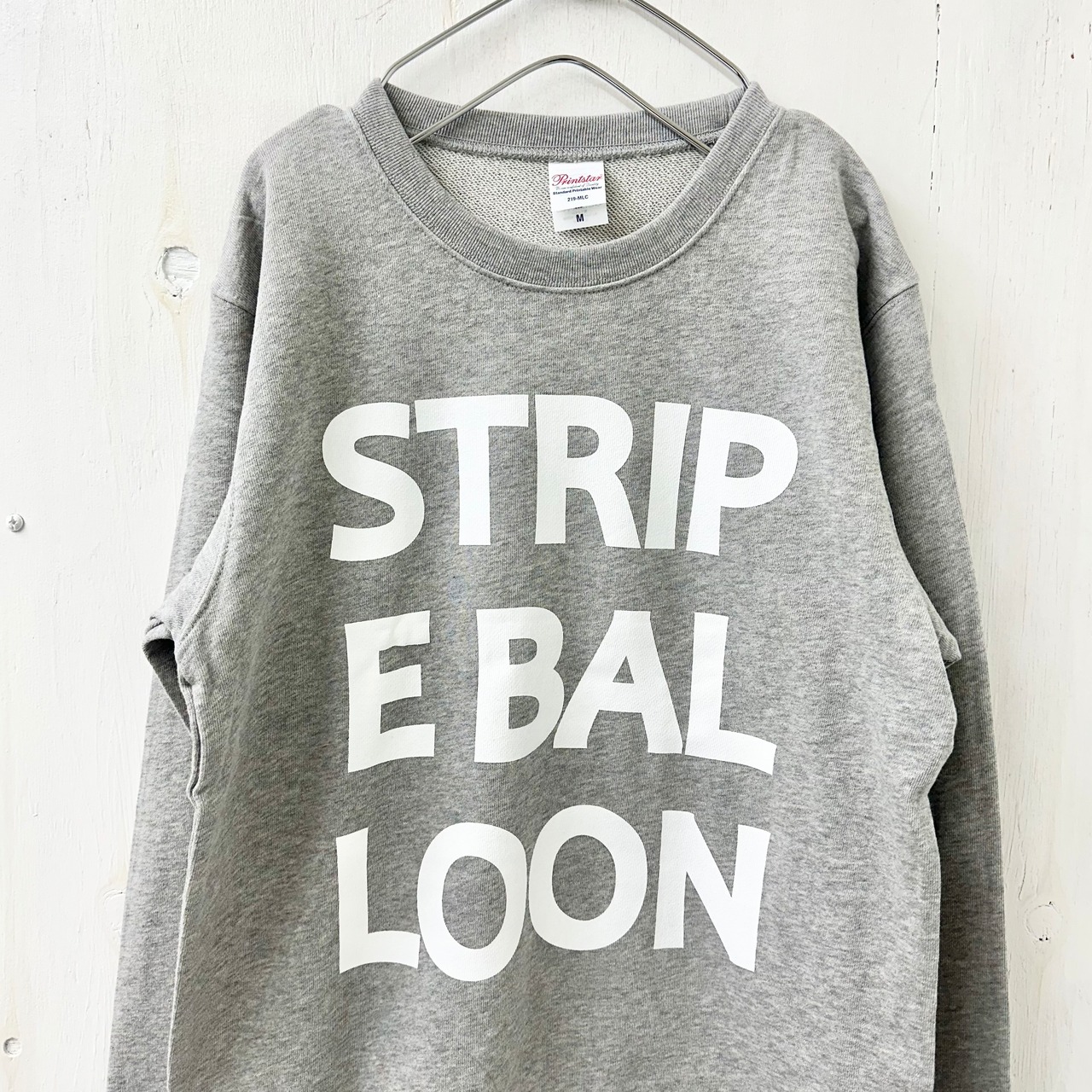 【STRIPE BALLOON】メンズ 8.4oz トレーナー『3列 ロゴ』杢グレーXホワイト