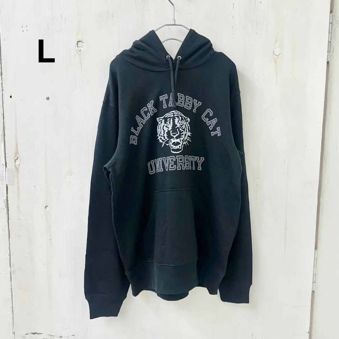 【STRIPE BALLOON】メンズ 8.4oz プルオーバー パーカー『BLACK TABBY CAT』ブラックXホワイト 染込み