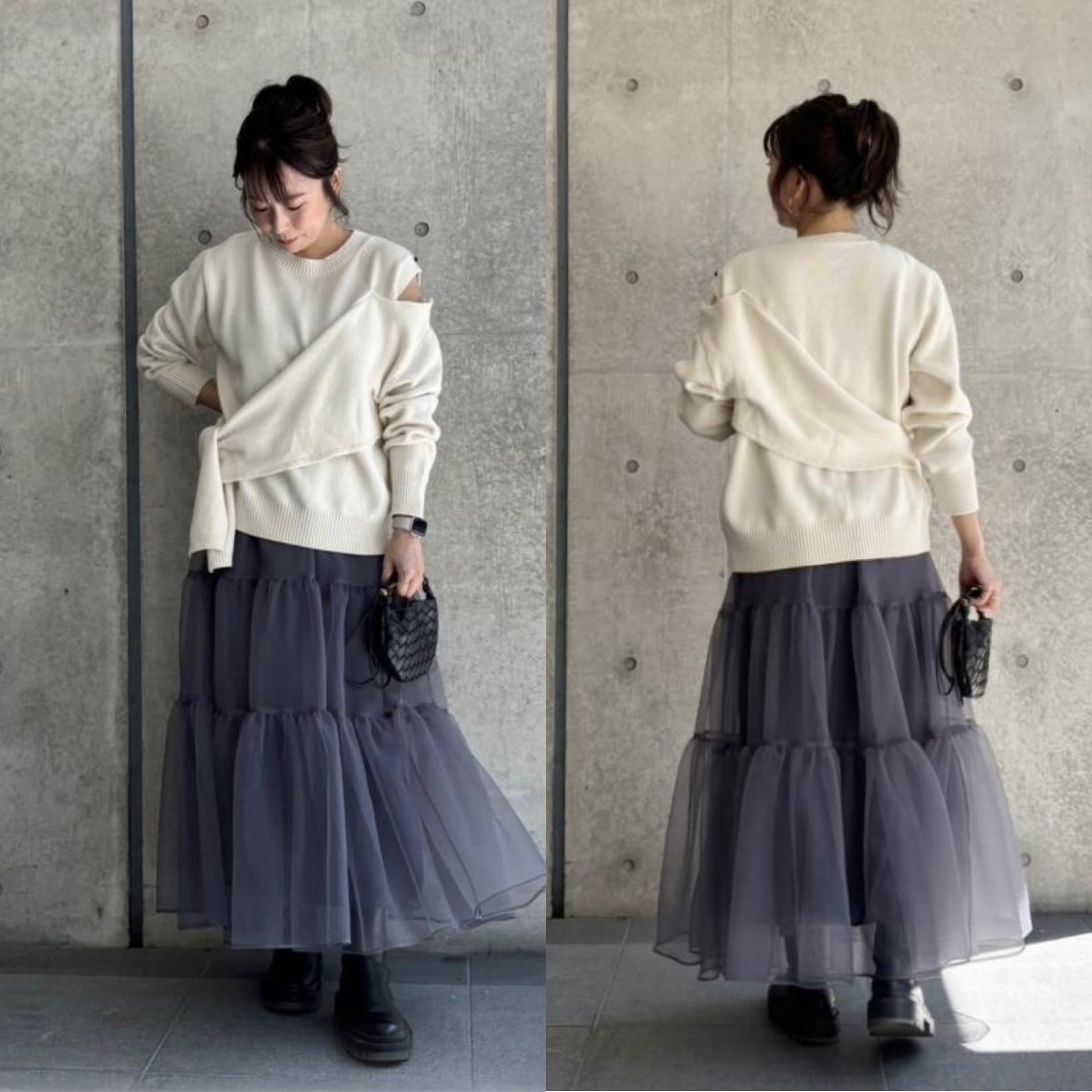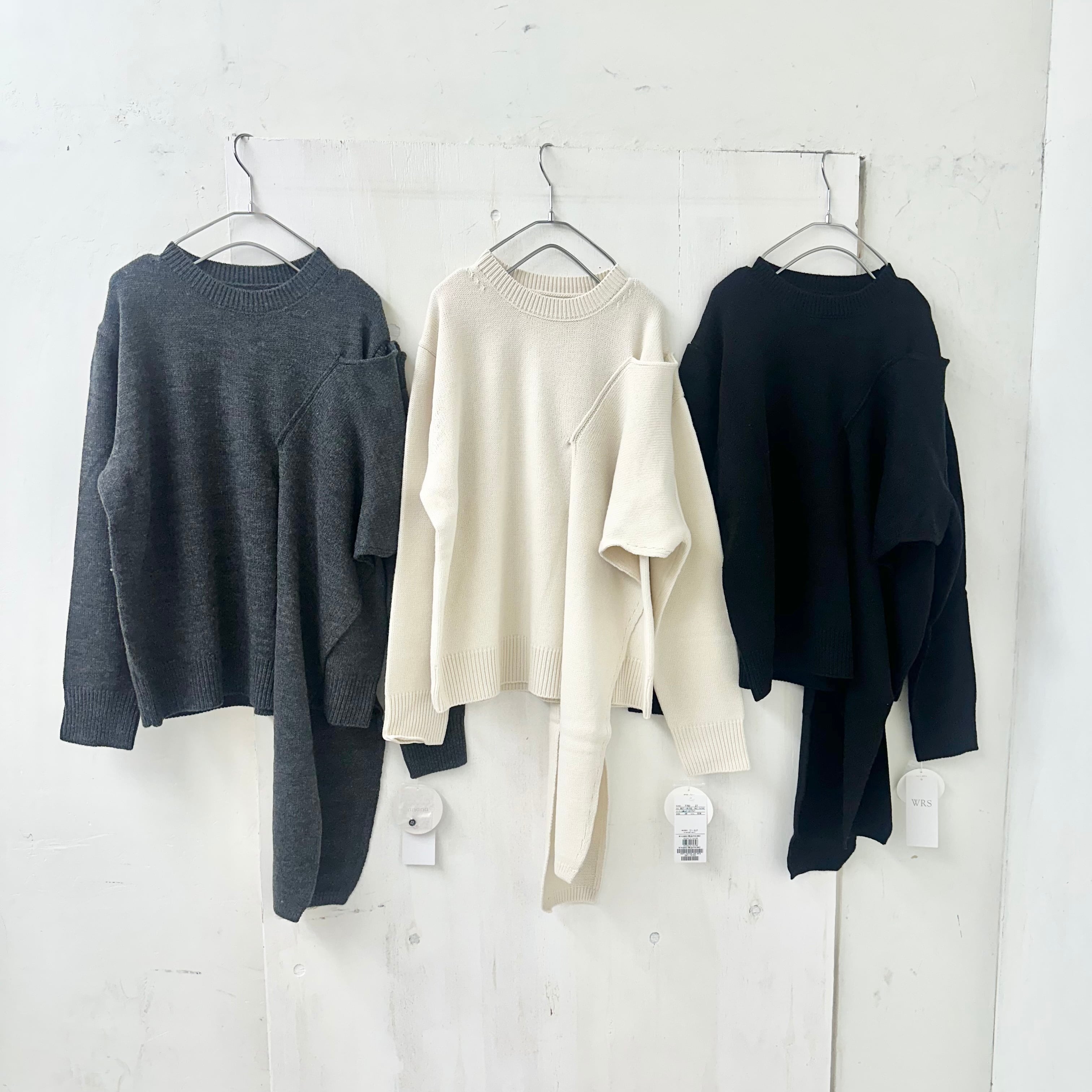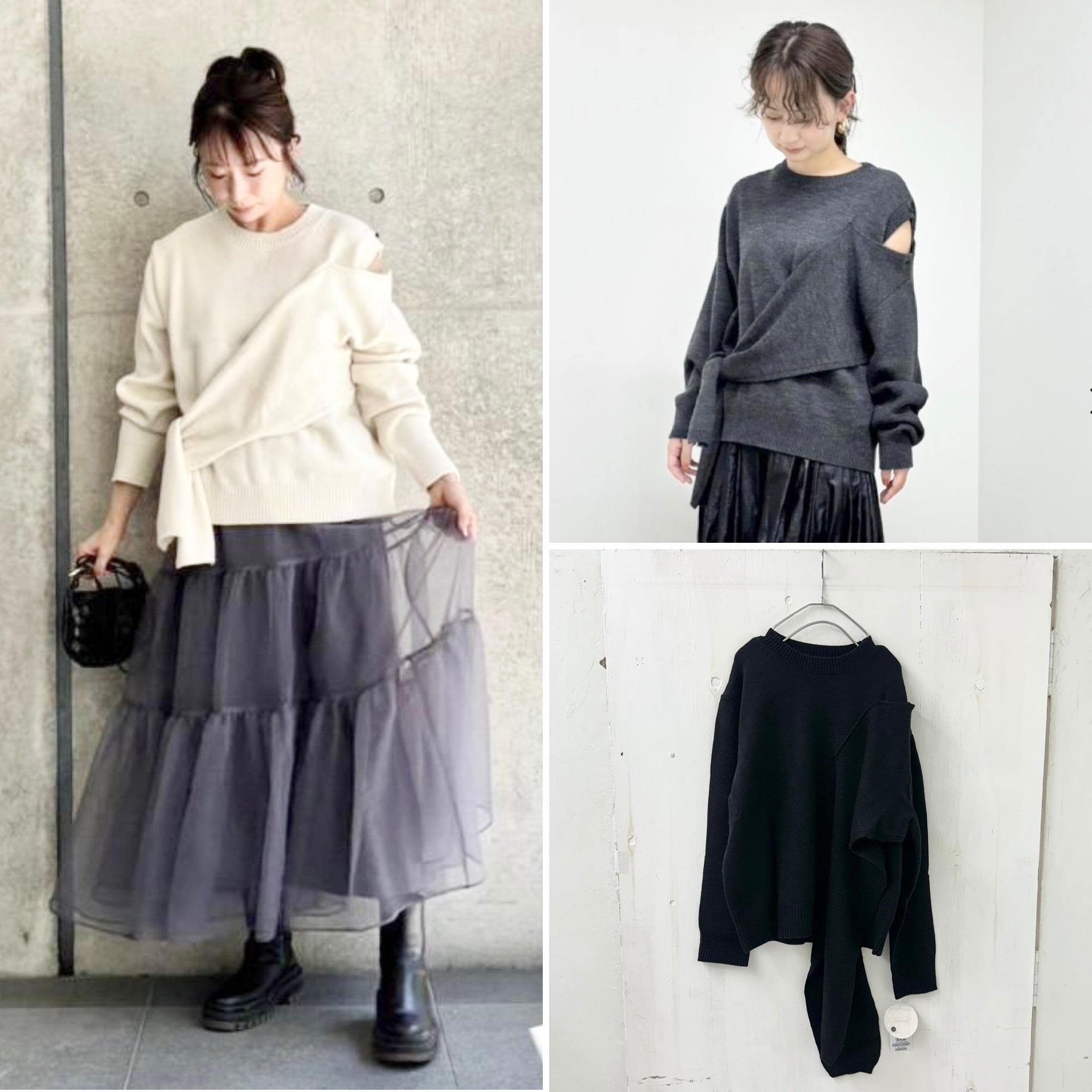 重ね着したようなアシンメトリーデザインの2WAYニットです。