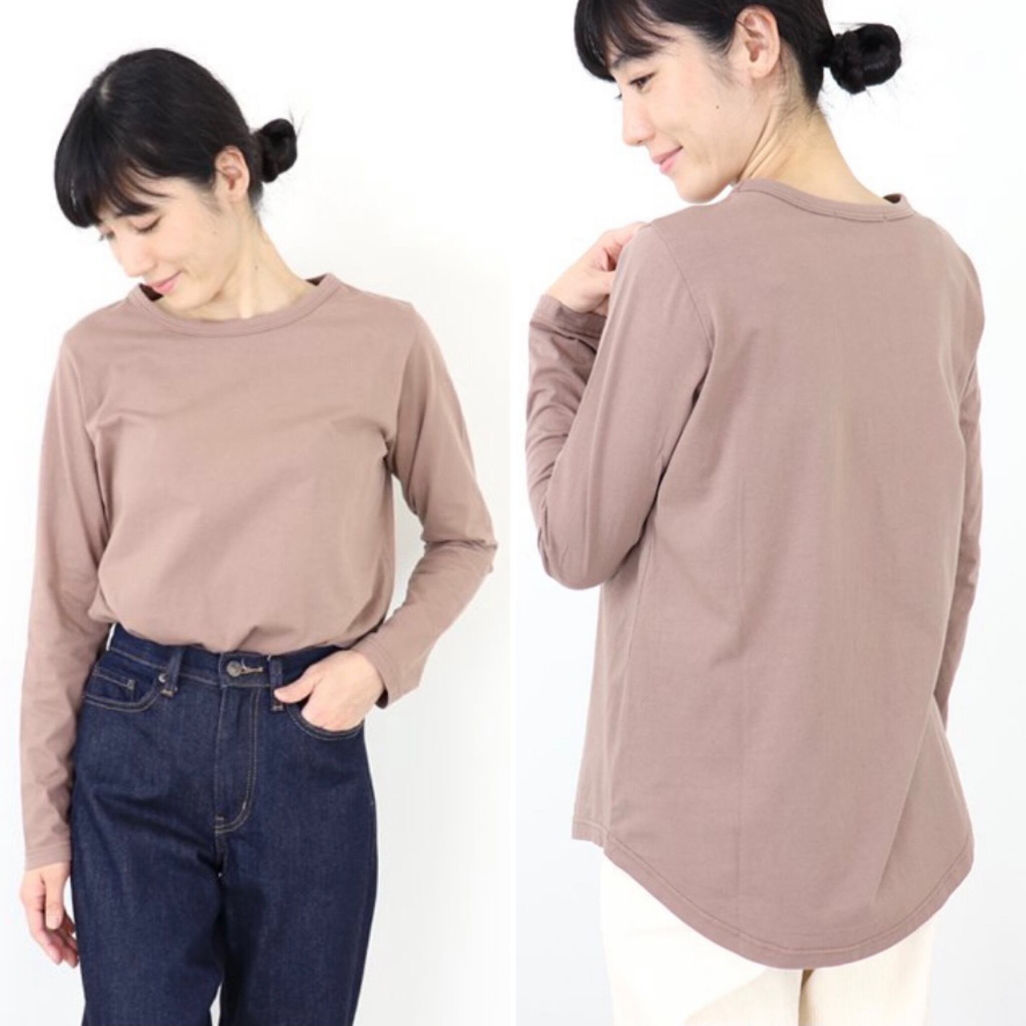 LONG丈 裾ラウンド 長袖カットソー