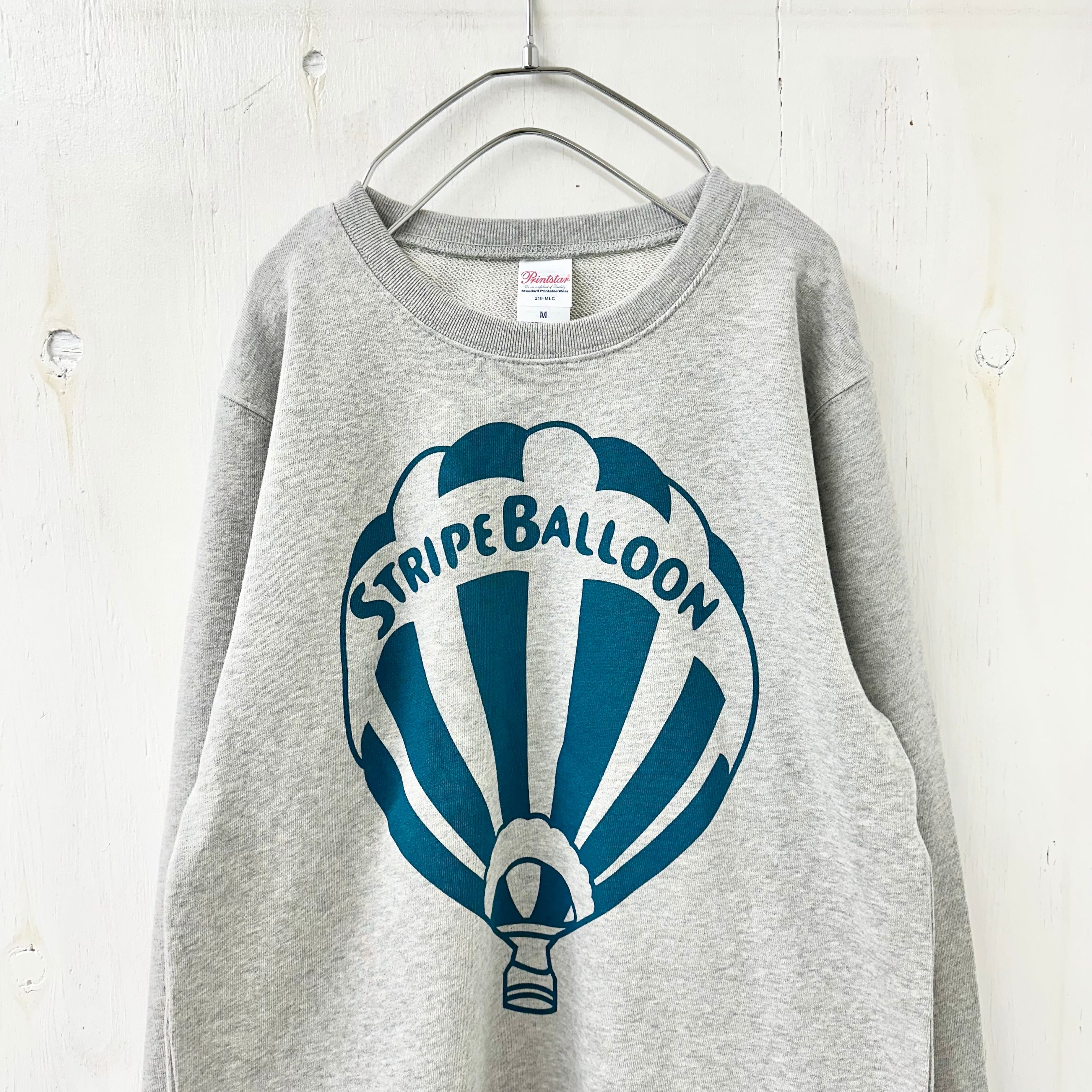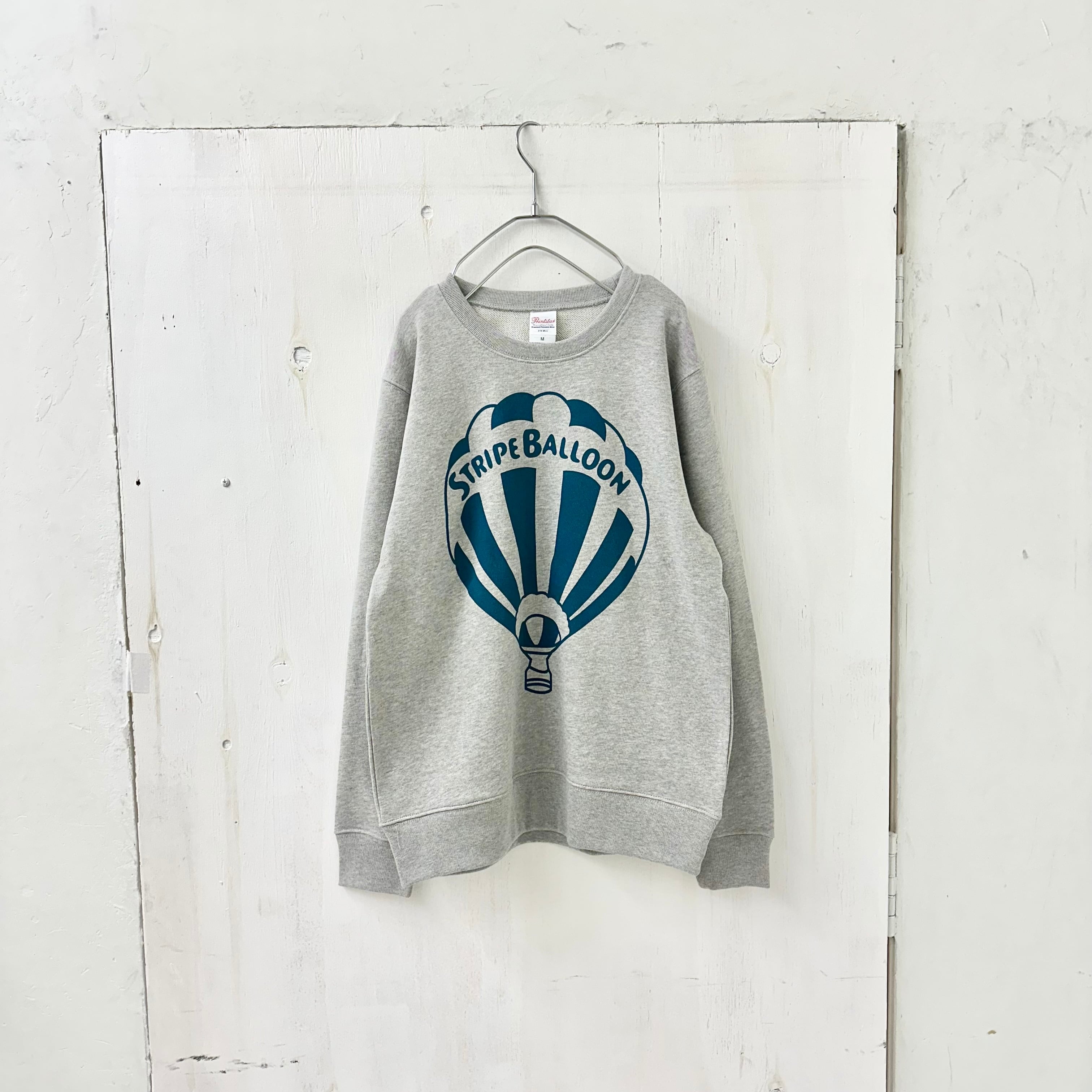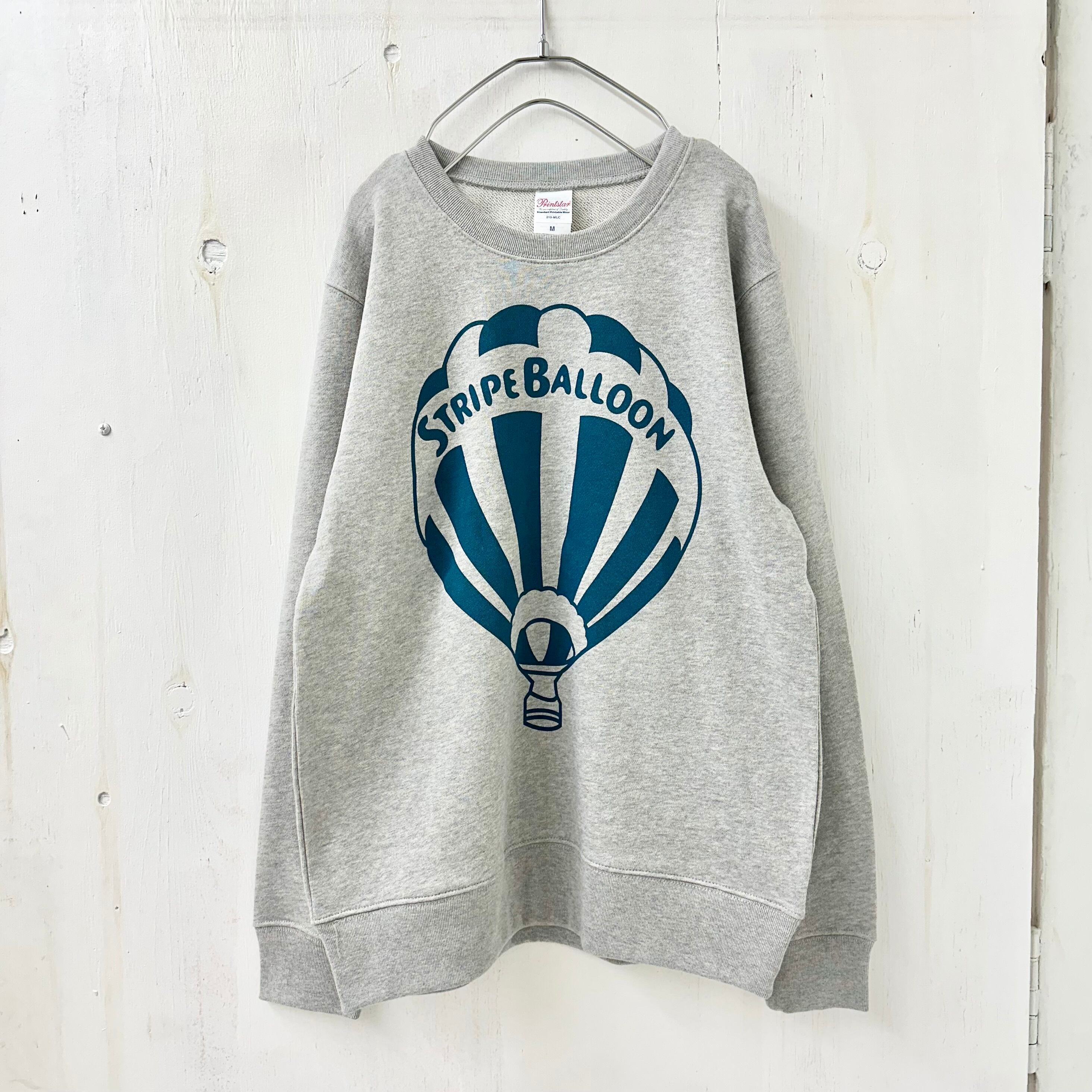 【STRIPE BALLOON】MENS トレーナー 8.4oz『気球』杢グレーXビリジアン 染込み