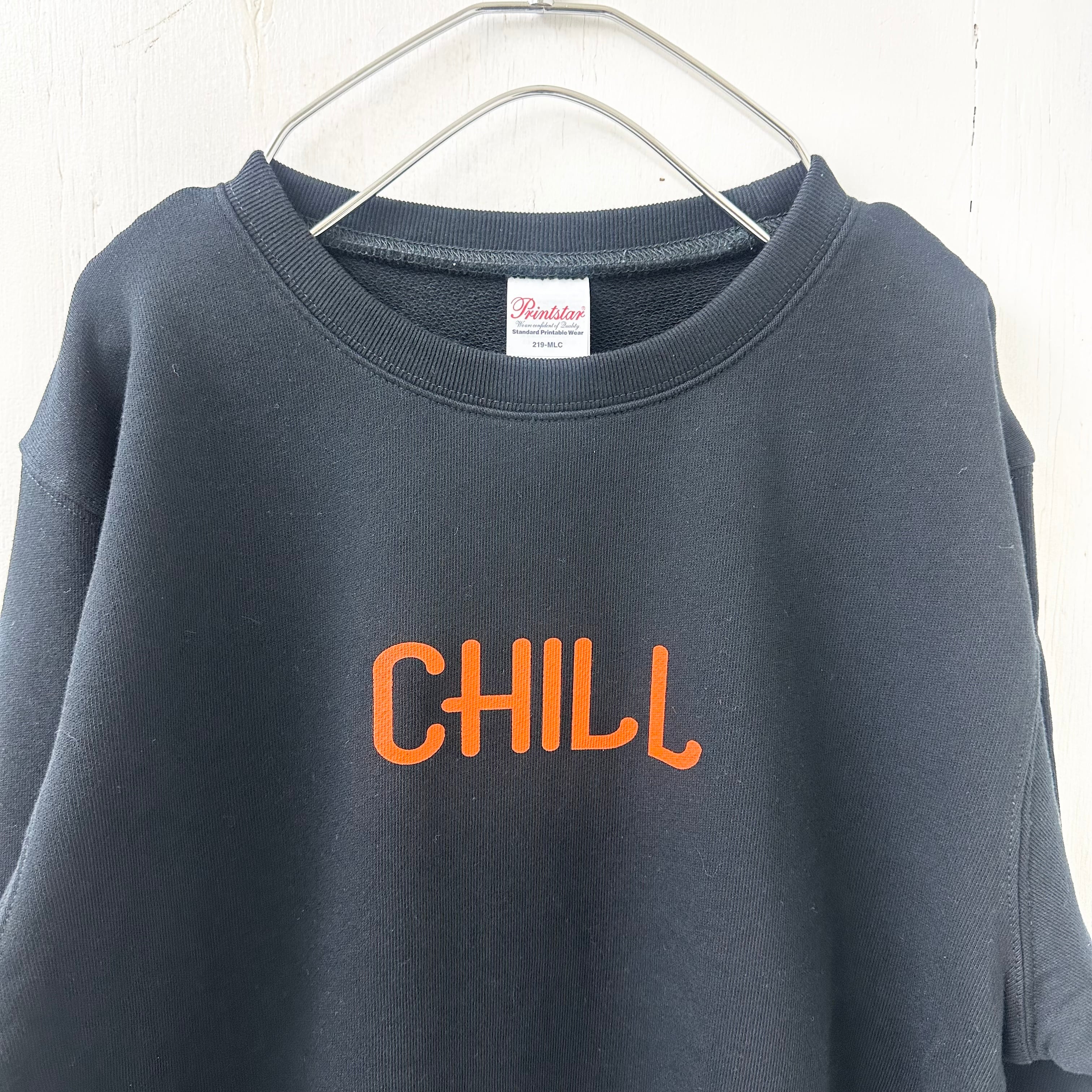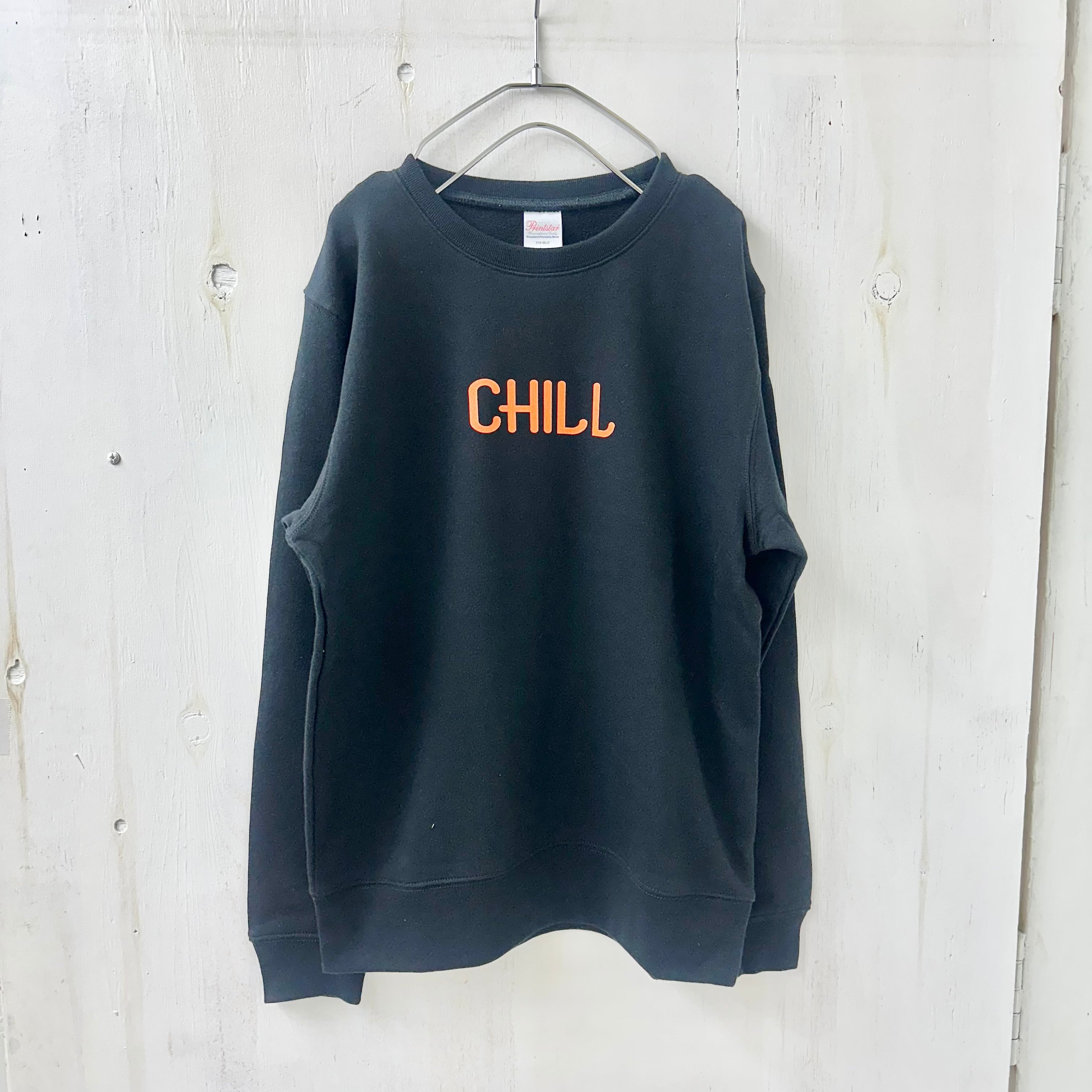 【STRIPE BALLOON】MENS トレーナー 8.4oz『CHILL』ブラックXオレンジ