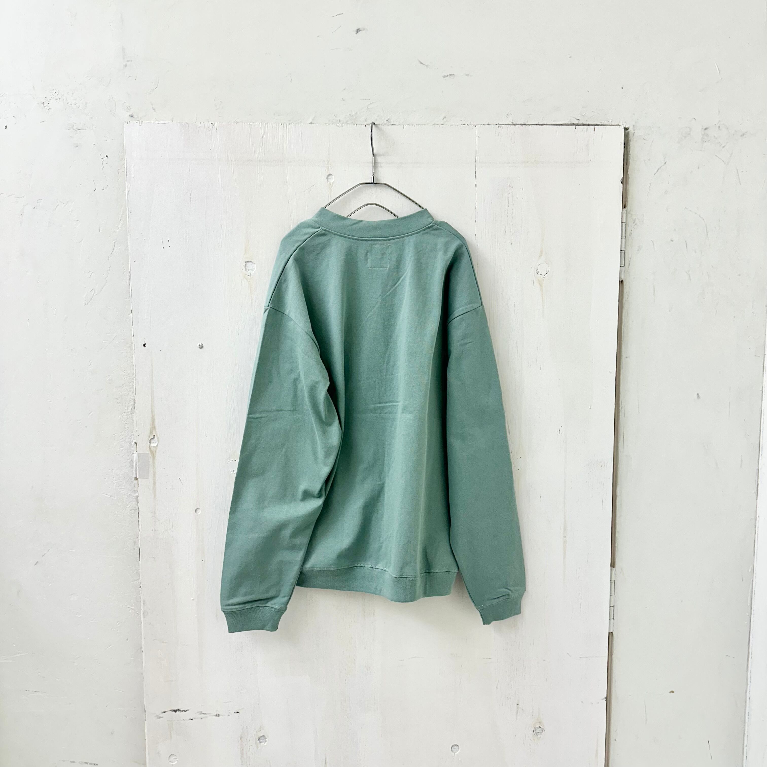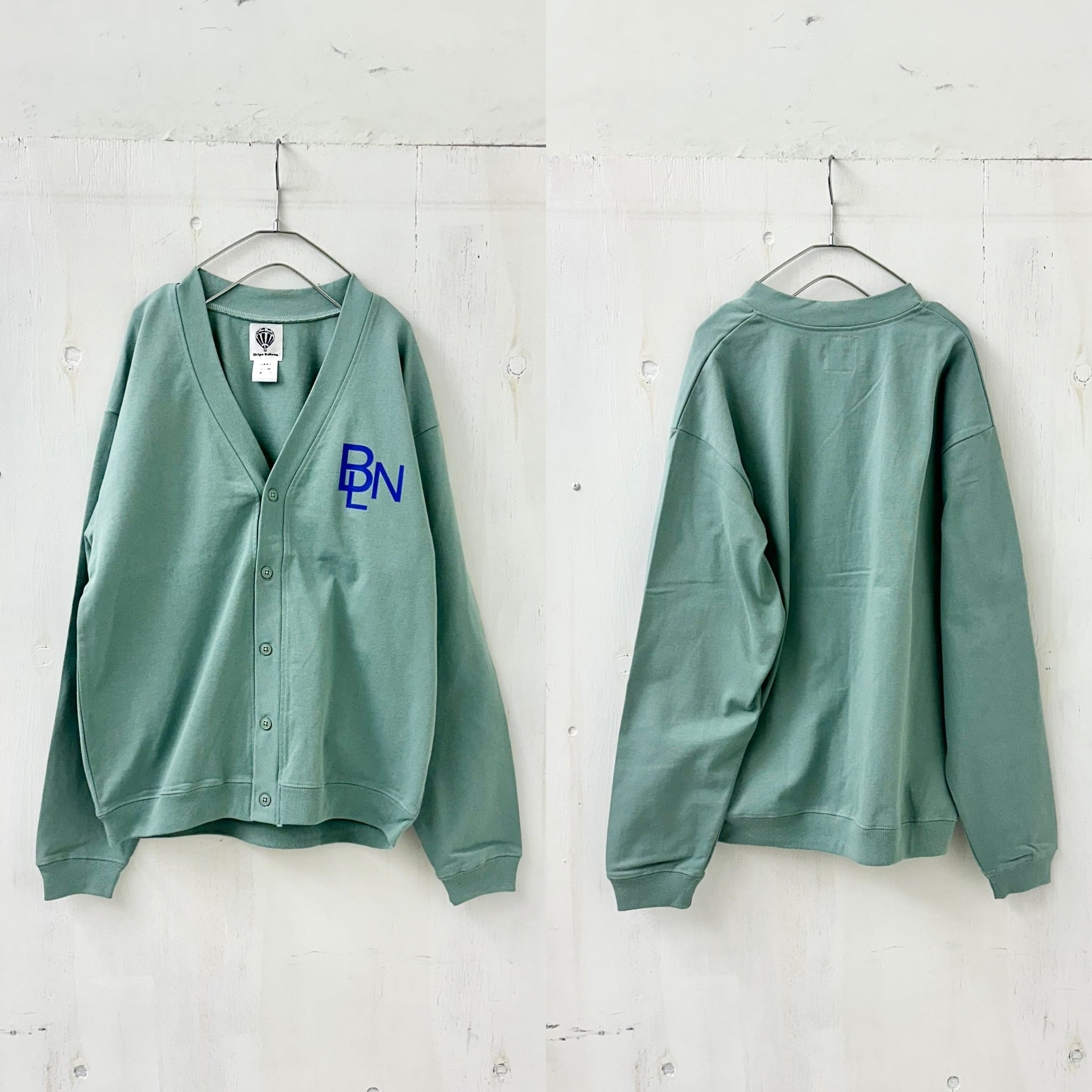 【STRIPE BALLOON】10.0oz コットン ルーズ フィット カーディガン「BLN エンブレム」スモーキーグリーン