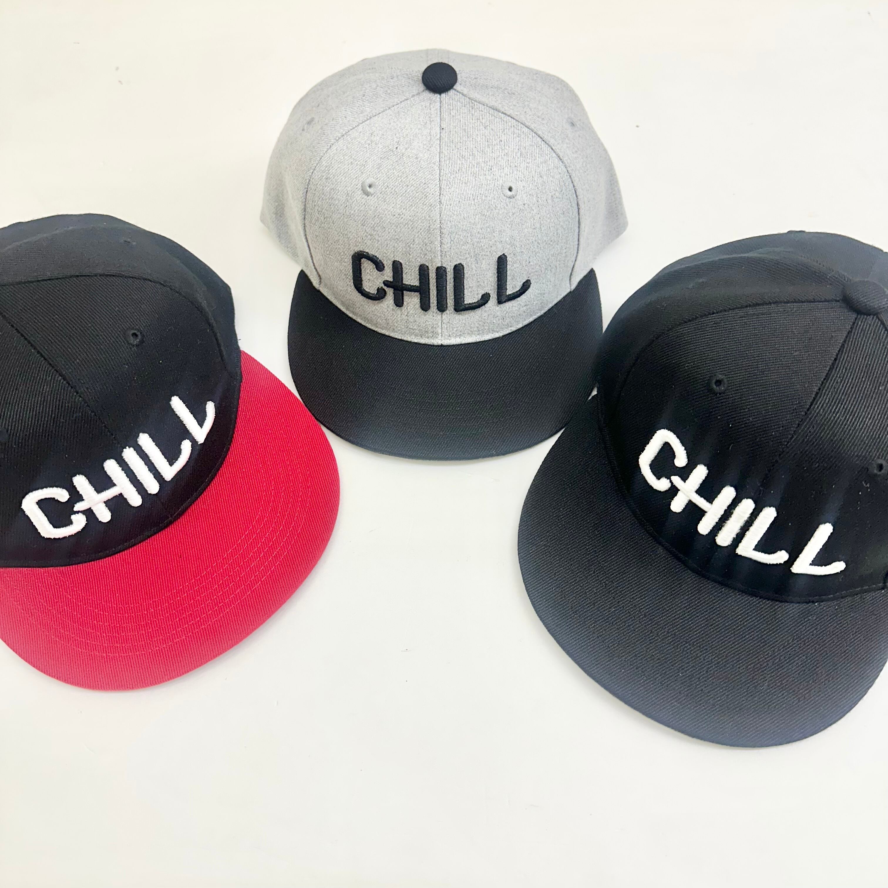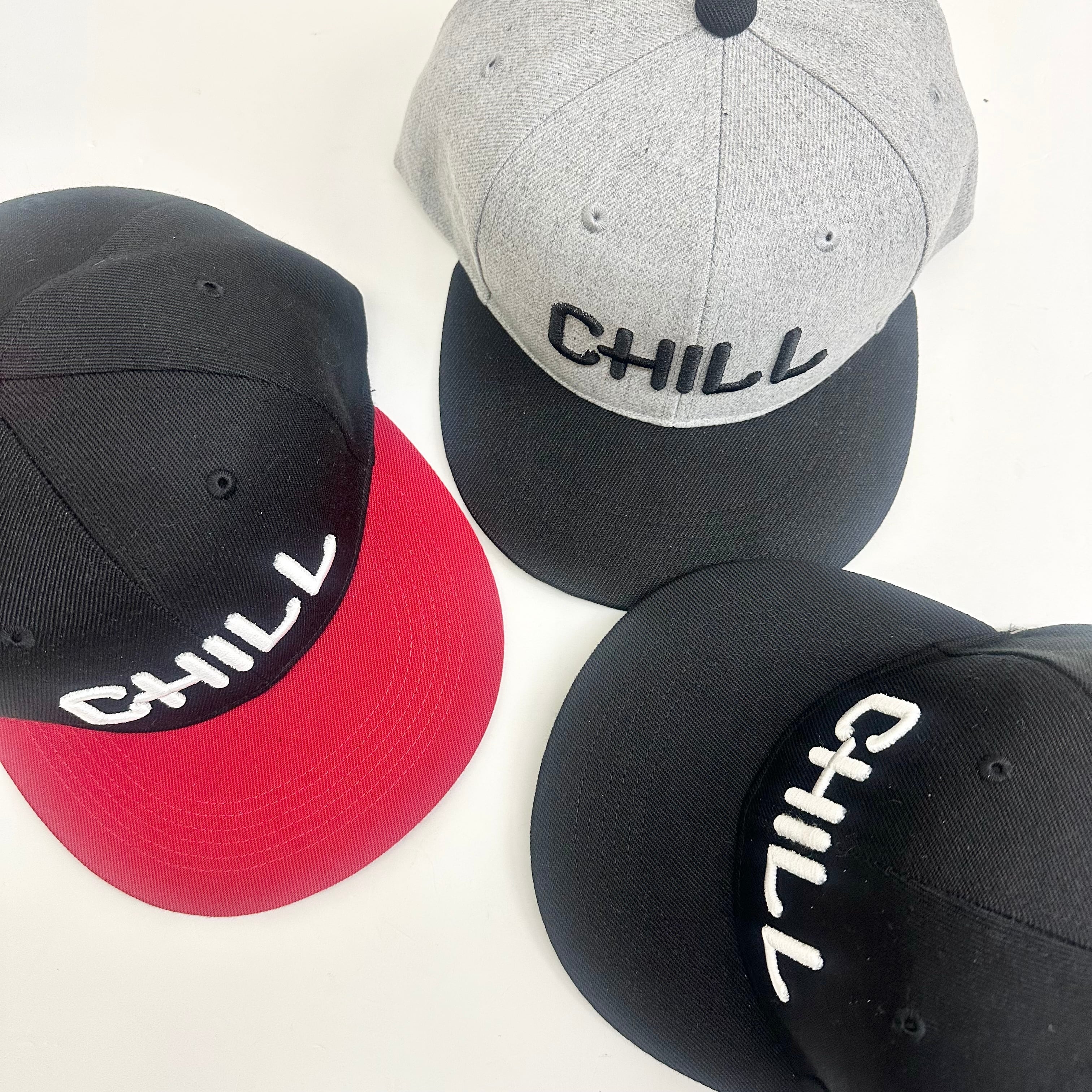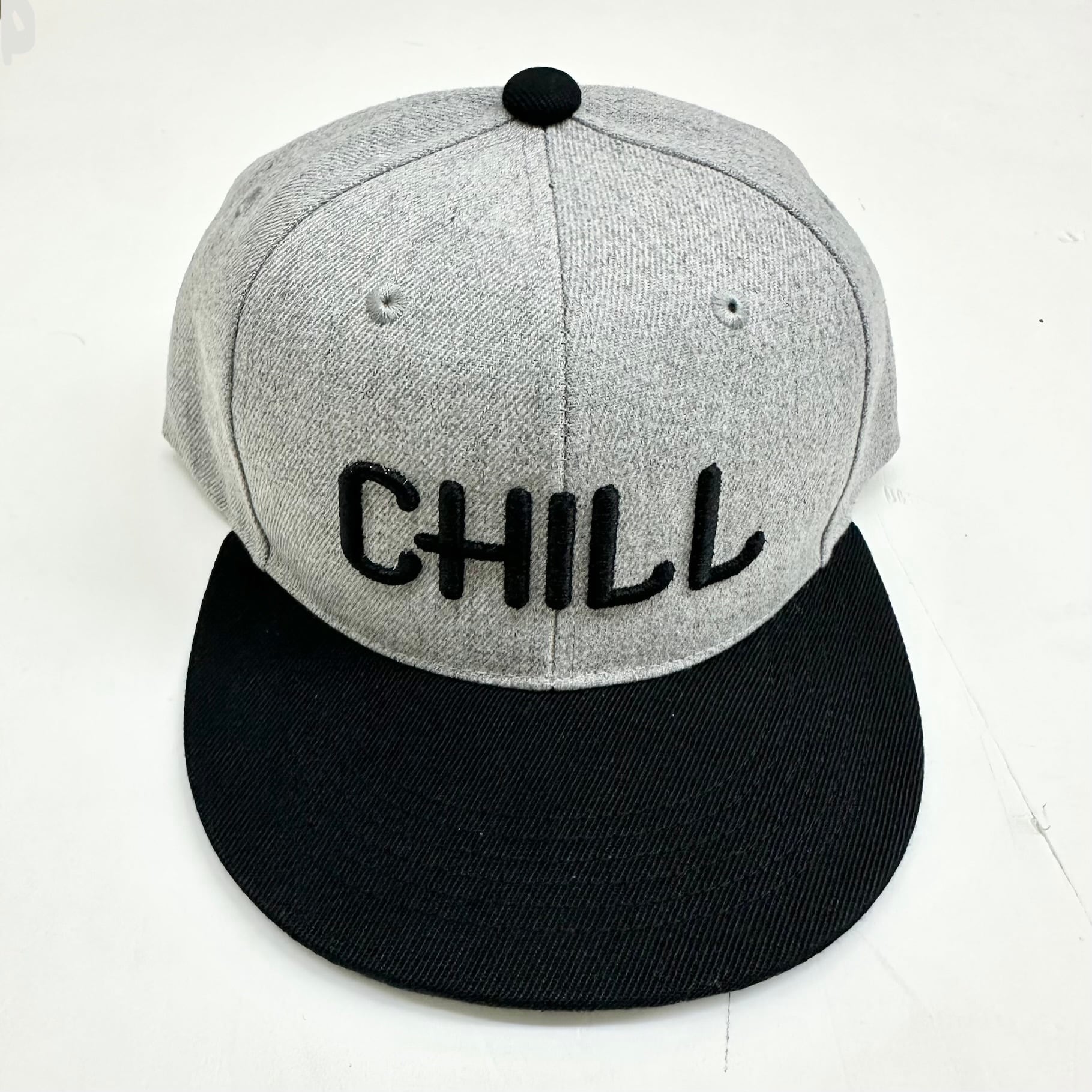 【STRIPE BALLOON】バイカラー フラット バイザー スナップ CAP 『CHILL』3D刺繍 グレーXブラック