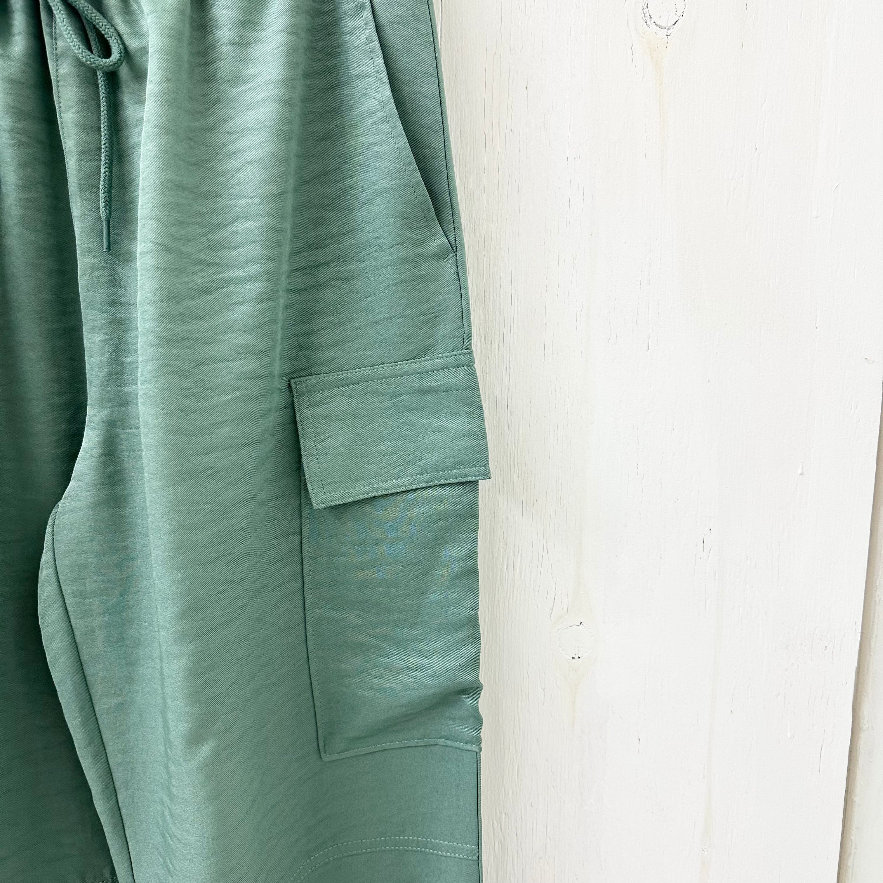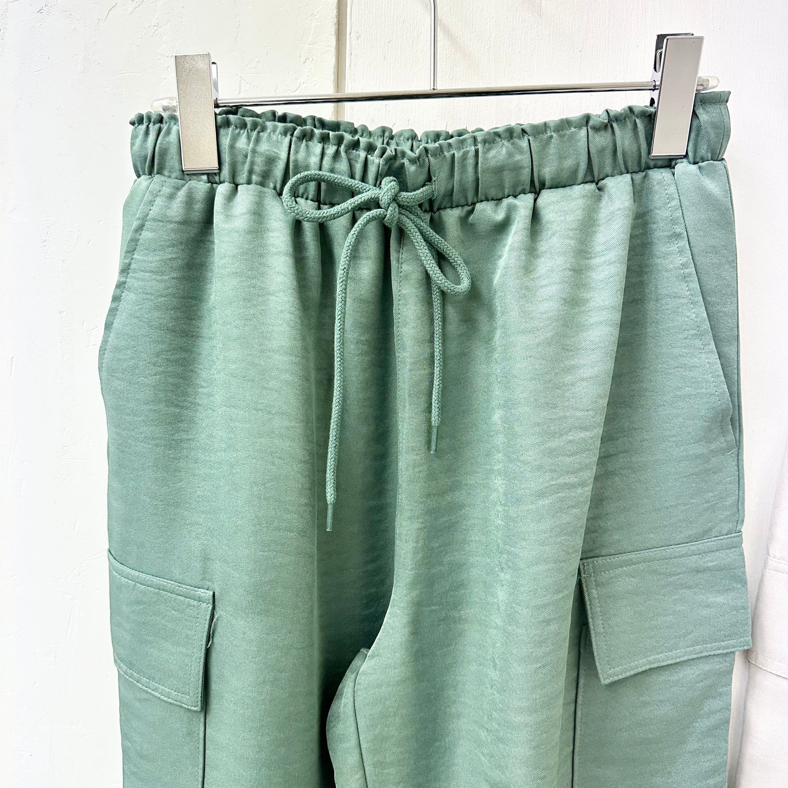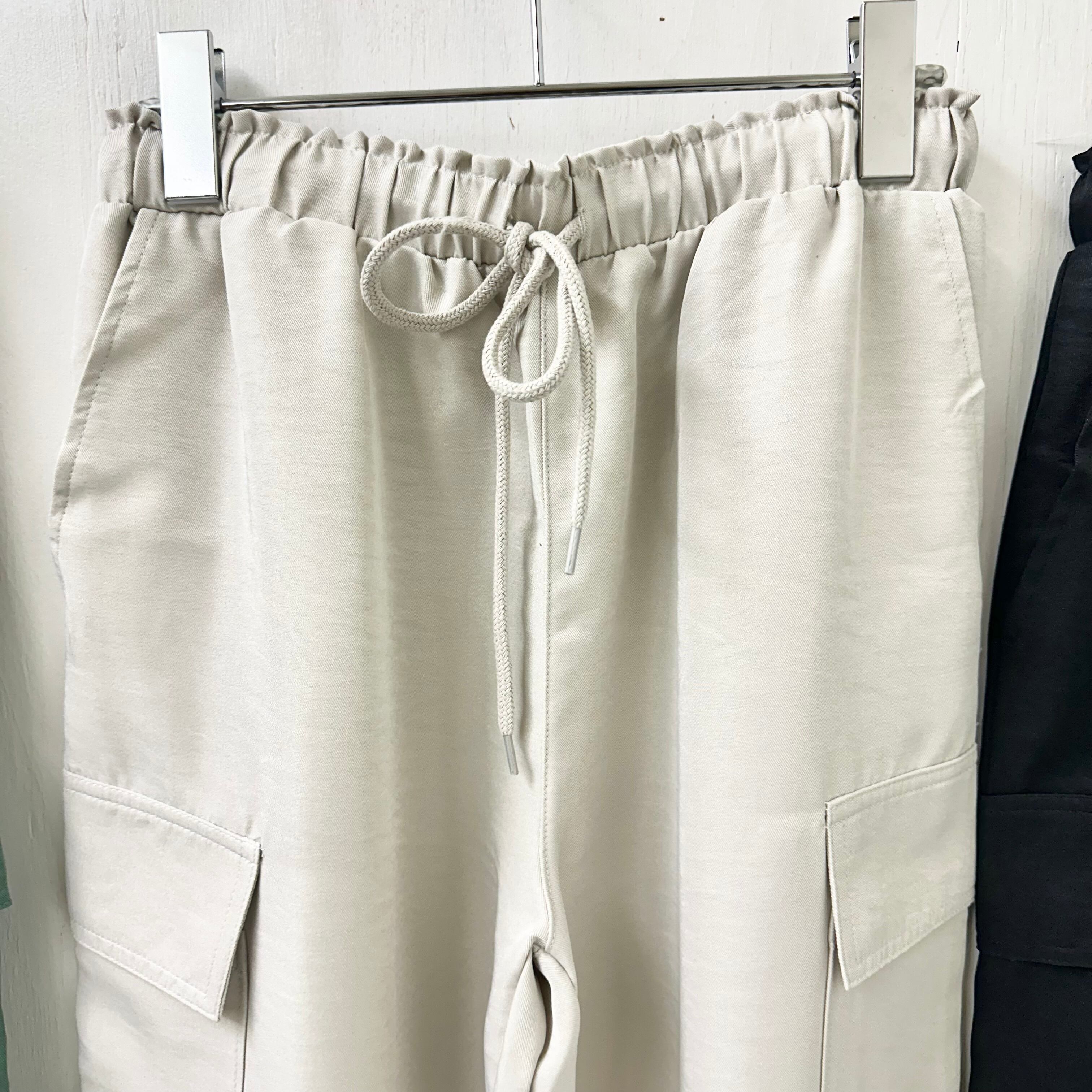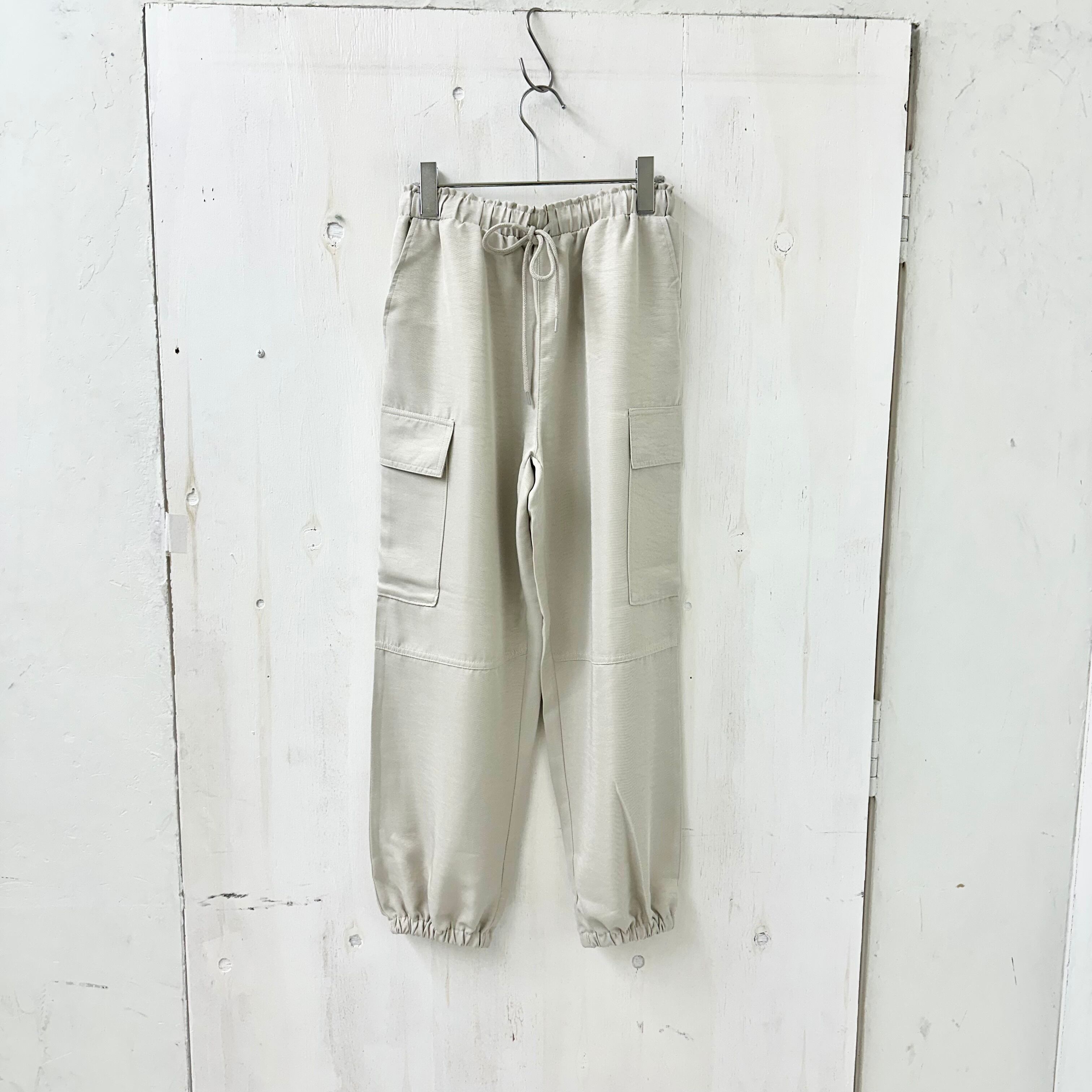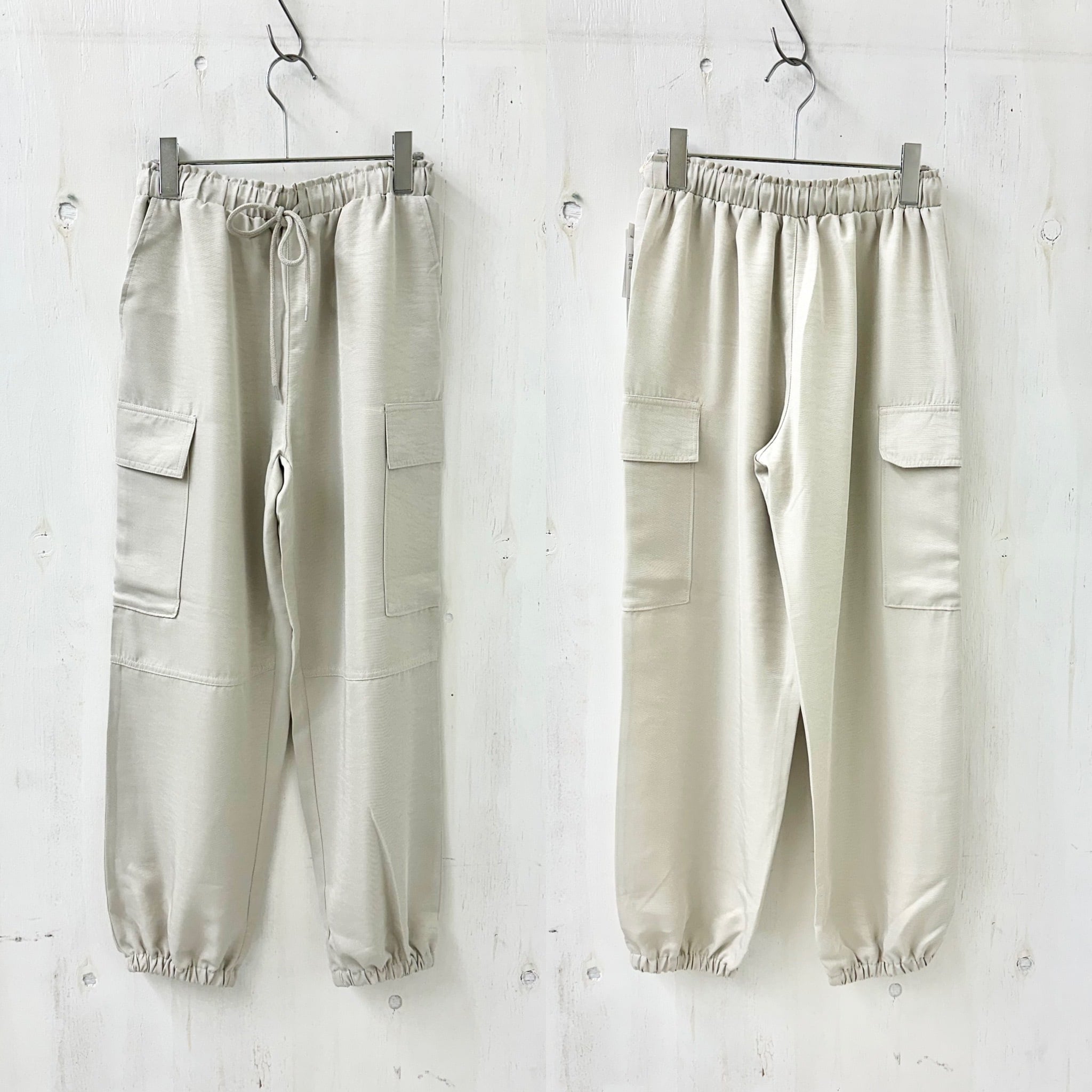 ほんのりにぶい光沢感のあるツイル素材で作られたカーゴ パンツが登場。