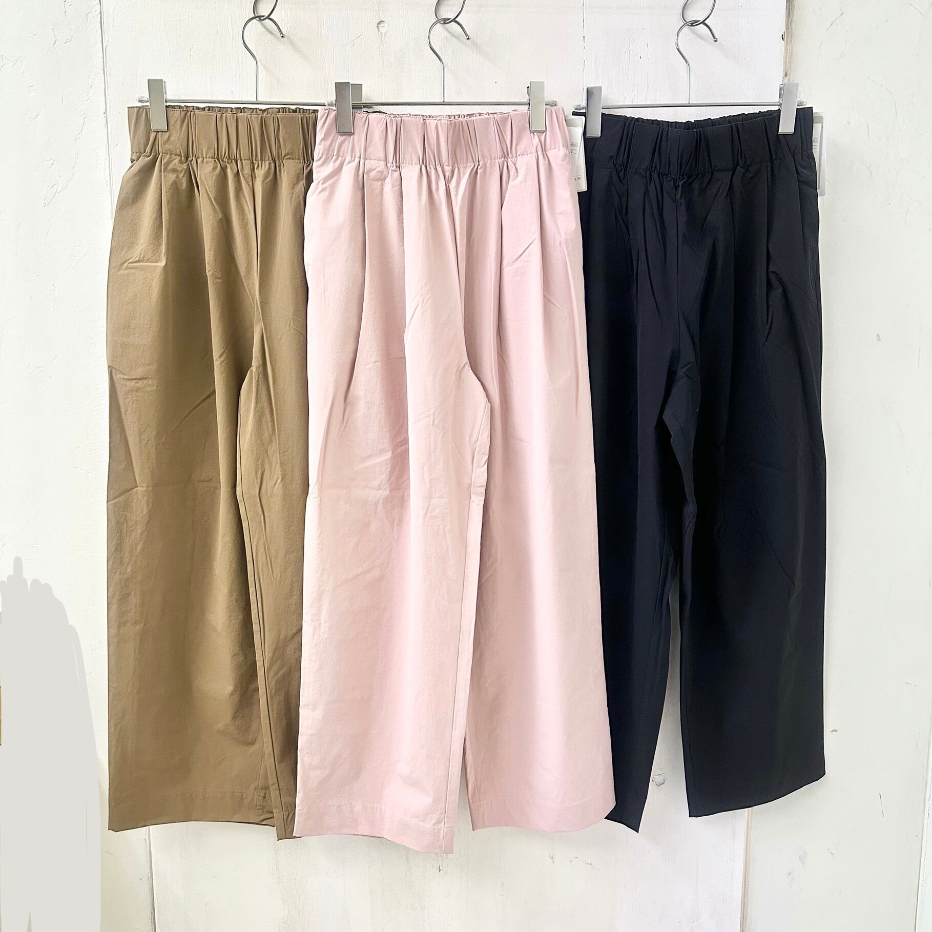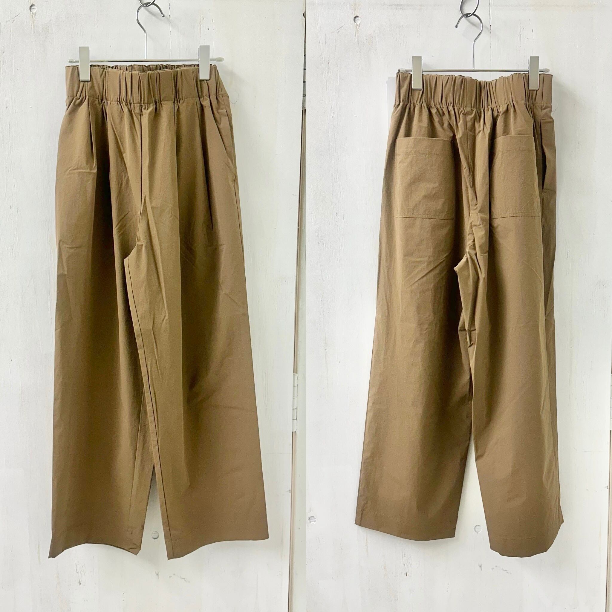 シーズンレスに使える綿ナイロン素材のワイドパンツです