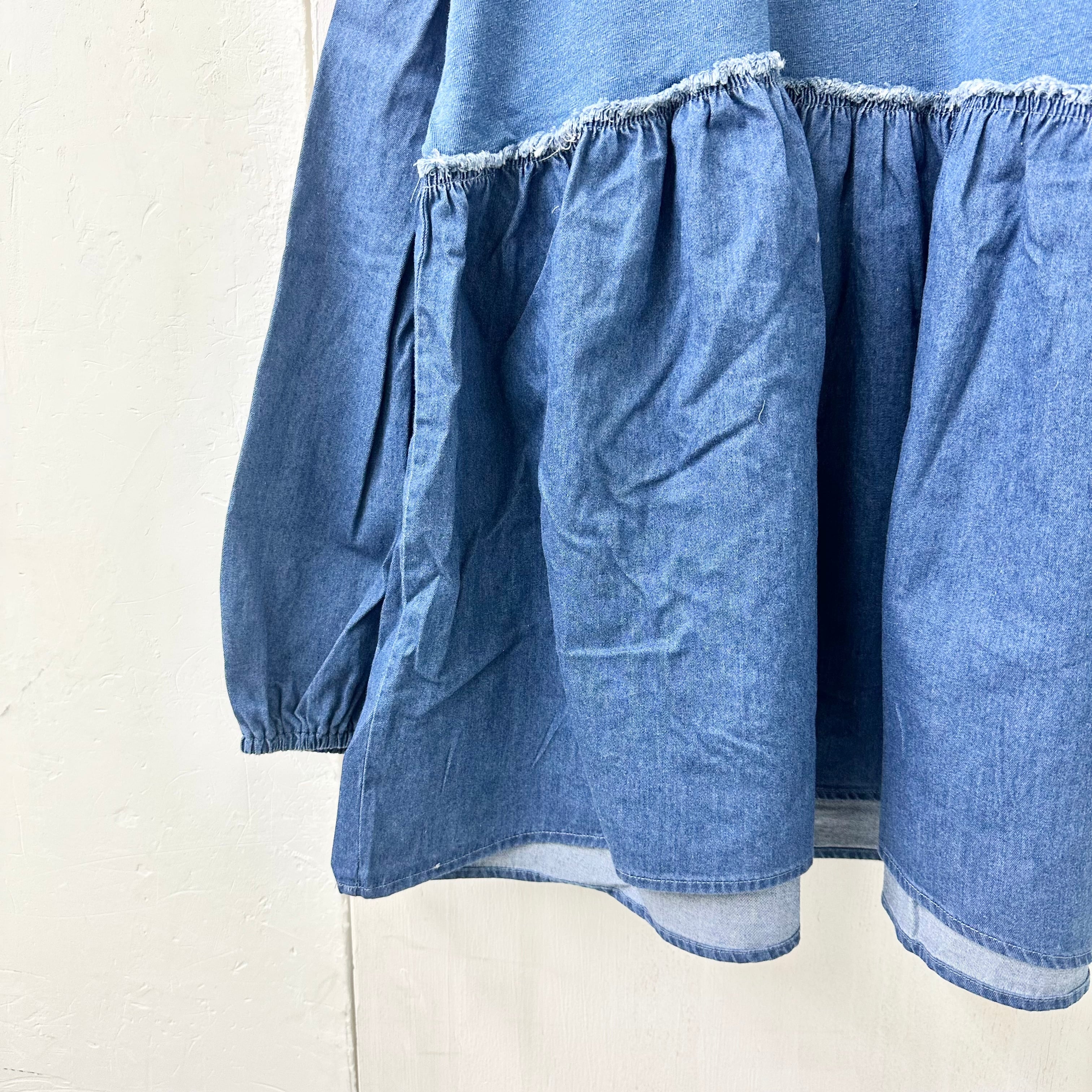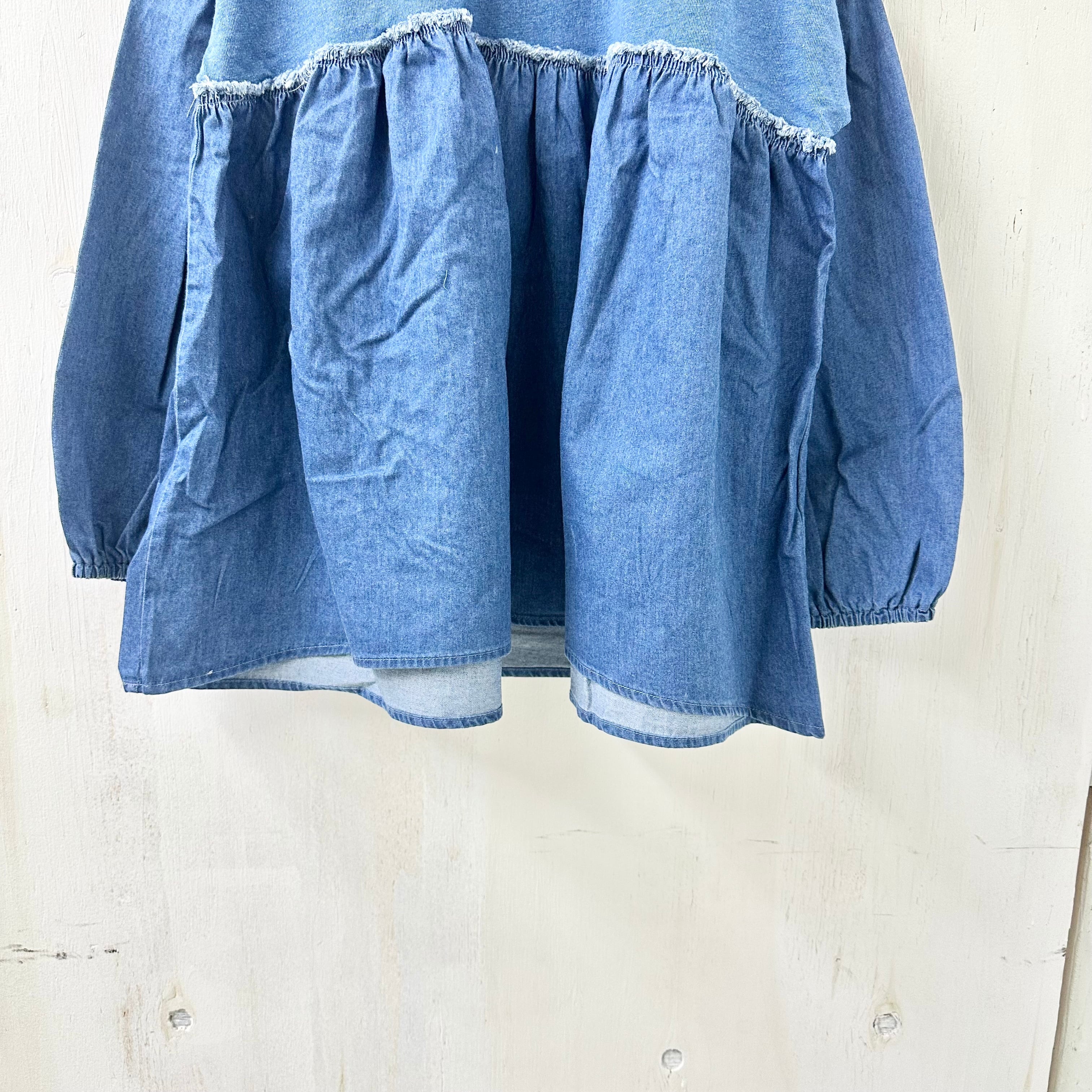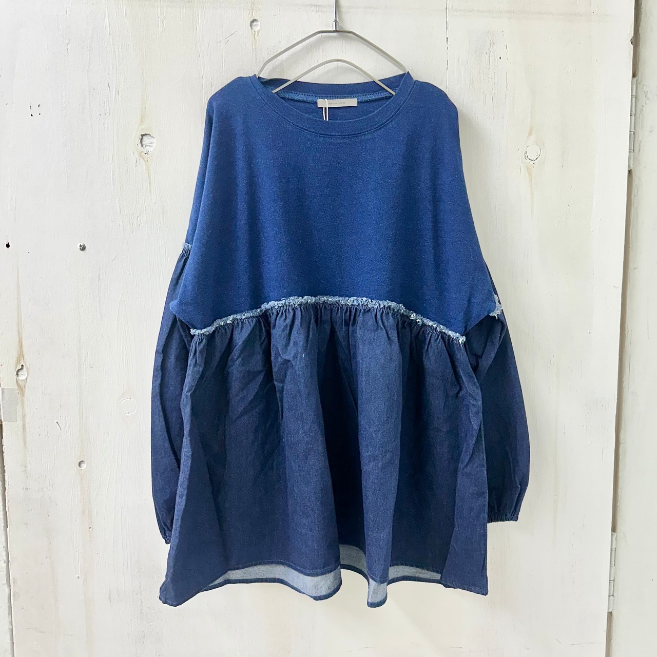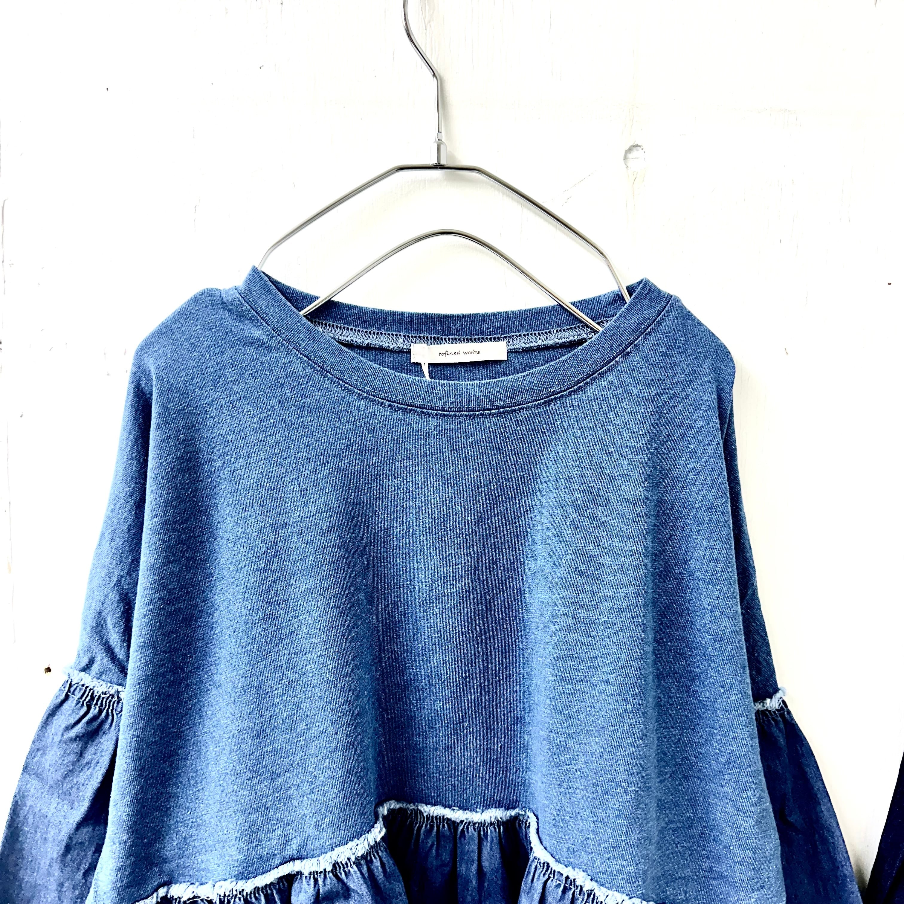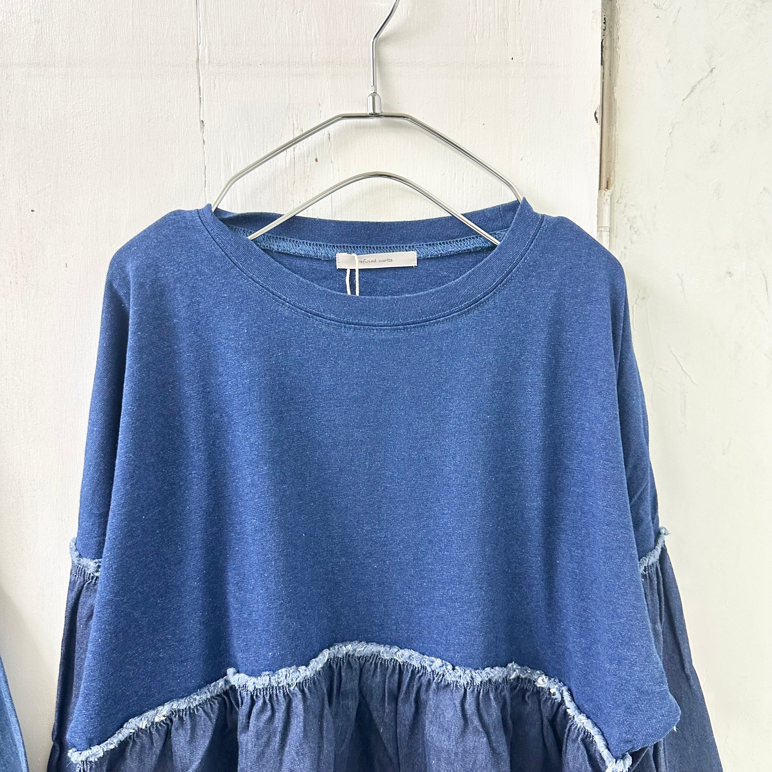 インディゴ天竺 x デニム切替 ギャザー TEE