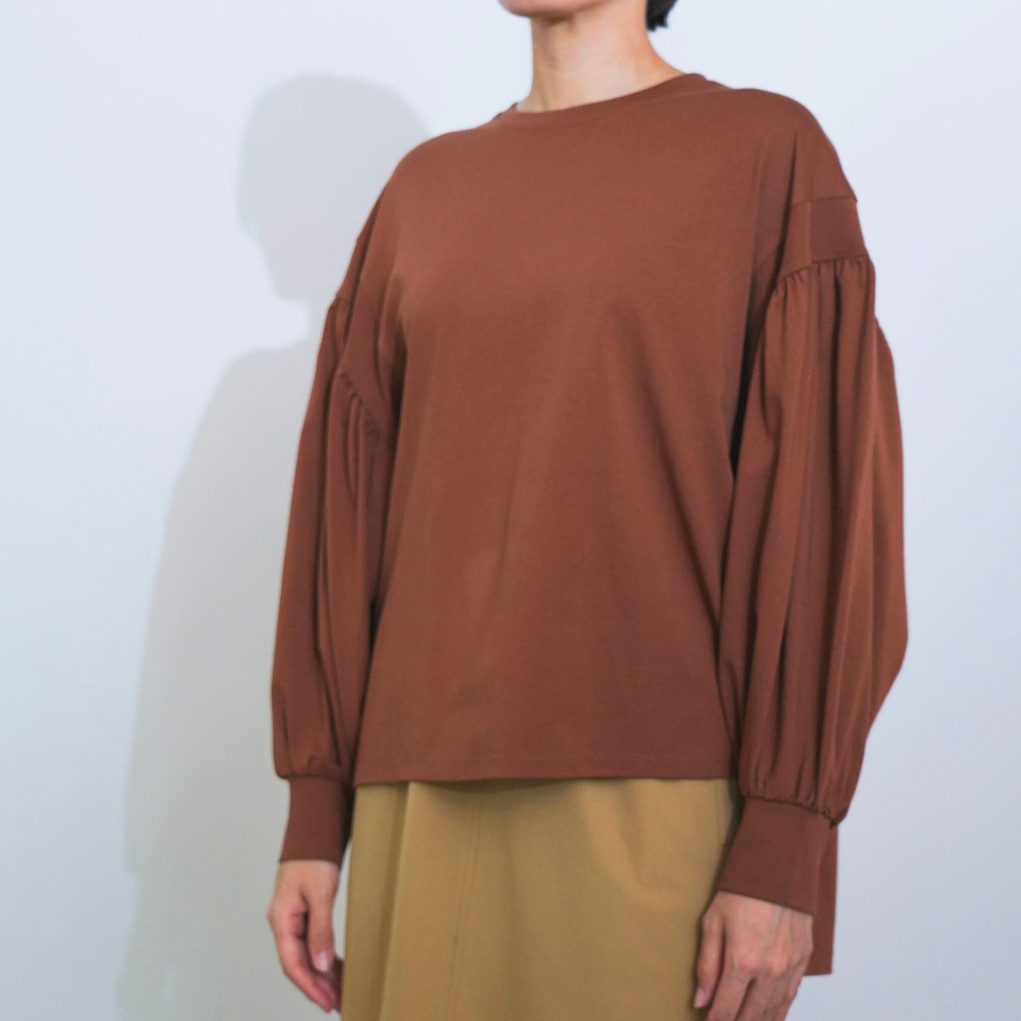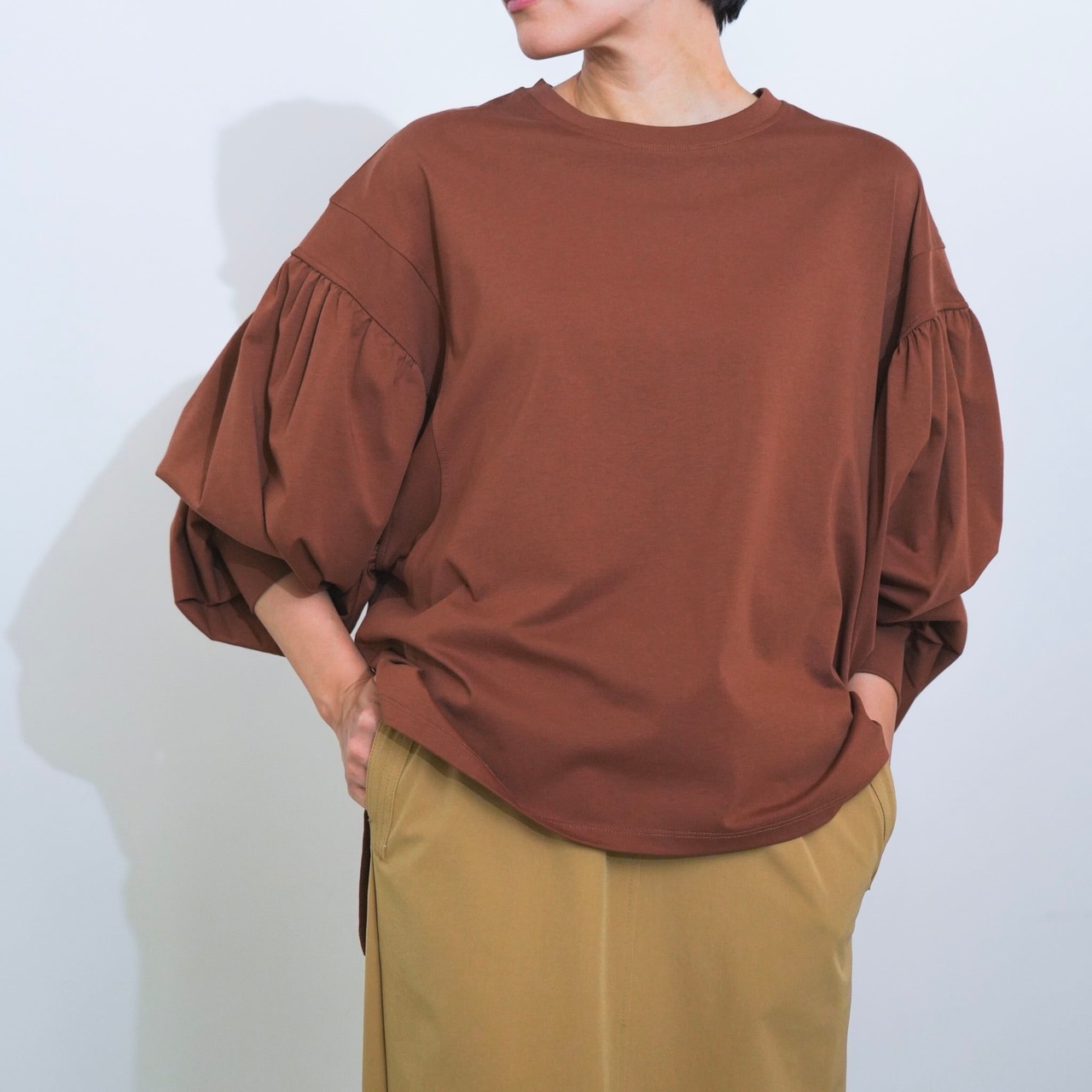 こちらは、ボリュームスリーブが魅力的なデザインのカットソー。