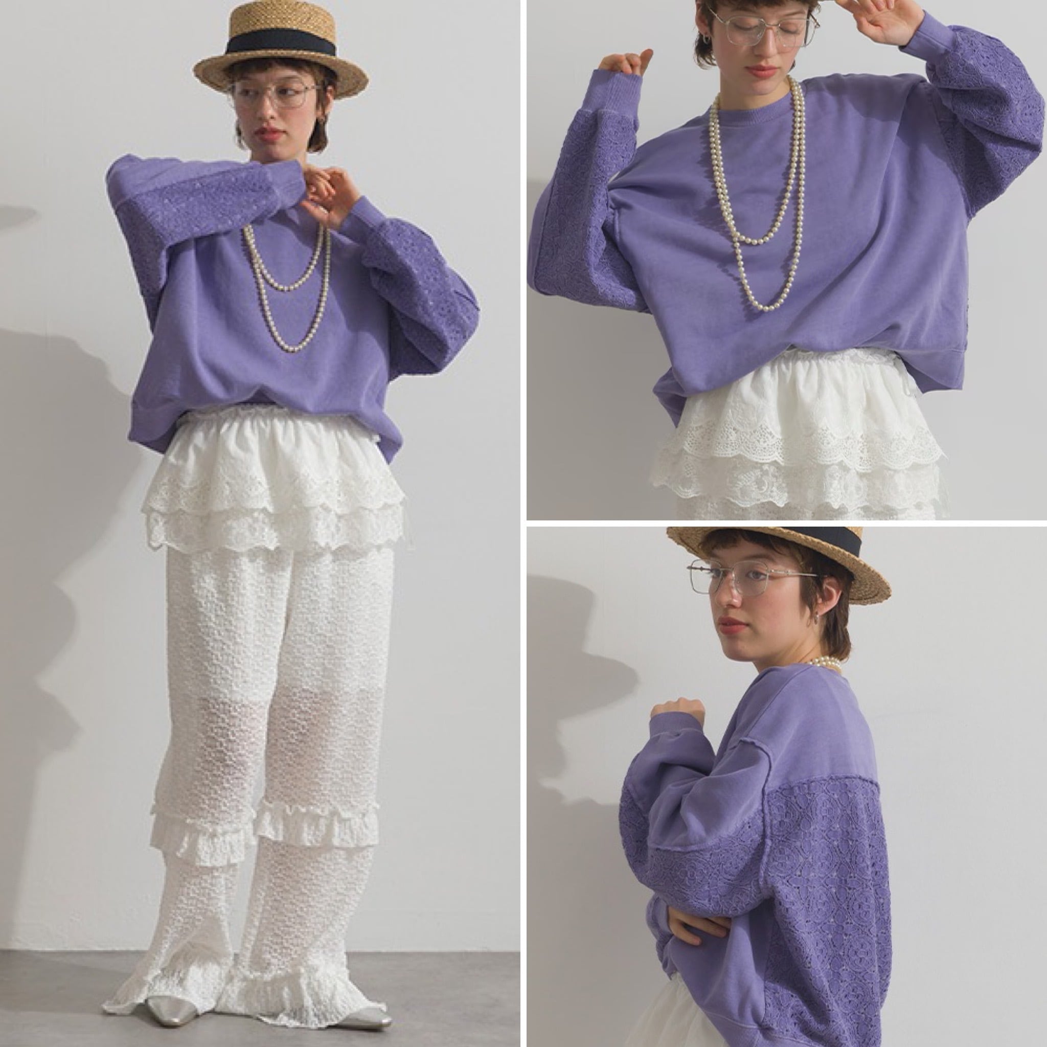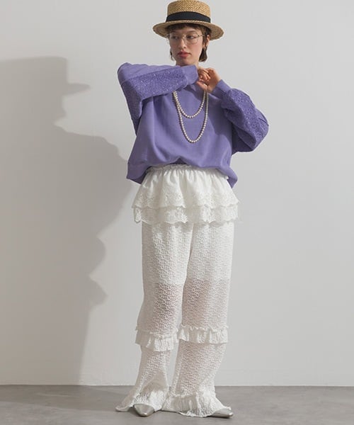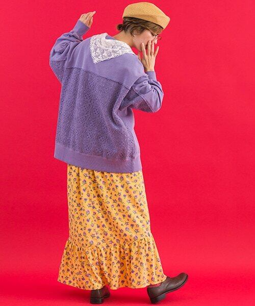 異素材のコントラストで魅せる、ヴィンテージライクな表情のレース切替プルオーバー