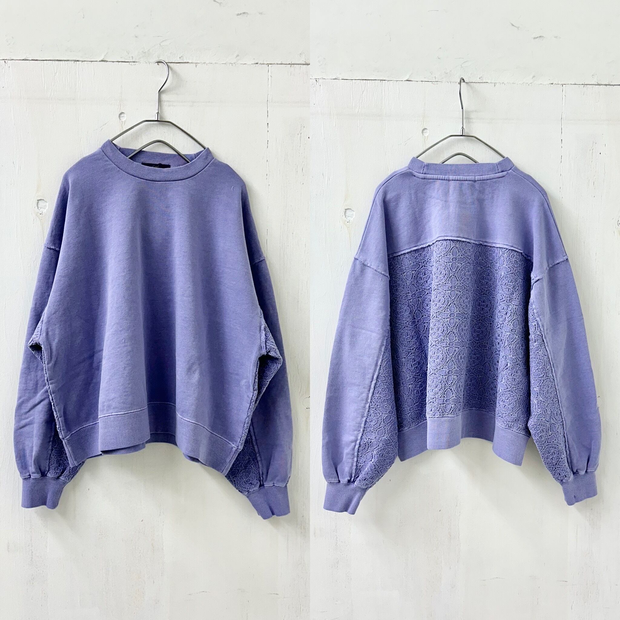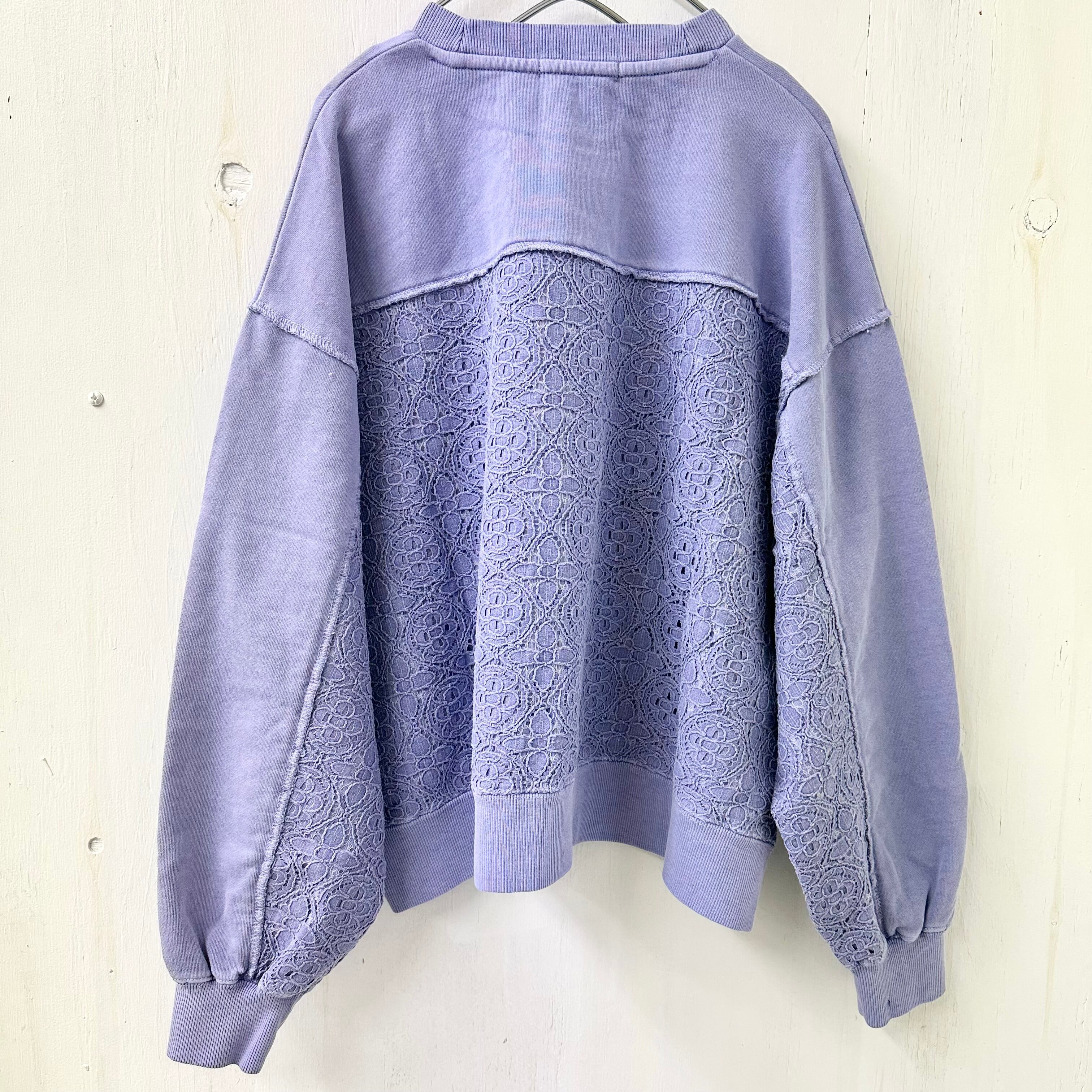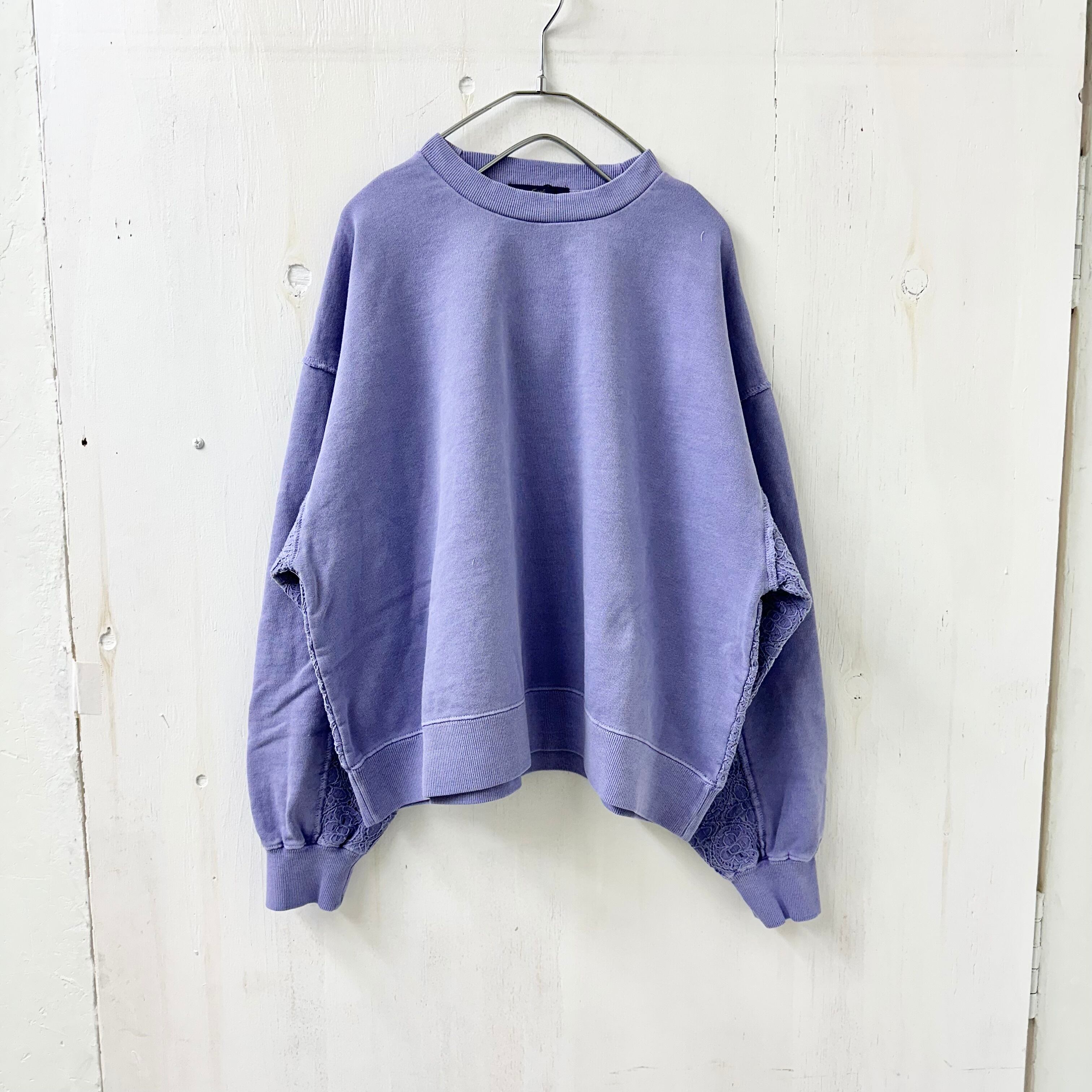 【FIGGLE / フィグル】裏毛 スウェット ユーズド加工 レース切替 プルオーバー