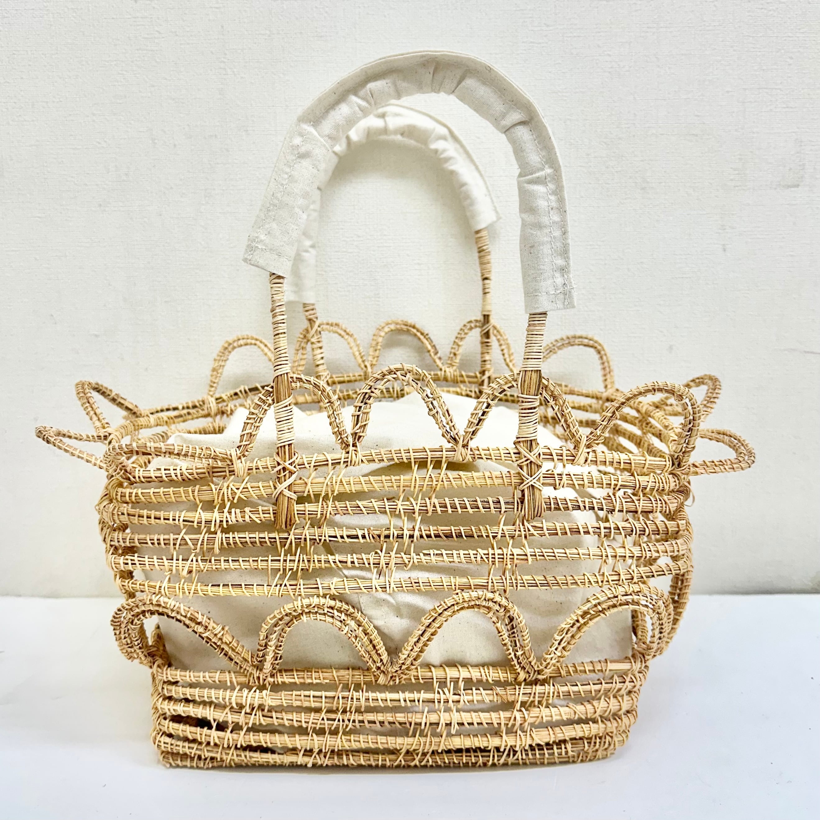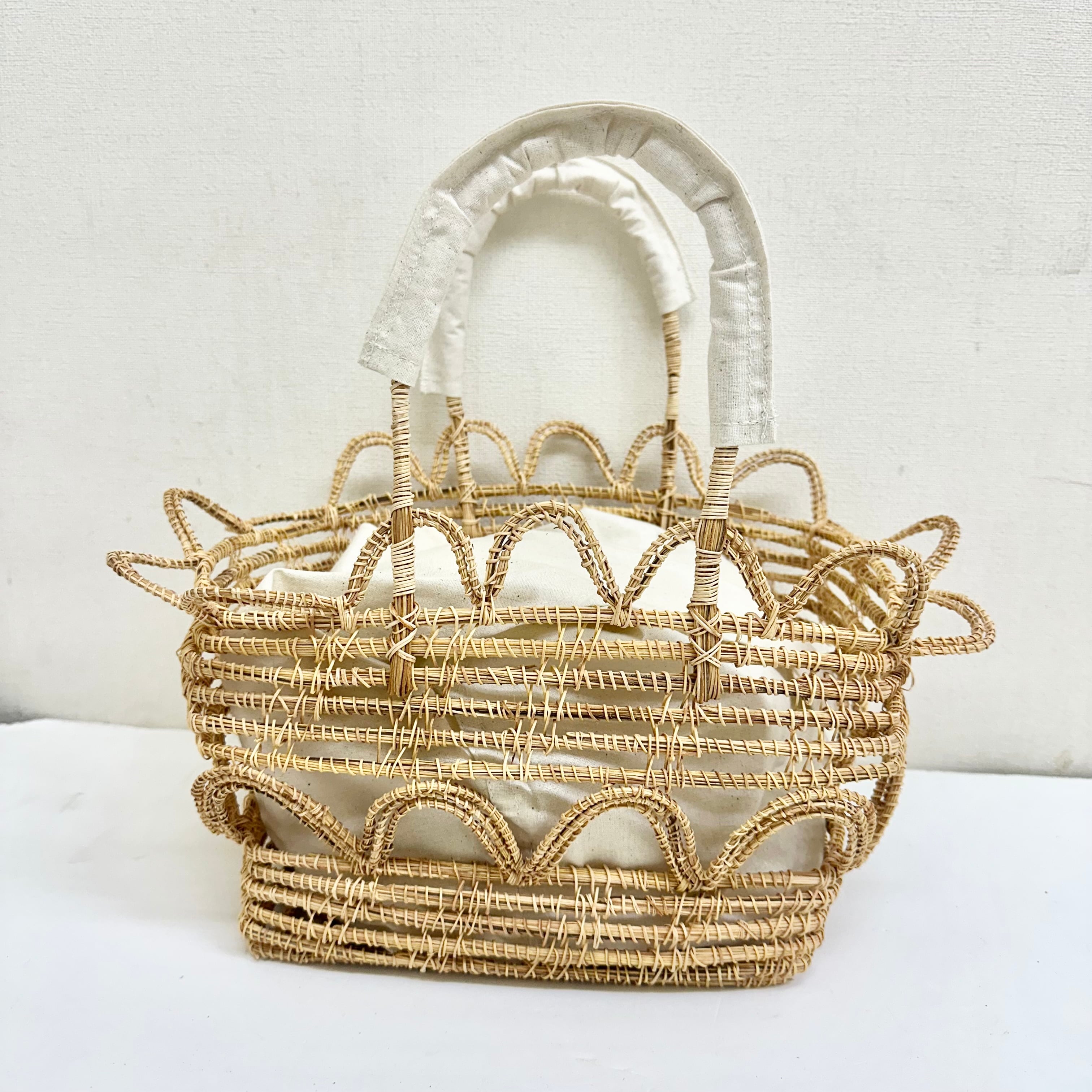 【TARANGO PALM】パームファイバー カゴ BAG ウエーブ 「インナー付き」ホワイト made in BANGLADESH