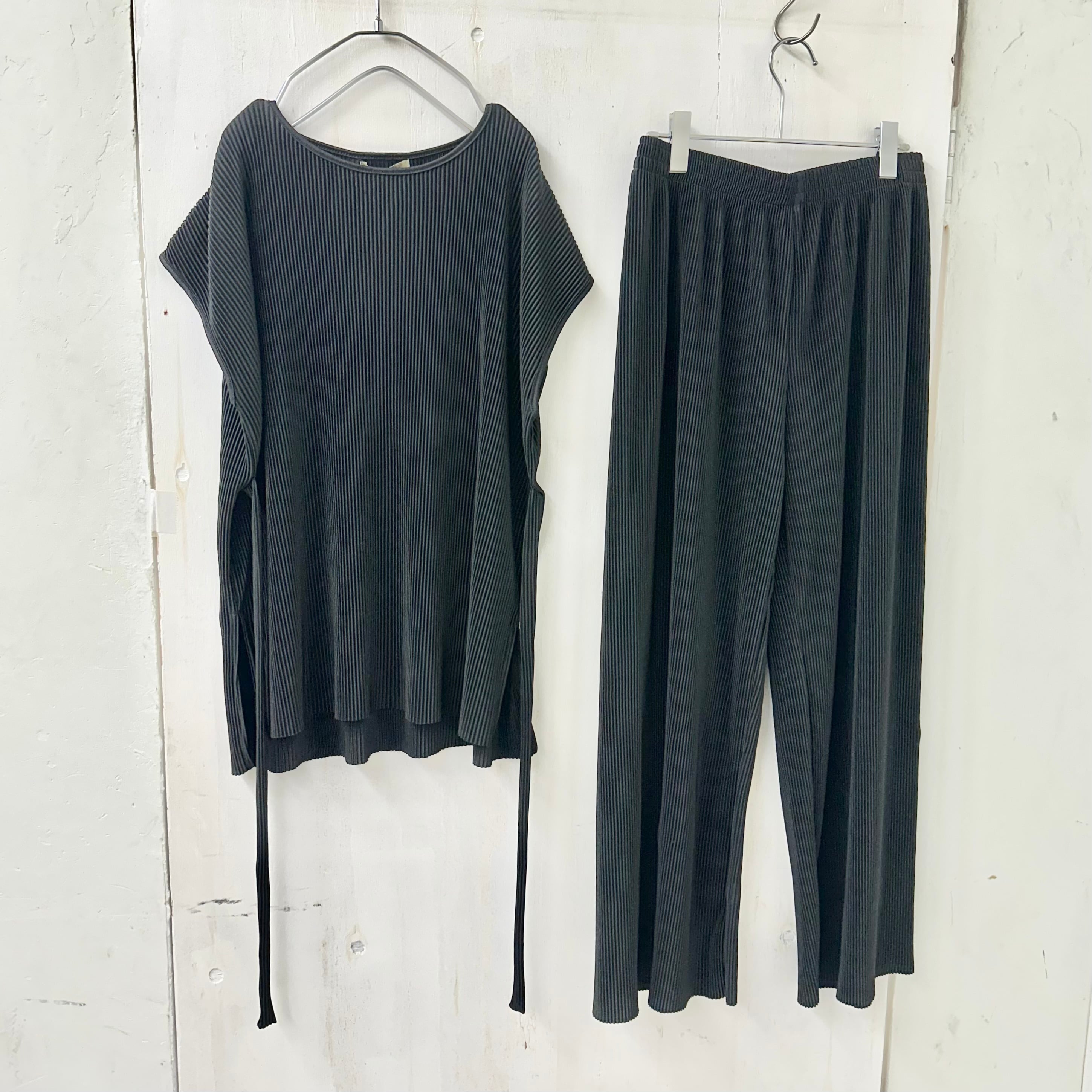 スムース クリスタル プリーツ SET UP パンツ