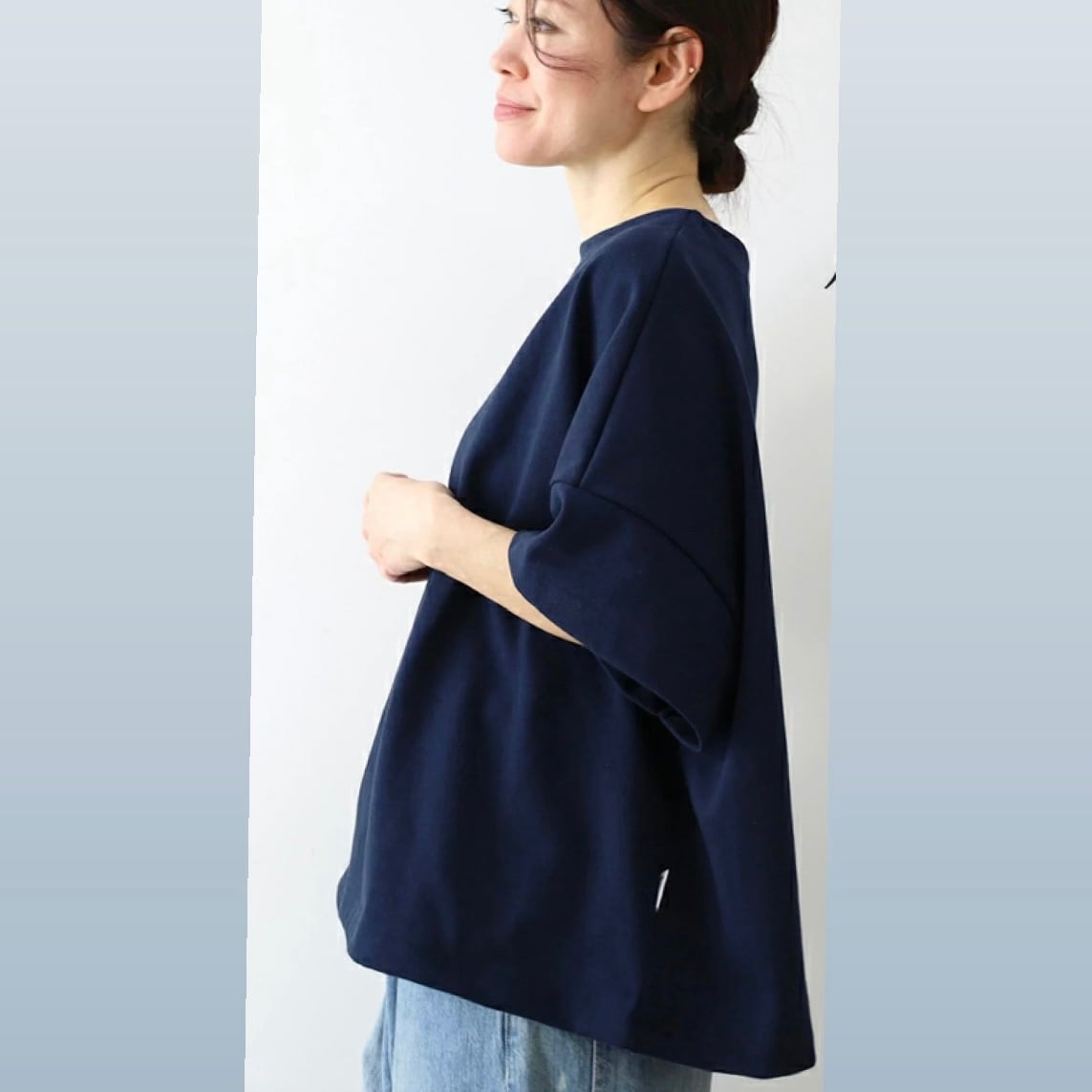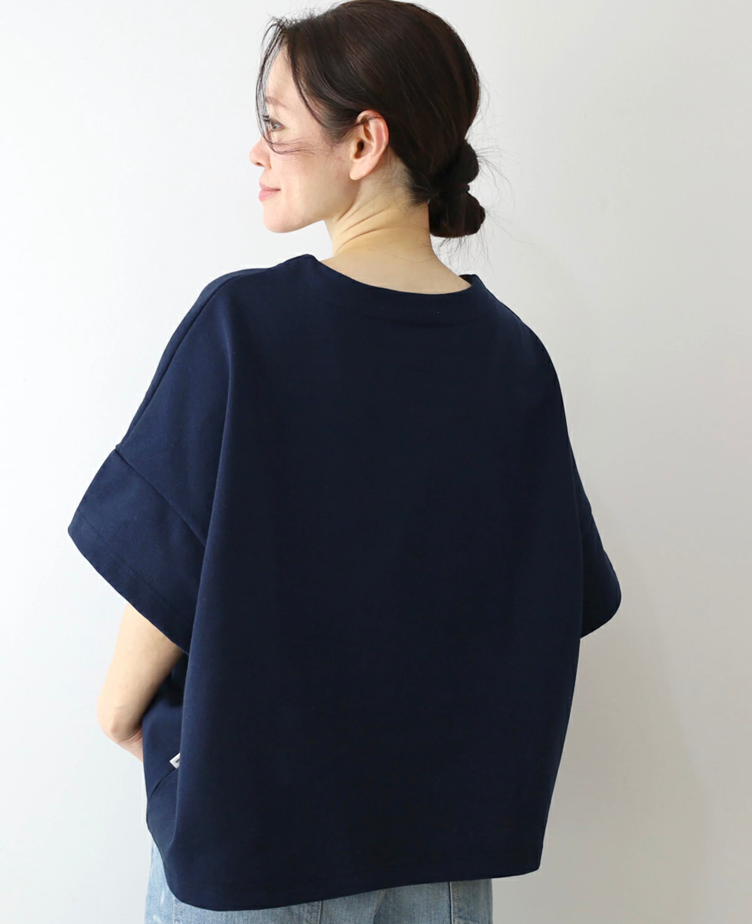 度詰め天竺は、程良い厚みで透け感が少なく、ハリ感があり、シルエットを美しく見せてくれます。洗濯崩れも少ないのもウレシイ。