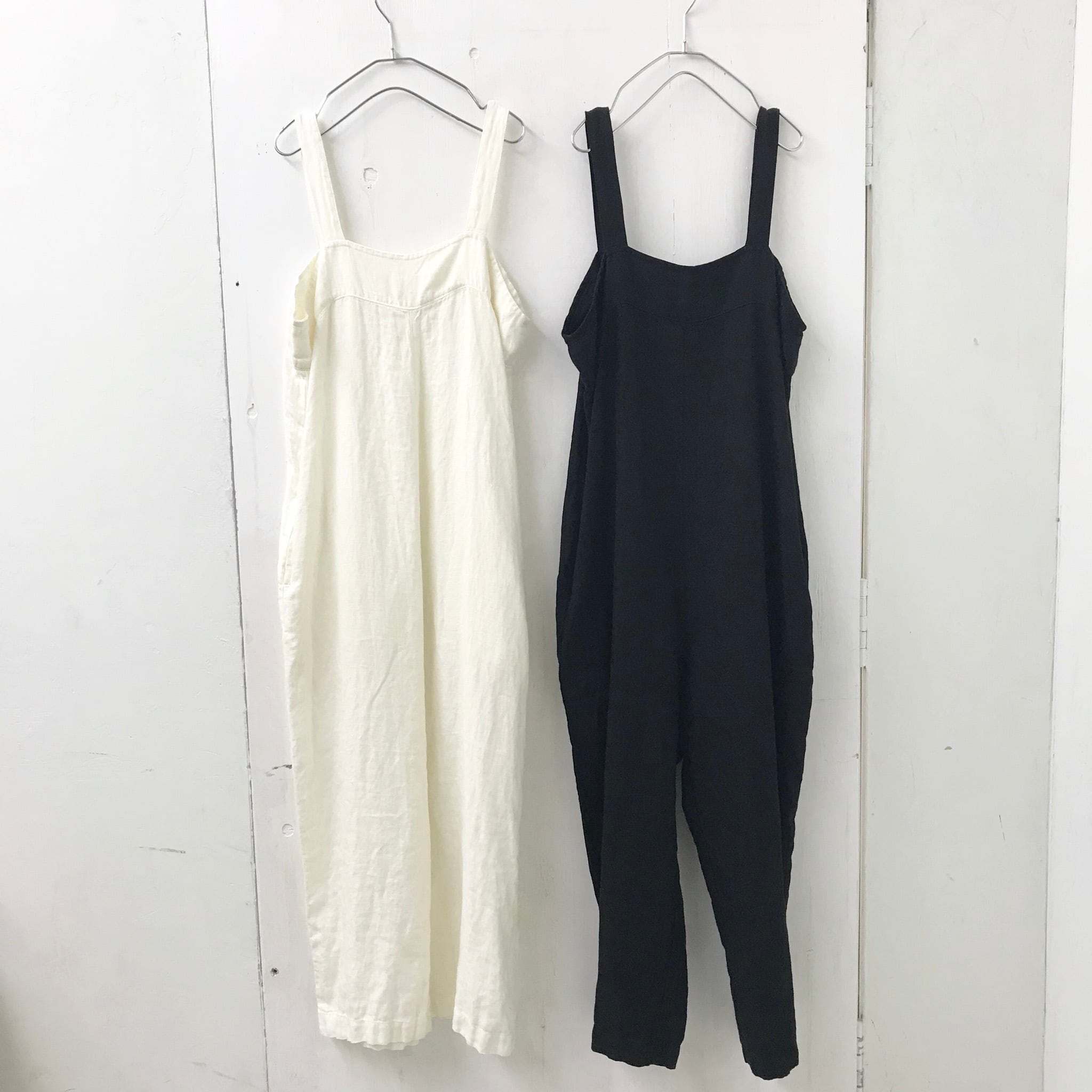 【Vintage Lamp】ツイル リネン パネル切替 ワイド サロペット
