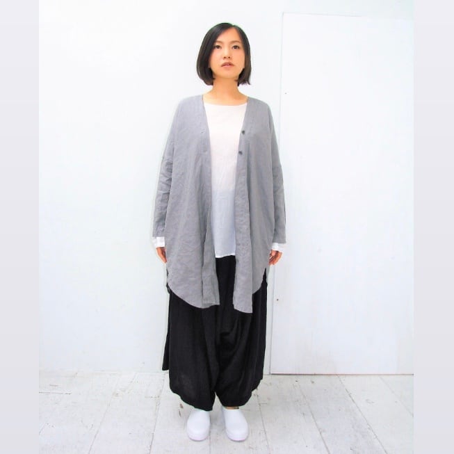 【Vintage Lamp】カラー リネン タンブラー 裾ラウンド ロング カーディガン