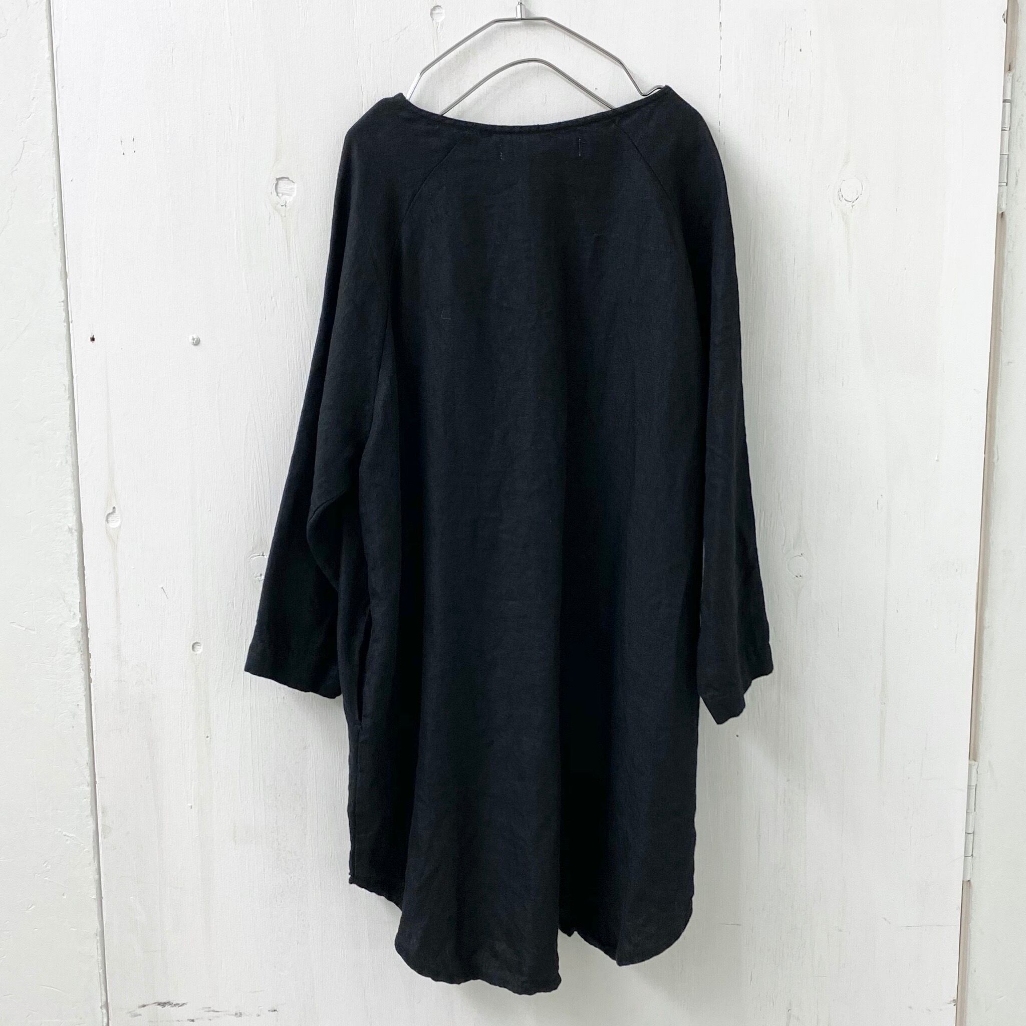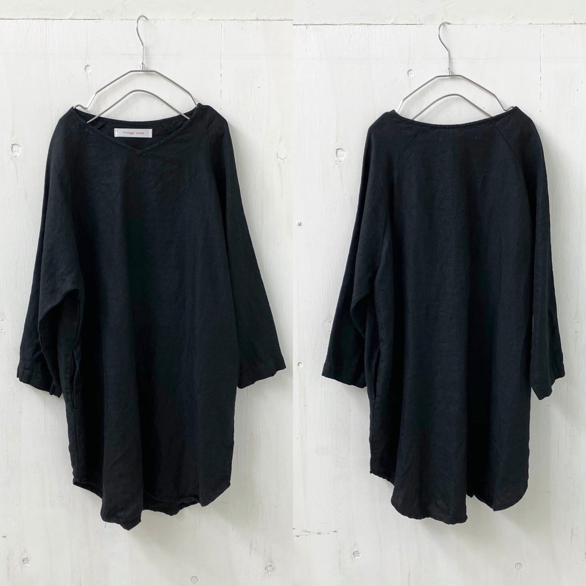【Vintage Lamp】先染め ツイル ワッシャー リネン Vネック ラグラン ロング プルオーバー