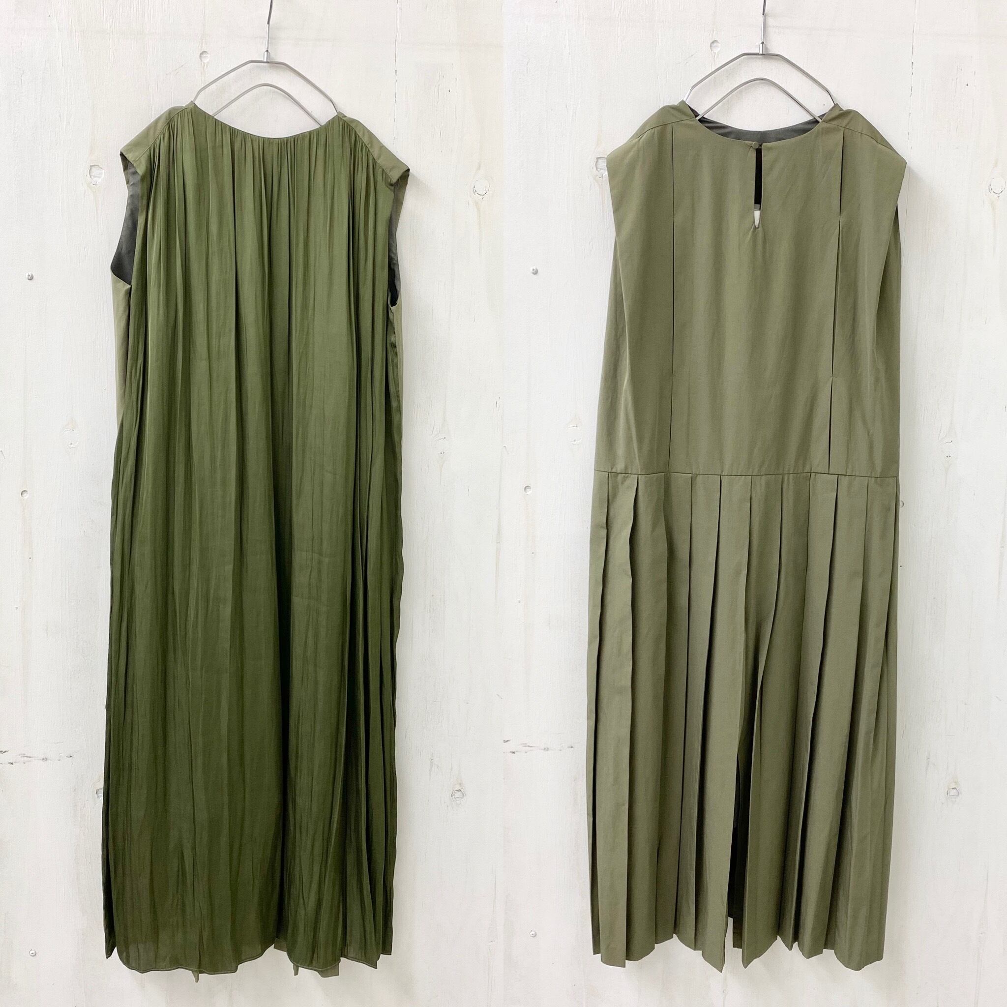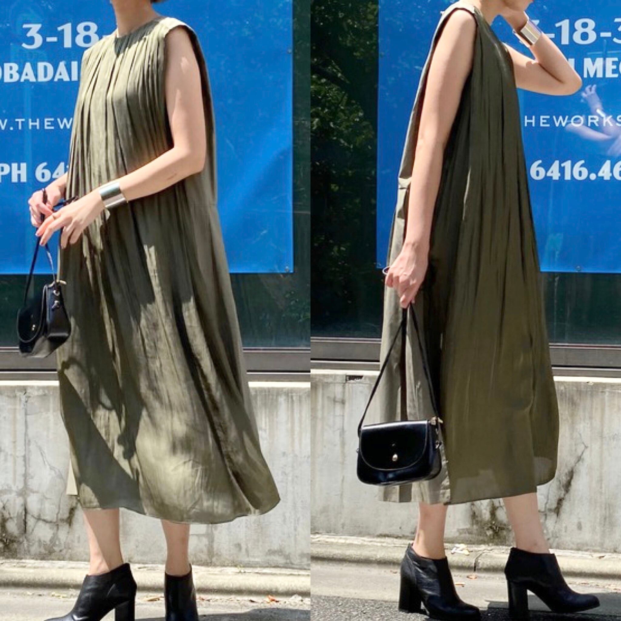 Audrey and John Wad ヴィンテージ サテン ノースリーヴ ギャザー xプリーツ ワンピース